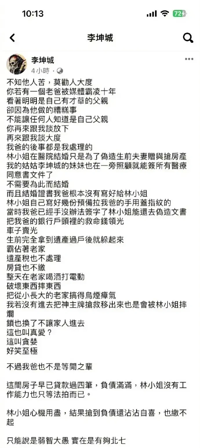 “爷孙恋”女主林靖恩的最新动态曝光,自从大自己40岁的丈夫李坤城病逝后,林靖恩的精力状态就变得很不正常。近日林靖恩更是被曝流落陌头,因偷吃外卖被抓,此事一出全网唏嘘。 早先曝光者发了好几段视频来提示四周住民鉴戒外卖被偷,似乎并没有看透她的身份,效果被批评区眼尖的网友指出偷外卖的就是林靖恩。 林靖恩拿到外卖后就自顾自地吃了起来,听到报警后照旧不为所动。后来警方加入后,林靖恩只是淡淡地表现,“其时自己肚子饿了,以是就打开吃掉了”。 不外林靖恩当场表现会支付这些餐点的费用而且加入交付了237元给对方,对方也表现不会再追究。警方在完成笔录之后,就关照了她的父亲,林靖恩父亲也在朝晨到达派出所将她带回去了。 林靖恩1996年出生,17岁时与父亲的朋侪李坤城相知相恋,两人年龄相差40岁。父亲听到女儿和林坤城爱情的消息后非常气愤,立即就和李坤城绝交了,还把女儿关在房间里。 但被爱情冲昏头脑的林靖恩根本无法领会父亲的良苦专心,她为了爱情辍学私奔,还和李坤城到场了很多综艺活动,“爷孙恋”也随着成为了很多网友茶余饭后的谈资。 李坤城病逝后就把自己的遗产都留给了林靖恩,但是她的继子李卓轩却在父亲交际平台上疯狂控告林靖恩完婚只为夺房产,不理后事也没有出席海葬,别的还爆料林靖恩长期抽烟、酗酒、打电动,而且10年来不光没有工作,还住在高级旅店贪图享乐。 面临爱人的离世,继子的恶语相向,林靖恩在短暂的消沉过后又选择继续向前。就在前不久,林靖恩还在交际平台发文:我好多了!还把头像换成了自己的大头照,精力状态看上去好了很多,也预示着她走出了舆论的影响。 林靖恩才28岁,她本应该有更加辉煌光耀优美的生活却一次又一次地被生活重击,盼望她早点走出阴霾,重新过上正常的生活吧! |