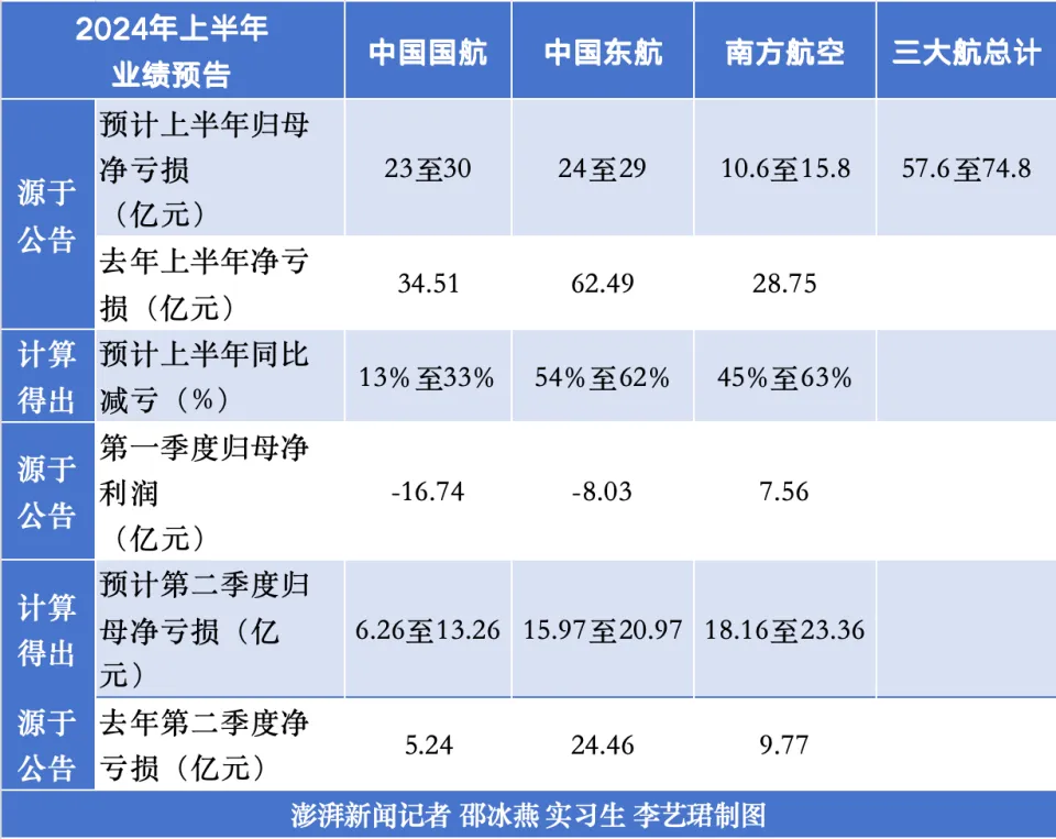 三大航空央企上半年继续大幅减亏。 7月11日晚间,中国国航(601111.SH)、中国东航(600115.SH)以及南方航空(600029.SH)三家航空央企一连发布了2024年半年度业绩预亏公告。本年上半年,国航、东航、南航三大航预计仍未实现扭亏为盈,净亏损总额预计在57.6亿至74.8亿元。但相比客岁同期,三大航均实现大幅减亏,此中,南航预计亏损最少,国航减亏幅度最少。 第二季度“旺季不旺”:国航南航亏损同比扩大,南航环比转亏 具体来看,中国国航2024年半年度预计归母净亏损约为23亿元到30亿元,中国东航预计净亏损为24亿元至29亿元,南方航空预计净亏损为10.6亿元至15.8亿元。“国东南”预计分别减亏13%至33%、54%至62%以及45%至63%。 本年一季度,国航、东航、南航三大航净利润分别为-16.74亿元、-8.03亿元以及7.56亿元,国航东航亏损分别同比收窄超四成、近八成,南航实现扭亏为盈但红利程度还未规复至2019年程度。基于此盘算,国航、东航、南航本年第二季度预计亏损分别为6.26亿元至13.26亿元、15.97亿元至20.97亿元、18.16亿元至23.36亿元。 盘算得出,此中二季度国航预计亏损最少,南航第二季度预计环比转亏且亏损最高。值得留意的是,除了东航二季度预计同比减亏外,国航和南航二季度亏损预计均同比扩大。 客岁三大航年度业绩也团体未实现扭亏,但整体经业务绩上有明显改善,营收均实现倍增规复。此中,国航、东航、南航客岁净亏损分别为10.46亿元、81.68亿元和42.09亿元,分别减亏近1倍、近八成和近九成。 谈及上半年预亏的缘故原由,三大航司均提及本年上半年随着经济一连回升,航空市场需求整体向好,三大航一连减亏。但受国际市场规复面临挑战、国内市场竞争加剧、油价汇率等要素带来的代价颠簸影响,三大航司上半年仍处于谋划亏损状态。 此中,国航表现,2024年,中国经济一连回升带动航空市场需求整体向好,公司抓住市场机会,全力推进提质增效。对峙边际贡献最大化构造生产,聚焦“保价争量”稳固收益,贯彻“过紧日子”头脑降本增效,深化协同促进发展,上半年谋划效益稳步改善,同比实现大幅减亏。但受国际航线整体规复进程低于预期、国内市场竞争加剧、油价汇率等要素代价颠簸的影响,公司上半年仍处于谋划亏损状态。 东航表现,上半年,环球经济迟钝复苏,国内经济回升向好,航空出行需求不停提升。公司把握市场规复机会,积极打造“航空运输超等承运人”,一连优化完满航网布局,加大国内重点市场的运力投入,加快主要国际市场的运力规复节奏,围绕游客便捷中转、退改签服务、聪明出行等方面,创新服务模式、升级服务产品,提升游客出行体验,同时严格成本管控,推进精致管理,多措并举提质增效。上半年,公司运输总周转量和游客运输量同比分别增长54.31%、30.41%,客座率同比进步9.44个百分点,生产谋划回升向好,经业务绩同比大幅减亏。 东航还表现,然而,由于部分航线受到当地航权时候限制、机场保障资源不敷等因素影响,公司在北美、日本等部分国际市场的运力尚未完全规复;同时受到国内客运市场竞争加剧以及航油代价保持高位运行等因素影响,预计公司2024年上半年经业务绩大幅改善但仍出现亏损。 南航表现,2024年上半年,国内经济一连复苏,民航市场渐渐回暖。公司抢抓市场复苏时机,全力提质增效、增强精益成本管控,谋划效益同比大幅减亏。但当前民航发展的外部环境复杂多变,国内市场供过于求,国际市场规复面临挑战,非常天气多发频发,叠加油价保持高位颠簸,公司谋划压力依然巨大,2024年上半年净利润出现亏损。 值得留意的是,春秋航空(601021.SH)与吉祥航空(603885.SH)日前也发布了2024年半年度业绩预增公告。基于民营航司特有的“船小好调头”的优势,春秋、吉祥本年二季度业绩表现亮眼。此中,春秋航空预计2024年半年度归母净利润为12.9亿元到13.4亿元,同比增长54%到60%;吉祥航空预计为4.5亿到5.5亿元,预计同比增长620.99%到781.21%。 暑运机票“量升价跌”,三大航业绩何时能翻盘? 通常,春运、暑运、黄金周和小长假旺季可以为航空公司带来可靠的业绩贡献。本年的春节、明朗、五一、端午等节假日热度不减,需求表现繁茂,此中多个节点的国内游客运输量创历年同期新高。 不过,本年航空客运市场并未一连出现一连的“量价齐升”,以致五一节前出现代价跳水。节前部分航线同航班机票出现大贬价,大概由于假期前“提价过猛”,如果市场的热度不及此前航空公司的预期,在邻近出行时,航班上尚有部分的空座,以是贬价出售。 对于航司而言,每年端午节后的暑运是整年出境游最旺季,也是提升航司业绩的关键节点。只管本年暑运热度不减,但或由于运力同比不停提升,本年暑运国内国际票价仍旧出现同比降落趋势。 据“在线旅游平台”去哪儿大数据研究院分析,暑期出境游出现量“涨”价“跌”趋势,停止6月尾,去哪儿平台上暑期国际机票出票量同比增长1.5倍,暑期出境游需求非常繁茂,有望根本规复至2019年程度。据民航出行服务平台“航旅纵横”方面获悉,7月11日到8月31日,国内航线机票匀称代价(不含税)约1012元,同比降落约8%;出入境航线机票匀称代价同比降落约6%。 而三大航方面,均宣布在暑运加大国际航线的运力投入,尤其是宣布新增欧洲航线或是扩大欧线运力。具体来看,国航暑运期间将新开13条国际航线航班,届时国航执飞的国际和地