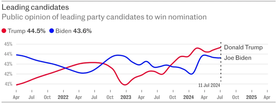 财联社7月15日讯(编辑 刘蕊)在美东时间周六,美国发生震惊全球的特朗普枪击案后,特朗普不但大难不死,而且还因祸得福:枪击案发生后,特朗普赢得大选的胜率反而大增,以致可以说已经很大程度上锁定胜局。 但凯投宏观告诫称,假如特朗普真的赢得2024年大选,那么近两年来因AI高潮而强劲上涨的美股大概会瓦解,美股的泡沫大概会提早破裂。 特朗普总统之位稳了? 据博彩平台Polymarket的赔率表现,特朗普在此次大选中的胜算从枪击案发生前的60%提升至70%,而他的最紧张竞争对手——拜登的胜率则只有18%。 毕竟上,在枪击案发生前,特朗普的民调支持率本就已经领先于拜登,而枪击案后,多数分析师都预计,特朗普的领先上风将进一步扩大。 特朗普民调支持率本就领先(停止至7月11日)数据来源: FIVETHIRTYEIGHT假如回顾汗青,可以发现,在1981年美国共和党总统罗纳德·里根遇刺后的几个月里,他的民调支持率上升了8个百分点。 特朗普胜选将打击美股 但凯投宏观首席市场经济学家约翰·希金斯(John Higgins)在陈诉中写到,特朗普赢得推选对于美国股市来说并不是个好消息,由于他提出的关税和移民政策将给美国经济带来劫难。 他指出,特朗普胜选后,美国当局大概会“广泛征收关税和淘汰移民……而这一趋势将导致美国经济增长放缓,通货膨胀率上升。” 这将令美联储骑虎难下:一方面,特朗普的商业和移民政策将导致美国经济放缓,导致美联储面临更大的降息压力;但另一方面,通胀升温又会压缩美联储降息的潜伏空间。 更紧张的是,假如特朗普赢得第二个总统任期,随着共和党控制国会,美国当局的财政付出很有大概会激增,这也会限定美联储的降息本领。 “美国公共财政状态比2016年更加危险…大规模的财政扩张也会让美联储有更多的来由重新评估货币政策的得当立场,由于这大概对价格稳固构成威胁。” 在这一配景下,美国股市也会受到打击。由于在美联储预期利率无法降落、以致大概上升的配景下,美债收益率也会随之上升。 美股泡沫大概提前破裂 凯投宏观原来预测,到2025年底从前,美股将走出一波类似于2000年互联网泡沫的走势:标普500指数大概将创下7000点的汗青新高,然后才泡沫破裂。 但假如特朗普赢得2024年大选,情况大概就会差别了:希金斯认为,特朗普当局有大概提早戳破股市泡沫,导致美股更早出现暴跌。 希金斯还提到,即便是假设特朗普没有赢得2024年大选,美国股市泡沫仍将面临企业红利放缓的潜伏风险。别的,假如美联储过晚放宽货币政策,终极也大概影响经济增长,拖累美股走势。 |