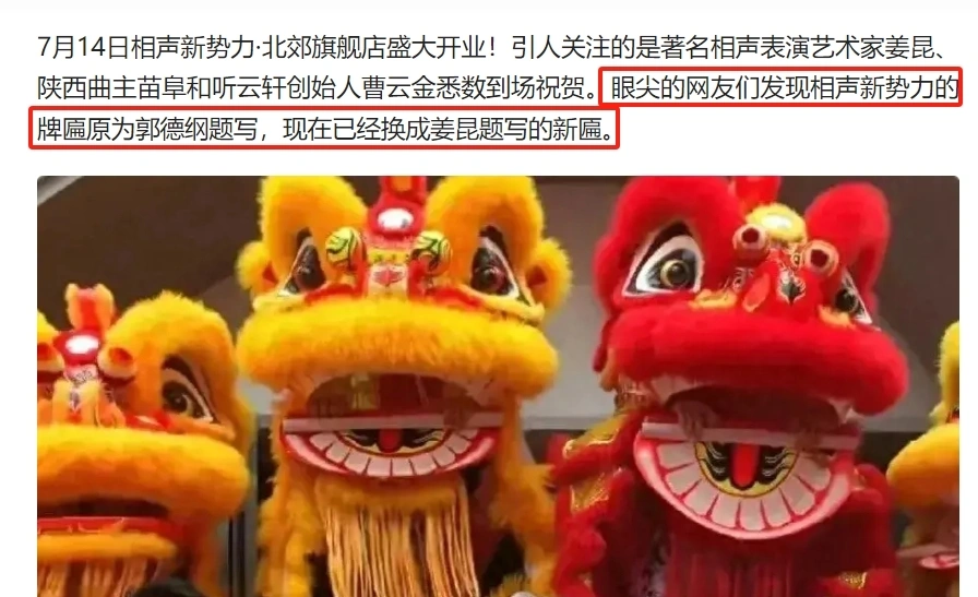2024年7月14日,由相声演员卢鑫和玉浩创办的相声新权势·北郊旗舰店谨慎开业。 现场锣鼓喧天鞭炮齐鸣,红旗招展人山人海,格外热闹。 初次听说相声新权势这个相声团体,照旧在《笑傲江湖》这档笑剧节目中,卢鑫和玉浩是那一届的总冠军。 2018年9月末,相声新权势茶室在西安开业,名字就叫“相声新权势”,与卢鑫和玉浩领导的相声团队同名。 卢鑫和玉浩的相声作品各人都看过,确实很好。 他们俩也是导师郭德纲特殊认可和喜欢的一对相声演员,曾在节目现场力邀两人加入德云社,结果遭到婉拒。 卢鑫和玉浩的志向大概不止云云吧。 在创建相声新权势之前,卢鑫和玉浩曾在苗阜的青曲社效力过,属于“海字科”学员。 卢鑫艺名叫卢海乐,玉浩艺名张海浩。 当初相声新权势开业时,曾邀请郭德纲为茶室牌匾题名,为了相声奇迹的发展,郭德纲欣然应允。 固然,他们之间另有一层关系。玉浩的师父是魏元成,是郭德纲的亲师弟,也就是说郭德纲是玉浩的亲师大爷。 有了郭德纲的认可,加上卢鑫和玉浩的实力,相声新权势发展得很快。 在西安本土已经有粉巷店和朱雀店,在河南郑州也开了一家分店。 此次,北郊旗舰店的谨慎开业,应该算是相声界的一大盛事。 当天的高朋阵容也可谓非常豪华,闻名表演艺术家姜昆,陕西青曲社的班主苗阜,另有听云轩的首创人曹云金都悉数加入。 从高朋范例上来看,这些高朋都有一个共同点,就是和郭德纲都或多或少有些不对付。 有细心的网友发现,由郭德纲题写的“相声新权势”牌匾已经被撤下,换成了姜昆题写的新匾。 从某种程度上来说,相声新权势在初创和发展阶段都得到了郭德纲和德云社的提携与资助。 因此,相声新权势此次“改弦易辙”在网络上引发了肯定的争议,究竟是不知恩义照旧不得已环境下的委曲责备,我们不得而知。 别的,青曲社苗阜加入相声新权势的开业庆典同样令人无法明确。 近几年,陕派相声在苗阜、卢鑫等人的领导下取得了长足的发展,但演员之间的关系不绝很玄妙,乃至不吝大打脱手。 卢鑫的师父是已故相声老艺人郑文喜的儿子郑雄伟。 几年前,郑雄伟在微博发文控诉,称遭到了苗阜的搭档王声的殴打,对方还扬言要见一次打一次。 郑雄伟感情冲动谈及此事,称要替父亲将王声逐出师门。 也就是说,卢鑫的师父郑雄伟被苗阜的搭档王声给揍了,在如许的环境下两人还能笑脸相迎,这可不是一样寻常的度量。 不光云云,苗阜和卢鑫的搭档玉浩也有恩怨。 大概在四年前的一天,苗阜忽然更新了一条动态,控诉遭到玉浩的殴打,还晒出脸上被指挠过后留下的印记。 郑雄伟是卢鑫的师父,也是玉浩的义父,王声则是苗阜的搭档,可能之前就存在肯定的恩怨。 前面有提到过,卢鑫和玉浩也曾在青曲社说过相声。 青曲社和德云社也一样,演员们都有艺名,德云社收徒是按照“云鹤九霄,龙腾四海”八科,而青曲社则是“海纳百川,万象归春”。 卢鑫和玉浩都属于“海字科”。 不外,对于苗阜的到来,相声新权势的另一位首创人玉浩就选择了“避嫌”,没有出如今与众人的合照中。 不管怎样,相声能有本日的繁荣实属不易,天下说相声的是一家,还盼望演员们能爱惜如今的局面,不要为了利益而争斗,省得自毁前程。 末了,祝愿相声新权势旗舰店开业大吉,曲艺界的来日诰日越来越好。 |