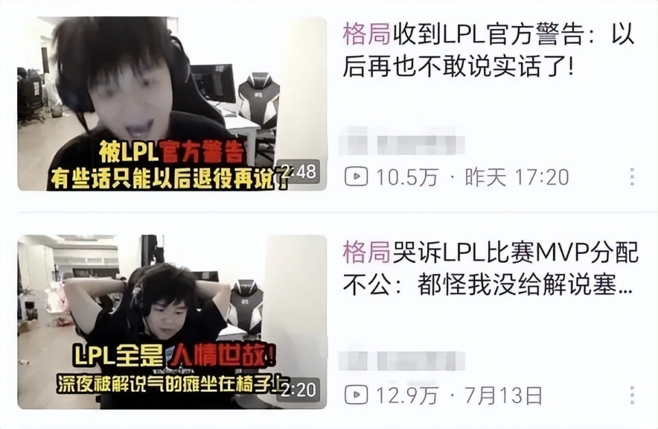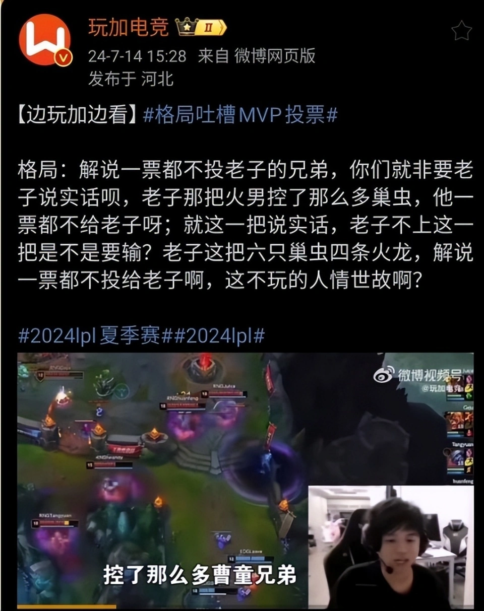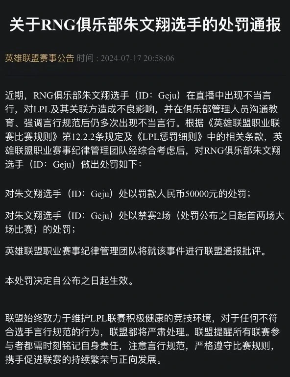 LPL夏日赛的比赛正在举行中,RNG这边在组内赛开始之后,惨遭3连败,至今难求一胜。在组内赛环节中,RNG也再次举行了职员的调解,首发上单酿成juice,首发打野酿成格局,首发辅助酿成iwandy,但是仍然颓势尽显。而就在RNG成绩下滑的时间,还传来了更糟糕的时间,新加入的打野格局被禁赛了,RNG不得不再次更换打野。 LPL官方发布的处罚公告如下,表现格局在直播中出现了不妥言行,对LPL造成了不良影响,而且在俱乐部管理职员沟通教育过之后,仍然出现不妥言行,因此对格局罚款5万,禁赛2场。 官方通告中的不妥言行应该是前几天的变乱,在组内赛的时间,RNG唯一拿下的一个小场胜利就是在面临EDG的时间,而在那场比赛结束后,格局回到基地开启直播,疯狂吐槽LPL的MVP投票,他用了许多脏字来怒斥LPL的讲授,由于讲授没有把MVP的票投给本身,格局以为RNG赢的那一小局,都是本身打得好才赢的。 反面格局还嘲讽由于本身没给讲授塞钱,以是讲授没投本身MVP。第二天又直播表现本身由于吐槽讲授MVP投票,被LPL官方警告了,以后不敢说实话了。 LPL毕竟是职业联赛,格局这种刚从主播转过来的,照旧主播那一套娱乐的头脑。张口就是官方MVP要塞钱才气拿,这种影响确实太恶劣了,说白了比赛中大部门MVP的投票照旧能明白的,偶尔有几个有争议的,讲授也会说出本身的明白。大概有的讲授会有本身的方向性,但是说塞钱才气拿MVP,就真的太过了,这种造谣很离谱。 关键是格局加入RNG后,比起追求大场的胜利,好像更在乎MVP。RNG如今一个大场都没赢,就赢了一个小局,赢了就以为MVP应该是本身的,队友打得不可,端赖本身carry才赢,队内有这种选手在,想赢难如登天。瞧不起队友,瞧不起讲授,以为本身最锋利,然后在直播间上蹿下跳各种带节奏,主播就好好要饭别出来丢人现眼,这句话真的很恰当格局。固然RNG管理层也没有教育管理好选手,肯定也要负担责任,如今RNG成绩没有,场外七零八落的变乱倒是一堆,豪门战队沦落至此,也是让人唏嘘。 那么,对于这件变乱,你们有什么想说的吗?欢迎在评论区留言探究。 |