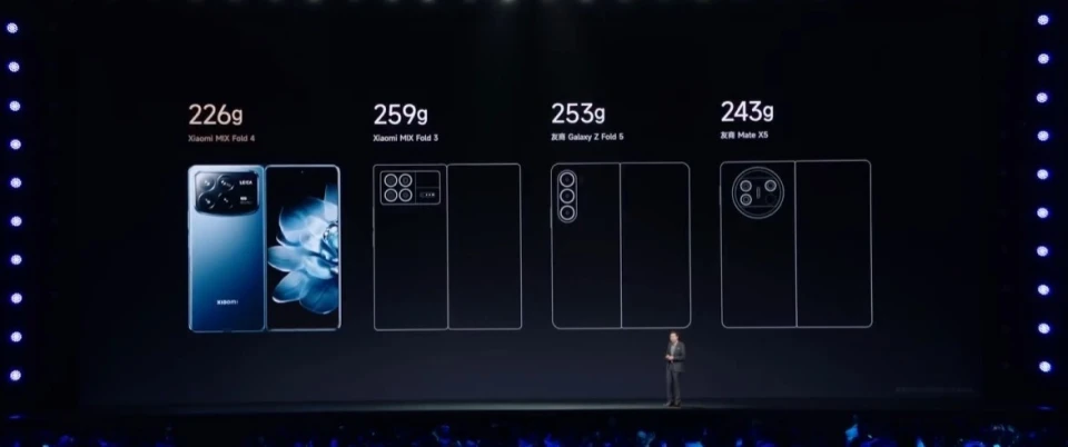 在正在举行小米旗舰新品发布会上,小米公司创始人 雷军带来了全新的小米MIX Fold4,小米MIX Fold4寻求更轻、更薄,裸机重量仅为226克,睁开后机身最薄处为4.59mm,仅仅比sim卡槽厚一点,折叠态厚度为9.47mm。 为了寻求更好的手感,除了浮滑计划外,小米MIX Fold4接纳了四曲面机身,弧形中框和屏幕,使得整机手感更加顺滑温润。 其他计划方面,该机还带来了全新配色「龙胆蓝」,内部架构全面升级,转轴浮板、屏幕衬板、中框电池仓衬板接纳100%碳纤维材质,强度高达T800H,抗打击强度提升300%,保持浮滑的同时,显着提升了机身强度。 (8853553) |