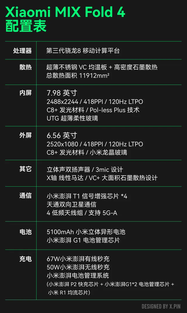 昨晚雷总长达三个小时的演讲,不知道各人看了没有。 反正托尼是看着小黑胖和差评君在国外团建洒脱,本身在办公室和脖子哥被一起硬控了六个小时。 那今晚咱们也话不多说,一起来聊聊军儿这次给各人带来的两款折叠屏手机: 早在本年三月份的时候,就陆一连续传出,小米也要做小折叠屏了。 说句真话,刚看到这个消息的时候,我并不看好——发得这么晚。阿米,小折你把握不住! 直到我真正拿到这台小米 MIX Flip ,才发现我马虎了。没想到小米发的晚反而故不测惊喜——作为小米的第一款小折, MIX Flip 完成度可以说非常高。 别的先不说,就这块铺满整个背板的四微曲外屏,又悦目,触感又舒服,让人拿在手上就非常乐意去用。 固然光悦目是远远不够的,一款小折叠能不能摆脱 “ 漂亮小废物 ” 的运气,关键就在于怎么去适配这块外屏。这一点,小米真的有着非常清醒的认知—— MIX Flip 的这块外屏除了能用来自拍之外,还做了一层软件限定,让 App 们都能以 16:9 的竖屏比例正常表现。 用外屏往返个消息、刷个抖音都没有标题。 左上角下滑是关照栏、右上角下滑是控制台,这个逻辑也被做到了外屏上。如许平常逛街大概坐地铁上的时候,直接在外屏上就能单手完成很多使用,不用为了一些小事频繁开合。 除此之外,一些细节也处理处罚得很成熟,好比被镜头切割出来的不规则地区, MIX Flip 也用了一种非常聪明的办法办理掉了: 这一小块这个比例和面积,恰恰可以用来放一个音乐播放器大概气候、日历、健康之类的小组件,而且能像手表一样通过上下划动直接切换卡片,很直观。 我感觉这个计划就很像一个简化版本的负一屏——以是应用界面、关照栏和控制台,另有负一屏都有了,合着小米就是冲着把外屏做成一个功能完整的手机屏幕去的 ! 如许的思绪大大地提拔了外屏的可用性,办理外屏定位尴尬的标题,同时也能淘汰翻折的频率,制止过多的翻折让内屏的折痕在买返来之后迅速加深。 难怪雷军之前会在微博发问: “ 漂亮的小废物? ” ,原来 MIX Filp 就是这个标题标答案:小折也可以漂亮但不废物。 不外这次新品里,托尼我更关注的还是大折的程度。在直板旗舰硬件越来越趋同的当下,大折反而是最能看出一个手机厂最检验技术秘闻和创新本领的产物,由于它要浮滑、又要性能强悍,还要做出不输直板手机的体验。 折叠屏的很多办理方案都还是在探索的路上,以是差友们会发现这是 “ 黑科技 ” 最常见的产物。 在拿到小米 MIX Fold 4 的那一刻,我内心咯噔了一下:这手感也太好了吧。 我们拿到的这台是龙鳞纤维版,在有四个摄像头的情况下,整机居然只有 232g !这个重量也就一台 14 Pro Ti 差不多。 折叠状态下,机身厚度仅有 9.47mm ,跟小米 14 Ultra 放在一起,背部也就高出那么一点点,镜头模组的部门乃至要比 14 Ultra 更薄一点。 而展开更浮夸了,镜头组之外的地方,只有 4.6mm 厚。看到这个厚度,我内心立马又咯噔一下,坏了,这么薄是不是要在设置上减配了? 点亮屏幕,它表里均是 418PPI 、 3000nit 、支持 2160Hz PWM+DC 调光、 1-120Hz 革新率的 LTPO 屏,支持杜比视界,外屏另有龙晶玻璃,这些参数在直板旗舰里也算顶级的,在大折里绝对算第一梯队。 现实使用了几天,日常使用,偶尔打游戏,到晚上睡觉都有 30% 以上的电量,别看表里两块屏,还是挺抗用的。 而且,为了增长充电速率,淘汰电耗,它还安排上了四颗汹涌芯片——一颗小米汹涌 P2 快充芯片、两颗小米汹涌 G1 电源管理芯和一颗小米汹涌 R1 双电池均流芯片。 上手的这几天,托尼只要有空就把 MIX Fold 4,拿出来翻折,发现转轴的手感干脆利落。 果然, MIX Fold 4 上的这个龙骨转轴 2.0 固然延续了上一代三级连杆计划,但用上了更多的超强钢。超强钢的占比从上一代的 26.4% 上升到了 82.57% ,可靠了不少。 如许的极致参数下,按理来说根本摆脱不了又厚又重的运气了,然而 MIX Fold 4 却还能只维持这个 232g 的重量,让人就很好奇内里用了啥黑科技。 假如各人看了发布会,就会发现它其着实机身内部的布局和质料上动了不少心思。 MIX Fold 4 的转轴,外貌上还是上一代的三级连杆,但现实上每一个都比上一代要短:一级收缩 8% ,二级收缩 28% ,三级收缩 26% 。 连杆收缩之后,转轴和两块水滴形成的水滴状清闲也能跟着缩小,如许折叠起来之后两块屏幕就能贴的更紧。 同样偷偷改头换面的另有电池。为了能让这块 5100 mAh 的电池不带来额外的体积负担,小米重新计划了电池的布局。 一样寻常来说,折叠屏手机用的电池都是方形的,这限定了手机内部的堆叠的机动性,导致折叠屏内部的空间使用率极低。 而 MIX Fold 4 的这块电池,用上了全新叠片工艺。明白话讲就是把电池也分割成一层一层的叠片,不捐躯电池容量的条件下,空间充裕的地方就叠厚一点,其他位置少叠几层,给别的零部件让出位置。 如许电池就可以实现差别外形,与机身更完善地贴合,大大提拔了机身内部空间的使用率。 更加轻便的转轴计划加上更加机动的电池外形, 9.47mm 折叠厚度就是靠如许的一点点细节抠出来的。 与此同时,为了减轻整机的重量, MIX Fold 在机身段料也履历了 “ 大换血 ” 。 我们前面不是提了,为了增长转轴的可靠性,转轴的质料被大批量换成了超强钢。究竟是钢,重量肯定是轻不了的。那多出来的这些重量要从那里减掉呢。 答案就是电池仓和屏幕衬板,这两都被换
