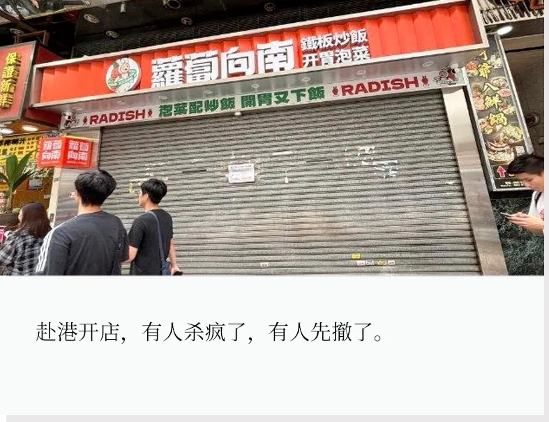 总第3921期 作者 |餐饮老板内参 内参君 仅存活4个月! 热血空想提早收场 赴港开店,有人杀疯了,有人先撤了。 好比,来自广东惠州的柠檬茶品牌柠濛濛手打香水柠檬茶。 柠濛濛初进香港开店时一身光环。它是2023年本地和香港通关后第一批赴港开店的本地餐饮品牌之一。和它前后脚出去闯的第一批成员,要么是“九毛九团体宗子”太二酸菜鱼,要么是当时近千家门店的“咖啡黑马”Manner Coffee,多是餐饮大连锁。三五十家门店的柠濛濛,是第一批赴港开店品牌中的稍显小众另一类玩家——地缘上接近香港、有足够野心胆识、有肯定口碑与影响力、筹划扩张的小连锁,因而备受关注。 当然,受关注也有另一方面原因。柠濛濛初进香港正是夏初,在高物价的香港,谁能拒绝一杯奇怪感满满、又不是很贵的来自本地的柠檬茶。 柠濛濛香港旺角旗舰店开业时间,局面一度火爆,吸引浩繁消费者前往。 而据港媒报道,该店租约原本签署至2025年,但在本年1月前就放出铺位招租信息,终极在6月份正式闭店。柠濛濛香港旺角旗舰店至此画上句号,存活小1年。 紧接着,更多本地餐饮品牌在港门店关闭、提前退租消息传出。 始于1997年的广州老牌小吃咕噜丸子屋,2023年9月入驻香港油麻地,租下港铁站约35平米的门店。本年4月,门店提前关闭,业主重新放租。咕噜丸子屋香港店,存活时间不敷一年。 深圳着名快餐品牌萝卜向南,进驻香港后同样选择旺角开店。萝卜向南选址于闹市登打士街,这家店本年2月份门店才正式开始营业,到六月就退租闭店了。存活时间仅有4个月。 柠濛濛、咕噜丸子屋、萝卜向南,一月内三宗本地餐饮在港提前退租的消息连环爆出,无疑给赴港开店潮泼上一盆冷水。 有人说,这是本地餐饮的不服水土。 彼蚀姘港开店热 现在要凉了? 2023年年初,越来越多的本地品牌如同雨后春笋般在香港遍地着花,沙田更是有“走两步一家本地餐饮店,再走两步还是本地餐饮店......”的神奇情形,以致香港沙田被称为“小深圳”。 综合数据体现,制止本年5月,至少有40家本地餐饮企业去港申请或已完成注册商标,至少10家本地餐饮企业已经正式进军香港,开店数量近20间。 餐饮老板内参不完全统计,至2024年7月,在香港开店及已经立出餐饮围挡的本地餐饮品牌已超过20家,此中既有风雅餐饮,也有小吃快餐。 不但是香港,另一个被视为“餐饮出海前站”的所在澳门,同样也被越来越多本地餐饮品牌“插旗”。这一波餐饮进军港澳、以致出海的扩张征途仍在举行时。 不外,彼时蜂拥而至的本地品牌显然没预推测现在这个局面。 退却背后 综合品牌官方信息及网友、顾客对品牌的评价,可以看到这批提前退租门店所属的餐饮品牌,区别于整个赴港开店潮其他品牌最显着的共性: 1)门店数量相对少,在数十家的区间; 2)品牌力相对较弱,属于省大概更小的地区内的着名品牌。 这两点归到一起,从行业视角来看,就是品牌力和构造能力相对较弱。从消费者视角来看,就是更加细节的题目,好比出餐慢,跟不上“香港速率”,再好比当地化做得不够好,不符合当地消费者口胃。 ◎农耕记在香港门店及招牌 本地餐饮市场卷,但这并不代表在这个环境中生长得还不错的品牌,去香港就能躺平挣钱。 香港餐饮市场,同样有它难做的地方。 香港特殊行政区当局消息公报中,香港当局发言人表示,食肆业务继客岁大幅反弹后,在2024年第一季增幅放缓。香港餐饮品牌收益、门店量等各方面增速放缓,只是大环境下的一个效果,和背后消费者流失、成本压力增大等息息相干。 1、大批量港人北上,深圳开启“抢人”大战 一个名为“真实的香港”的公众号,原是报道一些香港政策消息、热门趣事的账号,从客岁下半年开始陆连续续做了二、三十篇关于“港人北上”“香港‘空城’”等类似的相干话题。诸如《港人北上,零售告急!市民命令留港消费,救救香港!》、《香港复活节假期,百万人去本地!餐饮哀鸿遍野,商场业绩上升!》等等。 |