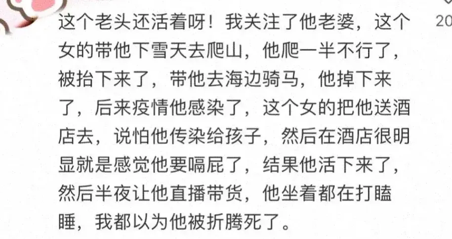 前不久,杜星霖和孩子大玩水上滑梯引发不少网友的热议,最近,张纪中带着她拍摄了一组写真,照片当中的杜星霖大秀孕肚,还狠狠撒了一波狗粮,简直羡煞旁人。 作为一名导演,张纪中给人的印象不停是很严厉的,但是在妻子杜星霖眼前,他生动得像个孩子。 视频中,张纪中将白色的头发梳了起来,显得格外精力,被妻子吐槽“像个教父”。 张纪中完全不生气,而是自我欣赏起来,他心情十分不错,回应:我只是换了一个发型而已。 说完,他还不忘对着镜子欣赏自己,然后哈哈大笑。 杜星霖挺着六个月的大肚子状态非常好,一点都不显粗笨,她皮肤白皙,心情红润,一看就是被爱情滋润的女人。 在拍摄期间,张纪中对妻子不停很知心,他不仅给杜星霖鼓励,还时不时安慰她,做各种搞笑动作逗她开心。 不仅云云,张纪中还带来许多的零食,恐怕杜星霖饿肚子。 可以说,张纪中是一个非常体贴的丈夫。 而后,两人的照片被曝光,虽然形象上并不是很般配,但是从两人的眼神中可以看到星星,张纪中用手轻轻托起妻子的肚子,杜星霖则轻轻抚摸着张纪中的耳朵,这一幕非常温情。 另有一张照片,两人彼此相拥,袒露甜蜜的微笑。网友见状忍不住酸了起来:这爱情,我酸了,你们呢? 另有人品评:爱情来了挡都挡不住,你看他们越活越恩爱,感情跟海似的。不得不说,张纪中真是人生赢家。 不外,也有人对杜星霖的利用产生质疑,从近期的消息来看,她好像“故意”霍霍张纪中,网友笑称张纪中是“消散不了的他”。 为啥这么说呢。 杜星霖虽然人在孕期,但“想一出是一出”的劲儿,可不是谁都能受了的。 就比如吃羊肉串这件变乱,晚上突发奇想,第二天就赶到了新疆,不得不说,张纪中的“执行力”也太强了。 除此之外,杜星霖还喜欢各种冒险的行为,70多岁的张纪中只能陪着。 两人一起骑马,一起在草原上骑摩托,杜星霖的头上戴着安全头盔,反观张纪中,安全步伐几乎为零。 说句不好听的,这么大年龄要是发生点不测,那就糟糕了。 在近期的直播当中,杜星霖认真宣传,没想到张纪中在直播的过程中突然晕倒,工作职员急遽上前检察,杜星霖却淡定阻止他们,表现这是常有的变乱,不必担心。 工作职员对此非常无奈,心田还黑白常担心。不一会,张纪中规复了意识,这一幕简直啼笑皆非。 有人觉得,张纪中年龄这么大了,早就不恰当高强度的工作了,杜星霖作为妻子太不体贴了。 另有人品评:两人很显着是在做戏,刻意安排的“剧本”,目的就是为了增长直播间的人气。 谁都想不到,曾经气吞山河的张纪中现在陪着小娇妻卖货,年过花甲半夜晕倒,这太谬妄了,各人挖苦:张纪中,很难“杀”的一位中国男子! 另有网友神评:张纪中,在各人的等待中“活”过来了。 尽管被杜星霖各种“折腾”,但他固若金汤,不得不说,这体力能“干翻”好几个年轻小伙。 结语 不久之后,张纪中的家里将迎来第四个宝宝。 虽然这对夫妻一起来备受争议,但是两人用心陪伴彼此,用各自的方式深爱对方。 末了,渴望他们不停幸福下去,多多保重身材,毕竟这才是革命的资源。 |