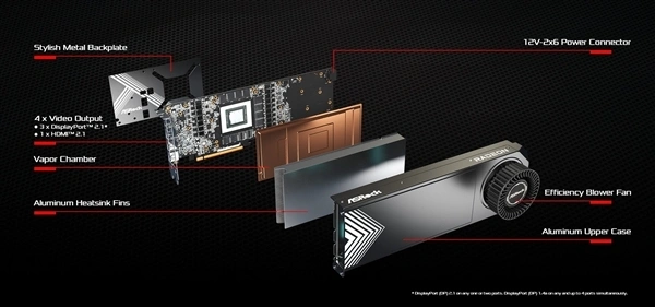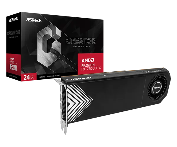 快科技7月21日消息,台北电脑展上展示之后,华擎正式发布了RX 7900 Creator系列显卡,面向专业创作人士,这也是第一款配备12V-2x6 16针供电接口的AMD显卡。 新卡包罗RX 7900 XTX Creator、RX 7900 XT Creator,都是单个涡轮风扇散热,厚度仅为双插槽,单个16针供电接口垂直放在尾部。 风扇支持智能启停,搭配铝材质外壳、铝质散热片、VC真空腔散、金属背板。 核心频率分别2270-2500MHz、2025-2395MHz,都有三个DP 2.1、HDMI 2.1输出接口。 代价还行,美蛋上要1070美元(¥7780元)、830美元(¥6035)。 |