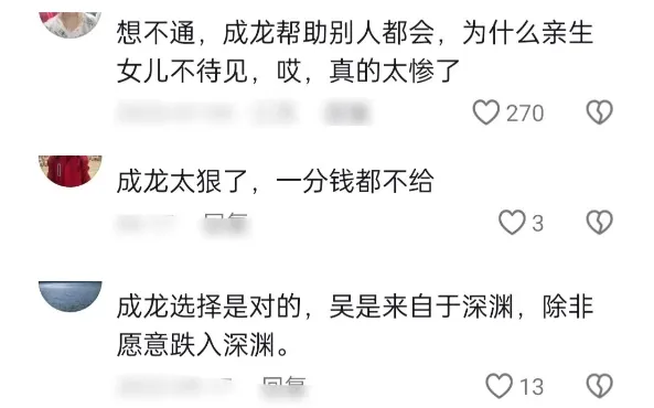 迩来,影戏《传说》上线,票房惨淡引发网友的关注和讨论。影片由成龙、张艺兴、古力娜扎、李治廷、李晨等人主演,上映7天,票房才7000多万,离预估的票房9000万还差了很多,口碑也并不抱负,仅有5.4分。 按理说,《传说》搜集了这么多知名演员,想来票房应该不会太差,效果却云云不佳,引发外界的思考,作为男主的成龙备受争议,他被质疑徐徐失去了影戏号召力。 很多网友留言称成龙反复卖情怀,让各人心累,看多了就无感了,另有人发起成龙退休,不要晚节不保。 着实,成龙本年已经70岁了,早就过了退休年事,可以好好享福了,可他继续活泼在荧幕前积极工作,亲身拍动作戏令人敬佩,但是成龙这些年演的戏都很一言难尽。 从成龙近五年的作品来看,评分都很低,《神探蒲松龄》3.8分,《龙牌之谜》3.6分,《狂怒沙暴》5分,《龙马精力》5.3分。 同时,这些影片票房也都不高,险些都扑街了。从热度和口碑来讲,成龙的作品大不如前,市场价值不抱负。一些人直言成龙已经“过气”了,他那些老掉牙的动作和剧情,无法顺应时代潮流,对年轻观众不实用。 而且,《传说》里成龙通过科技换脸重返年轻,也引起了诸多争议,大量网友质疑缺乏诚意,科技换脸显得不自然,非常影响观感,从而令人出戏,还不如让成龙儿子房祖名来演,假如科技换脸被观众买账,那以后也不必要演员了。 现实上,就算影戏票房和评分都欠佳,着实对成龙不会有太大的影响,70岁的他资产雄厚,曾有台媒报道,成龙身价已经凌驾25亿。/span> 早在1992年,有主持人扣问成龙赚了多少钱,成龙说他是天下级的分红,主持人表示报纸上登载的9800万元港币,折合台币是3亿多。 成龙到场另一档节目,再次被问到收入题目,他没有明白答复详细数额,而是说是一个惊人的数目,可想而知他该多有钱。 曾有媒体报道称成龙半年赚了6亿,是好莱坞身价最高,当时他的职位和影响力不问可知。 在成龙年轻的时间,二十岁左右的年龄,他就自曝赚的第一桶金是100万,他身上有100万,银行里还存有480万。 而且,成龙还表示他赚到钱后,买了七个名表,请已往的武行朋侪用饭,每天换个手表戴,这生活谁不说一句倾慕呢。 除了拍戏片酬丰厚,成龙还热爱投资,他的豪宅遍布全国各地、在美国、澳大利亚等多个国家拥有豪宅。成龙曾透露,他第一次来北京,购置的四合院差不多只有50万,现在代价翻了数倍,可能10个亿还不止。 前阵子,成龙去杭州买房,听说花了4000多万,房屋接纳精装修,由18k纯金镶嵌,十分奢华。 除了有多所房产,成龙另有多辆豪车、甚至他另有私人游艇,价值过亿。 不光云云,成龙还拥有私人飞机,价值2亿元,可载13名游客,机上另有他雇佣的空服人员。 别的,成龙还拥有多家公司,他曾自曝他有6间上市公司,好比闻名的英皇影业有限公司,就是成龙和其挚友杨受成合资开设的。 成龙还喜欢收藏,包罗玉器、紫檀、陶瓷等等,收藏品塞满8个堆栈,价值凌驾20亿。 现实上,成龙的钱都是他辛辛劳苦凭本领赚的,甚至可以说是拿命在赢利,他曾说他拍一场跳楼的戏,一个镜头一连拍了七天,价值一千万,当时他内心也畏惧,场景搭了那么久,他鼓足勇气对本身说,下面扮演路人的是他的成家班,万一有什么状况他们会接住他。 成龙赚得多他也捐得多,真的用心在回馈社会,他曾把收藏多年的文物捐赠,表示要掩护文明、尊重文明。 克制到2011年,成龙捐助了25所学校,他亲力亲为去置办小学,成龙说他要拍卖他的衣服,捐赠给辅导古迹。 这些年来,成龙在慈善公益的门路上从未克制,玉树地震的时间,成龙用两天的时间,筹办到了150吨货物,用他的私人飞机送到灾区,他还去到现场看望受灾群众,鼓励各人振作起来。 众所周知,成龙的妻子是林凤娇,他曾在节目上透露,起初是将财务大权把握在本身手里,因为身边有些朋侪一些不好的履历,所以成龙有戒心。厥后他和吴绮莉的事变被曝光,私生女吴卓林的事瞒不住了,成龙给林凤娇打电话,以为对方会骂他,如许他就顺理成章提出仳离。 但是林凤娇得知后,并没有骂成龙,而是让他去安抚吴绮莉,不要伤害她。顿时,成龙刹时眼泪掉下来,感叹本身坏透了,厥后他归去就把财产权交给林凤娇保管。 成龙表示他会不绝捐钱,假如儿子有本领,那就不必要他的钱,假如儿子没本领,那就是在浪费他的钱。 成龙更是直言,他死后要把银行卡归零,捐到一分不剩,他很感谢那些资助过他的人,他也很乐意去资助别人。 值得留意的是,成龙多次在公开场合提到儿子,对于私生女吴卓林他却比较回避,鲜少提及。成龙不认这个女儿,引发很多热议,吴卓林曾在采访中说她不熟悉成龙,她对这个人的熟悉程度,和各人是一样的。 此前,有媒体拍到吴卓林在国外领接济粮,照片中她穿着淳厚,发型缭乱有些干瘪。 对于成龙不认女儿,乐意把钱捐出去,也不留给女儿的举动,网友们见解不一,有人觉得成龙狠心,也有人觉得成龙是不想跌入深渊。 无论外界怎么看,成龙有他本身的想法,他对本身的财产有明白的规划,他的钱他乐意捐出去回馈社会,这是一件功德,只是惋惜了吴卓林,站在她的角度,没有父亲的伴随和承认,内心肯定会布满遗憾。 |