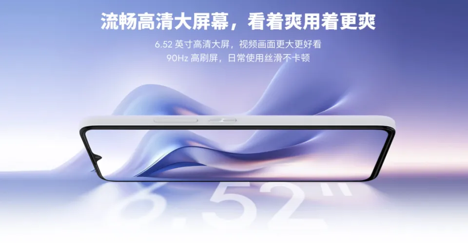 魅蓝 20 搭载一块 6.52 英寸 LED 屏,复古水滴屏大下巴造型。