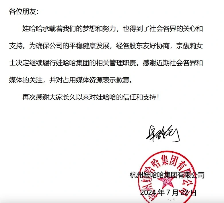 泉源:猎云网;文/孙媛 娃哈哈女掌门,回归。 7月22日晚,娃哈哈官网发布声明体现,为确保公司的平稳康健发展,经各股东友好协商,宗馥莉密斯决定继承推行娃哈哈团体的相关管理职责。娃哈哈还体现,感谢近期社会各界和媒体的关注,并对占用媒体资源体现歉意。 而这也就意味着为期4天的娃哈哈掌弟子变风波终于灰尘落定。 此前,一张落款时间为7月15日,由娃哈哈团体副董事长宗馥莉签名的辞职信在网上流传。 信中,宗馥莉体现“娃哈哈部分股东对其经营管理的公道性提出质疑,致使其无法继承推行管理指责”,并“决定自即日起辞去娃哈哈团体副董事长、总司理职务,不再加入其经营管理”。 固然这封辞职信并未盖章,彼时就留有一丝不确定性,但宗馥莉是否留任成为了各人关注的核心。 当时据第一财经日报,有前高管称宗馥莉辞职属实,不外娃哈哈股东杭州上城区文商旅投资控股团体有限公司未对该变乱的真实性体现回应;据凤凰网财经,娃哈哈杭州服务处则回应,“充公到相关文件”。 同时,第一财经消息也透露,有接近娃哈哈的人士体现,前段时间,娃哈哈高层连续走了几个;另据红星消息,娃哈哈一位工作多年的老员工体现,宗馥莉接班后没有将发展效果和员工同步,其对原有中高层职员频仍更换调解,员工是故意见的。 随后,对于娃哈哈团体副董事长、总司理宗馥莉传出辞职消息后,宗庆后胞弟宗泽后也在朋侪圈公开表态:“是件功德”。并以为其最大的问题是:接班娃哈哈不应该思量怎样做大规模,怎样赚钱,怎样大刀阔斧改变近况。 “她起首要思量是怎样做功德,做慈善?让全部人都认可你,在这个过程中你可以发现许多问题,也可以发现许多人才,天然而然让大多数人认可你的接班。她却反其道而行之,火力四开,锋芒毕露,应了古语:刚易折。” 信息联合起来,就开释出宗馥莉曾要“大改”娃哈哈的讯号,不外变革类的举措与宗庆后期间娃哈哈各人长式的管理模式有所不同,势必要面临高层的查验以及权利体系的调解。 根据天眼查的数据,杭州娃哈哈团体的最大股东是杭州上城区文商旅投资控股团体有限公司(简称“上城文商旅控股”),其持股比例高达46%。这家公司由上城区财务局、上城区国资委、上城区国有资源运营公司全资控股。 宗庆后本人持有杭州娃哈哈29.4%的股权,位列第二大股东,娃哈哈职工持股会则持股24.6%。 这也就意味着,在娃哈哈团体典范混淆全部制的股权结构下,固然国资背景的上城文商旅控股持有46%的股份,成为第一大股东,但其并未实现控股。在这种结构下,任何单一股东都无法单独控制企业,但股东之间的团结则大概形成绝对控股,职工持股会便成为了关键少数。 官网表现,杭州娃哈哈团体有限公司创建于1987年,在首创人宗庆后的向导下,从3个人、14万元乞贷白手发迹,通过不断开辟、锐意创新,现已发展成为全球领先的食品饮料生产企业之一,系中国企业500强、中国制造业500强、中国民营企业500强。企业规模和效益连续二十多年处于行业领先职位。 宗庆后作为娃哈哈的首创人和董事长,其汗青职位和在企业中的深远影响,在团体内部拥有极大的话语权。到了宗馥莉这边,要想真正把握娃哈哈团体的话语权,也就必须得到职工持股会的支持。 今后次回归来看,宗馥莉得到了娃哈哈股东的认可。不外于瓶装饮用水江湖来说,内卷升级之下,娃哈哈女掌门依然有硬仗要打。 |