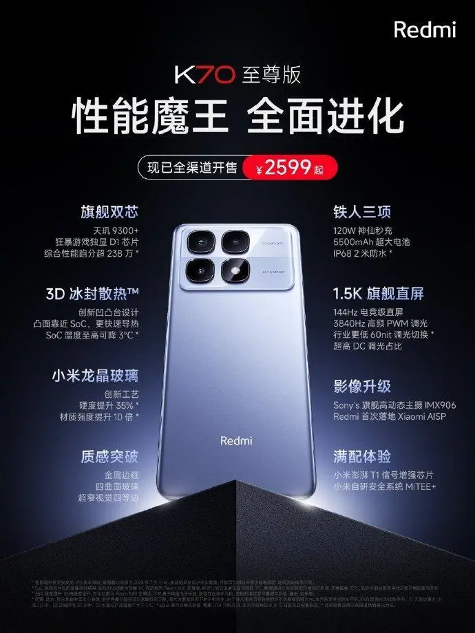 在昨日抖音的雷军年度演讲返场直播运动中,雷军透露了一个较为关键的消息,那就是固然K70至尊版如今看似卖的好,但现实上这个机子的本钱高的不得了,根本是卖一台亏一台的状态,而且还提到如今王腾还在那看到K70至尊的销量傻乐,看他年底怎么交作业。 对此,王腾也直接在微博复兴了,说完了,被雷总点名了,K70至尊的定价太激进,年底总结惆怅了。 作为一款起售价为2599元的新机,K70至尊可以说是设置非常足了。 游戏性能上,K70 至尊版全新定制了狞恶游游戏独显D1芯片,升级12nm制程,而且初次将自研AI超等视觉引擎运用在游戏中,实现超分、插帧带来的满血游戏体验。 影像方面,5000万像素,IMX906,1/1.56",双原生ISO DAG HDR,OIS;超广:800万像素;微距:200万像素。前置镜头为2000万像素,OV20B。 |