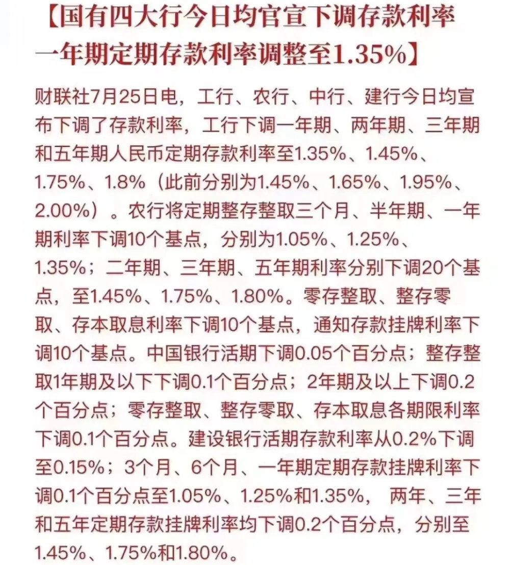 文/子木 一觉醒来,美股崩了。 特斯拉暴跌超12%,市值跌破7000亿美元;英伟达跌6.8%,市值蒸发靠近1.5万亿人民币;谷歌跌超5%,市值蒸发超8000亿人民币… “美股巨头七姐妹”,险些三军覆没。 华尔街非常告急,由于这次跟往常差别。 大盘股跌,小微盘股也在跌,甚至市场跌出了恐慌,大批资金正在加快撤离美股市场。 到底为什么? 答案正是昨天,各大巨头公布的财报,均不及预期。 特斯拉的车卖不动,谷歌和youtube的广告没人投,奢侈品巨头LVMH出货不畅,德银更是出现四年来初次亏损,福特汽车、家乐福业绩也不及预期。 美上市企业数据不会骗人,所以都在证明着,美国恒久加息的负面效应终于会合显现了。 一样平常这种环境,美国有关部门会通过粉饰数据,来稳固市场情绪,然而究竟是,这次也都不装了。 有关部门公布数据,反应美国经济景气度的7月PMI数据,美国制造业为49.5,跌破枯荣线,前值51.6,预期是51.7。 为什么不装了?这跟美国大选有关。 之前美联储和其他部门不敢得罪两党,纵然数据再差也要压住,以保证市场的稳固,所以我们看到了倒反天罡的征象,在加息抑制的环境下,美国经济一起狂飙,股市屡创新高。 但如今不一样,射向川普的子弹,成功地击中了拜登,拜登退选,推哈里斯上台竞选。 两党心田都清楚,初入政坛的女同学大概率会在总统辩说期间,被老谋深算的川普,虐成渣渣。 不出不测,川普上位美国总统是大概率事件。而川普又是开发商出身,钟爱降息,这正符合当下趋势,所以美国各派开始一边倒地开始附和降息,甚至恨不得7月就要降。 就连美联储前三把手杜德利,刚刚也“改口”亮相,剧烈支持降息,要知道这货,之前是加息信徒,老顽固。 美国巨头业绩不佳,制造业跌破枯荣线,再加上川普上台简直定性,那么美联储降息的预期,被敏捷放大,已经近在面前了。 有读者问我,为什么今年环球都在不厌其烦地讨论美国降息呢?到底跟我们有什么关系。 关系太大了,这决定了我国的货币政策走向,经济复苏节奏和环球资产价格的走势。 美国不降息,你降息,货币就会贬值,被割韭菜。但假如美国降息,你也跟着降息,货币就没有贬值压力,就不会被割韭菜。 如今美国那边一系列征象表明,降息预期已经将近落地了,美元开始贬值,而我们这边,在岸、离岸人民币日内大涨,双双走高。 空间出来了,随后,我央行趁势官宣增发“麻辣粉”,提前开始超预期降息,直接大降了20BP。 人民币走势走强,我们这边就能开启“钱”途无量模式,下半年以旧换新、楼市去库存、改善民生、新基建投资都有钱了,加大降息节奏,将水引向各个层面,这是下半年的主流趋势。 固然降息会导致银行净息差进一步缩小,银举动了保本就会进一步下调存款利率,所以今天我们也看到了: 工、农、中、建、交五大行团体下调存款挂牌利率,下调幅度在10-20个基点左右,5年定期存款利率跌破2%,降至1.8%。 我之前反复夸大,利率走势会在将来五年加快下滑。 25年前,风俗10.98%的利钱; 13年前,风俗3.6%的利钱; 如今,要风俗1.5%的利钱; 而5-10年后,要风俗零利率甚至负利率。 钱存在银行不值钱,人们开始找去处,切换赛道,这就表明白为什么银行迩来都在纷纷“设置转账限额”。 实在就是以防诈骗的名义防止客户流失,只要你取钱,还要问你钱的用途,钱的来源,想提额还要申请审批等等,尽大概为难你,这个我在另一个号,还专门写过,感爱好可以去读《我竟然也要维权了》这篇文章。 平凡人能做的并不多,只能在利率快速滑落到底前,守住本身的恒久回报率。 好比买恒久国债、大额存单、年金险和增额寿、收息股这些。 黄金也可以继续买,假如美股继续下跌,资源就会探求避险资产,黄金是不二去处,而且美联储降息,利好的也是黄金。等过了这段时间,价格颠簸竣事,各人可以恒久定投,比放在银行强太多,到时间会及时通知各人。 至于大A……我也不知道,今天圈内疯传一张图足以分析统统: 总之,美联储降息关系着所有人的钱袋子,今年环球资源市场都会关注这一件事,亚洲、欧洲、中东等等,今年经济都会陷入阑珊,没有风景独好的局面。 我们这边大概压力更大些,最重要是产能过剩、人才过剩,导致内卷走向极端化。 从今年报考的效果来看,多个988、211遇冷,许多高分数学子报考了警员学校,甚至是专科技校。不为别的,只为毕业收入高一些,找工作轻易一些。 同时多个高校还官宣了,研究生学制从2年延伸到3年。重要也是为了应对就业题目的无奈办法,研究生在象牙塔里多呆一年,也比提进步入社会感受劳动法的暴虐强许多。 固然纵然环球进入降息周期,我们面对的国际局面也是错综复杂的,谁都无法猜测经济什么时间能好起来,至少下半年会很难。 接下来应对的最大挑战是,川普上台后的新一轮大国博弈,到时间川普会百般刁难,而我们是否能把新一轮改革开放走好,成了决赛圈的关键时候。 对外把第三天下走通走强,打开更广阔的天下交流窗口,对内深度改革,税改优化二次分配,科技创建大国功底,都是格外告急的办法。 这是国运,也是人运。 每到这时间,我通常会想起芒格的一句话: 宏观是我们必须担当的,微观才是我们可以有所作为的。 宏观上不失信心、生存渴望,微观上伏草惟存,趋利避害,有机会就往前挤挤不掉队,走好本身的路才是永恒之道。 而在这个路上,我也会帮各人做好天气预告的作用。 |