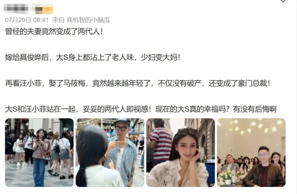 克日,大S带子女和具俊晔在韩国旅游被网友拍到。 从网友曝光的照片来看,大S有些干瘪,法令纹很深,脸部朽迈陈迹明显。看上去比前次露面老了好几岁,身段也有些发福,在人群中毫无星味,与普通妈妈无异。 很快,这几张照片就在网上引发热议,有不敢信赖这是大S的,也有猜疑照片被故意锐化的,另有人讥讽她现在的状态跟具俊晔越来越配了,因为都有“老人味”。 大S的经纪人回应称,她只关心小孩的脸有没有被打马赛克,至于网上那些对自己状态的评价,她完全不在意。 不在乎外界的声音,大S心态确实是好。 但自从和具俊晔完婚后,她险些停掉了全部工作,频频露面状态也是一次比一次差。幸不幸福只有她自己知道,但越混越差,生存没从前富足了是究竟。 曾经是心比天高的“美容大王”,现在穿搭质朴,发型随意,哪里还是我们熟悉的谁人大S。 而她的台湾姐妹花们,现在的近况也是一个比一个窘迫。 大S和她的姐妹团团名叫“七仙女”,除了她,其他成员有小S、阿雅、范晓萱、范玮琪、吴佩慈、Makiyo。 曾经,“七仙女”也是台湾娱乐圈红极一时的姐妹团,不论是颜值还是人气,都得到了大众的承认。 可随着时间的推移,成员们各自发展,她们的关系发生变革,口碑也开始江河日下。 大S自从和汪小菲仳离后,不论是外貌和形象的变革,还是她和汪家之间的纠纷,都让她的路因缘急速下滑。而妹妹小S的环境,也没有好到哪里去。 自从《康熙来了》停播后,小S就变成“赋闲人士”,频频在网络上“发疯”,不是喝醉酒,就是半夜对粉丝哭诉,一度让人猜疑她的精力状态。 老公许雅钧负面消息不绝,而每次在镜头前发声回应的,都是小S。她还总在节目中提到他们俩已经好几年没有夫妻生存。 直到近两年,小S又有了固定节目《小姐不熙娣》,重新有了工作的她,状态也开始回升。 但大女儿许曦文和二女儿许韶恩,又在网上又频繁引发争议。克日二女儿的代言地广铺到了重庆解放碑,却疑似遭到网友抵抗被下架。 看来,巨细S的口碑是回不去了,连子女都受到了影响。 而好姐妹Makiyo,与之前相比,更是判若两人的存在。 感情生存颇为丰富的她,曾和罗志祥和欧弟都有过爱情关系,但她终极选择嫁给了一个圈外人,闪婚闪离后现独自抚养小孩。仳离后继承采访还各种控诉前夫,并表现自己根本不爱他,只是为了小孩才结的婚。 曾经身段火辣,另有些娃娃脸的她,现在骨瘦如柴,脸部干瘪、双眼无神,完全变了一个人。 不少网友质疑她大概是身段出了问题或是药物导致,但她自己表明说是独自带小孩太累了,又要忙着赢利,没空吃东西,以是才暴瘦。 从前靠着和巨细S的关系,节目邀约不绝,中心因为出租车负面消息差点断送事业。现在的她偶尔上一些综艺节目,自己也在直播带货,也算是终于开始靠自己了。 吴佩慈在与纪晓波爱情后,就阔别了巨细S这一群姐妹,还重新组了一个“甜心帮”姐妹团。 和纪晓波在一起多年,为他生了四个娃,却不绝没转正。前两年,还被人讨债,香港陌头随处都是她和纪晓波的海报。 去年,纪晓波被定性为恶权势犯罪集团主要分子,吴佩慈的好日子也被指已经到头。 克日露面好友生日会的吴佩慈,头发乱糟糟显老态,也早已没了昔日的星光。 不知道这破碎的权弟子活,吴佩慈心里是何滋味? 范玮琪一起以来也是争议不绝,跟张韶涵之间的往事还没被网友忘记,又在梁静茹传仳离时被指发表“隐隐隐约听说过”的神语录,引发群嘲。 除此之外,丈夫陈建州还被女团成员“大牙”控告性侵,陈建州硬刚并反诉大牙,但终极败诉。 期间范玮琪多次表现力挺丈夫,但这两公婆的公信力和口碑已经越来越差,除了身边人,险些没有其他人站队。 曾经高调的范玮琪,在履历了频频事故后也长了辅导,近年来明显低调了许多,前阵子来本地加入音乐节,只有少数粉丝去到现场支持,也算是悄悄的来,悄悄的走了。 跟前面几位相比,范晓萱和阿雅的路因缘则好太多。 范晓萱身上固然也有一些争议声,但她性格直率、不造作,多年来低调不作妖。作为歌手有属于自己的代表作,作为演员演技也可圈可点,完满是靠才华赢得了大众的承认。 而阿雅,被指“丑小鸭变天鹅”,摇身一变成为了“七仙女”中最乐成的一位。 她渐渐从谐星形象变革为知性主持人,并开始在更多有深度和内在的节目中出现,加入制作的节目均获得了很高的评价。 她的翻身让不少网友大喊“民怨沸腾”,因为再也不消受巨细S的打压了。不论是学识、本领还是观众缘,她们几位全都比不上现在的阿雅。 韶光荏苒,曾经的“七仙女”成员们各自履历了差别的人生轨迹,除了阿雅之外,其他几位都可以说是高开低走,乃至是高开乱走。 现在都已经40+的她们,人生已经过半,渴望她们能更好的把控自己的下半生吧。 |