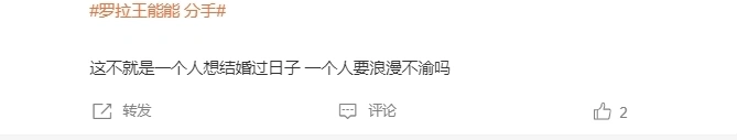 迩来,曾到场过《心动的信号》第四序的男高朋马子佳被曝结婚,婚礼现场相当浪漫,但新娘既不是其在节目中第一眼心中的女生洪成成,也不是其末了牵手的女高朋孔汝淳,而是一位从未曾曝光过的素人女高朋,曾经圈粉无数的“玛卡巴卡”CP彻底BE了,让不少CP粉不禁唏嘘。 而继马子佳和孔汝淳以分手告终后,曾因为另一档热门爱情综艺《半熟情人》结缘的巴啦啦能量CP王能能和罗拉也出现了感情危急,有网友发现罗拉删除了与王能能一起拍摄的视频,而王能能也将官宣和秀恩爱的视频取消了置顶,一时间两人分手消息传得沸沸扬扬。 要知道,罗拉和王能能固然都曾履历过一段婚姻,也都有孩子,但是两人爱情模式还是很像小情侣一样,之前也曾因吵架就删除合体视频。就在各人以为这次也是小情侣闹抵牾时,王能能率先在直播时回应了此事,当时他认可吵架,但是否认与罗拉分手,并且表现两人的拘束很深,并不是吵架就能分开的。 有王能能这句话,许多人算是松了一口气,但是也有人质疑王能能否认分手只是还想捆绑赚告示费,而他的那句拘束很深也大概只是捆绑长处而已。果不其然,王能能前脚否认分手,罗拉后脚就发文“有的人要的是风花雪月的爱情,而有的人要的是细水长流的牵绊,这是始终围绕着我们相互之间的命题,这么长的关系与相处并不是三言两语可以说得清楚,相互都很好,但我真的已经累了”,正式官宣分手。 显然,通过罗拉的发文就能看出来,两人之以是分手,是因为在某些方面达不成划一,而两人因为这些闹得不愉快,罗拉已经很疲劳了。而其品评区也有粉丝留言“如果你们相相互爱且性格符合,为什么要在乎那一张纸”,劝罗拉不要钻牛角尖,有劝和的意味。 而罗拉也复兴并且明确表现本身不是在乎那一张纸,而是夸大本身不大概一直租房在这里等着他来爱情。联合其上面的发文,显然是罗拉和王能能对于家庭的规划出现了分歧,王能能只想要风花雪月的爱情,并不想要婚姻的责任和束缚,而罗拉寻求的则是相对稳固的家庭。 随后也有粉丝爆料,罗拉和王能能在一起后,一直辗转在本身的都会和王能能的都会,不光要分身工作和孩子,还要花大量时间解决异地标题,她曾多次提过这个标题,但是王能能都没有给出解决办法。可见,罗拉是真的想跟王能能走下去,但是男方显然更喜欢无拘无束并且相对轻松的爱情,并不想进入婚姻。 都说“享受了权益,就要付出相应的责任”,王能能享受着罗拉带给她伴侣的甜蜜,却又迟迟不肯结婚以及与其更进一步,显然是不负责任的表现,也难怪罗拉会片面公布分手。 末了,爱情如人饮水内心有数,罗拉和王能能从茫茫人海中相遇非常不易,但是如果三观反面,强行在一起也是虚度,分开大概对两人都好。你们对此怎么看?#罗拉回应分手# |