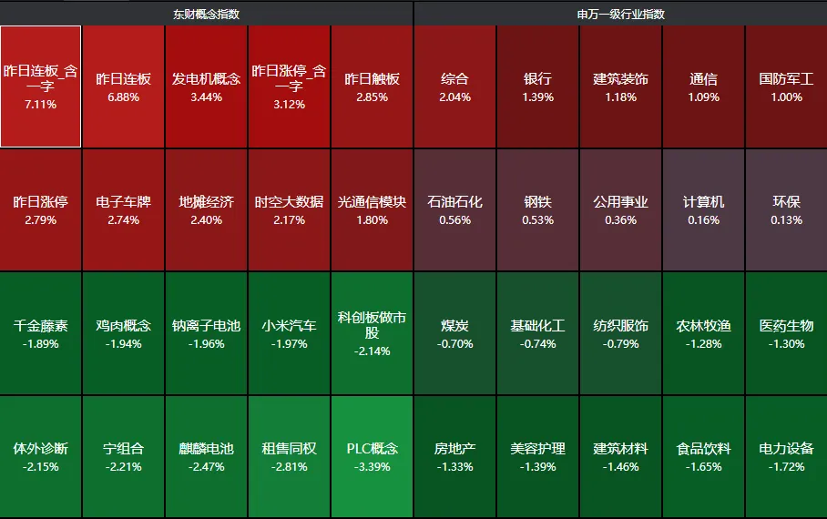 末了简朴看下盘面,截至收盘,上证指数微涨0.03%,创业板指跌幅为1.44%,港股恒生指数涨幅为1.33%,恒生科技指数涨幅为0.83%。两市成交额大幅缩量至0.58万亿,又到了地量程度。 分行业来看,综合、银行、修建装饰、通讯、国防军工等行业领涨,电力装备、食品饮料、修建质料、美容护理、房地产等行业领跌。 风险提示: 股市有风险,投资需审慎,本文不构成投资建议,读者需独立思索 |