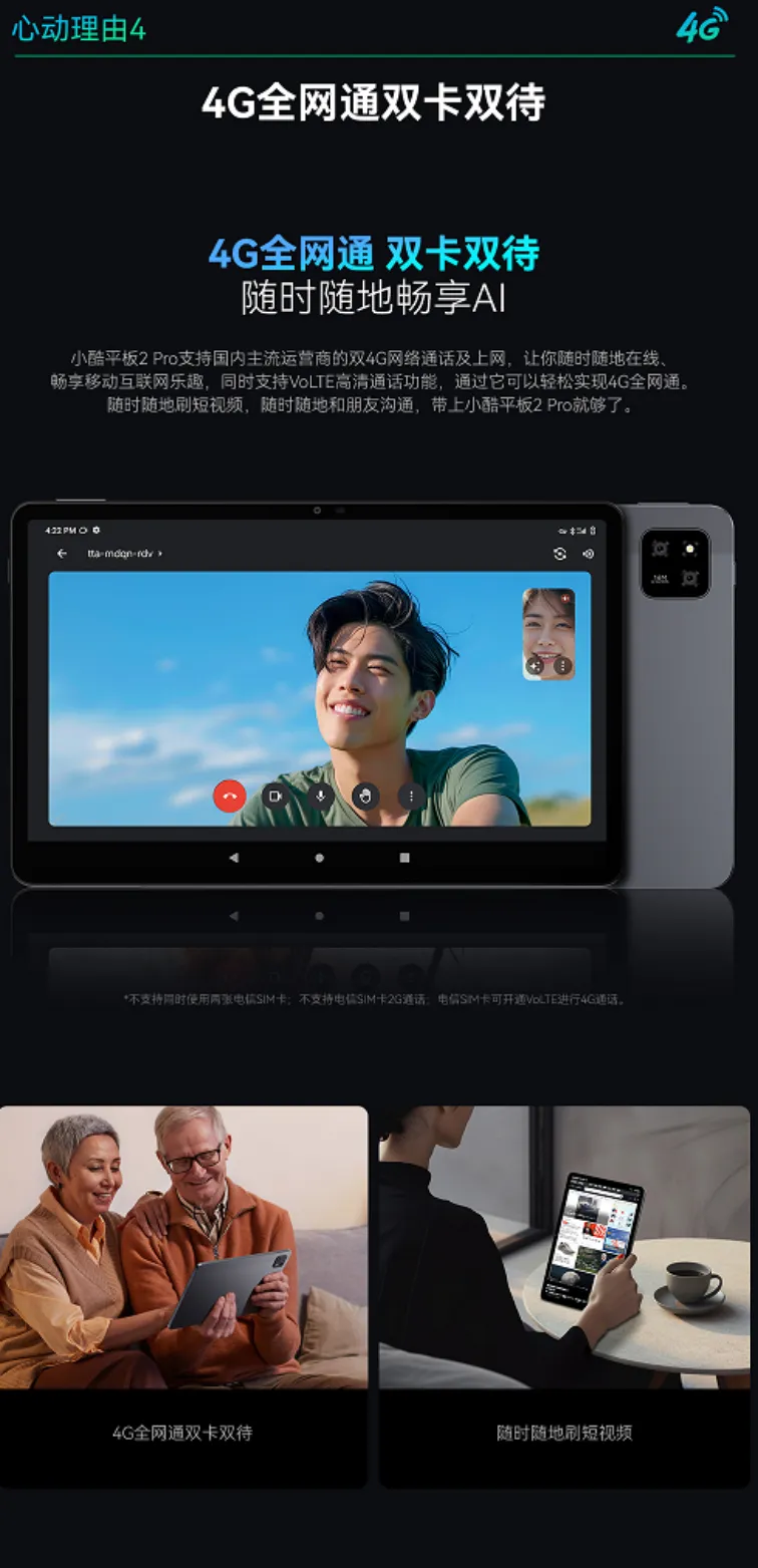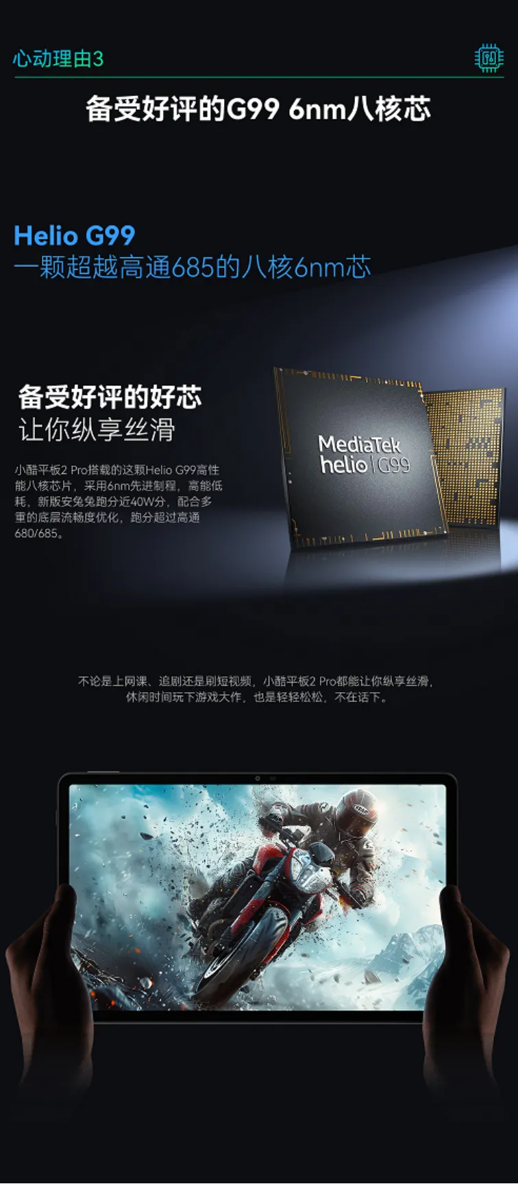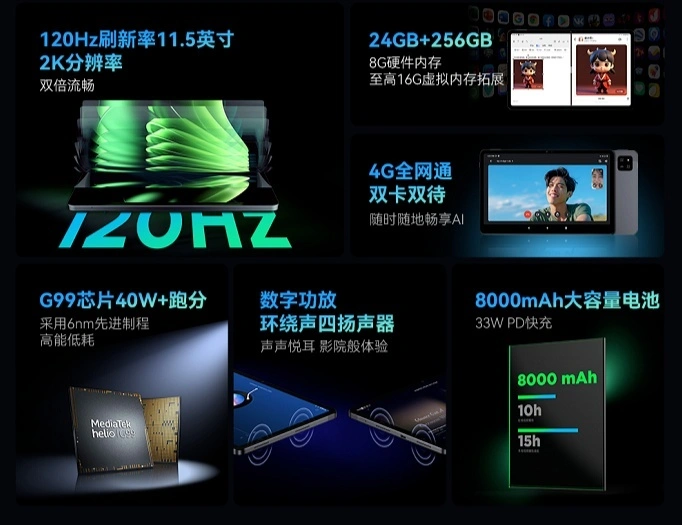 IT之家 7 月 29 日消息,酷比魔方公布,小酷平板 2 Pro 将于明日(7 月 30 日)发布,搭载联发科 G99 处理器,配备 11.5 英寸 2K 护眼黑钻屏,支持全网通通话、上网,首发 1199 元。 据先容,酷比魔方小酷平板 2 Pro 配备 120Hz 高刷屏,屏幕尺寸为 11.5 英寸,官方体现,该屏幕分辨率为 2K,峰值亮度 400nits,支持全视角体现角度,覆盖 100% sRGB 色域。 该平板接纳 8GB+256GB 内存组合,支持拓展 16GB 虚拟内存,同时支持最大 1TB TF 卡拓展。 酷比魔方小酷平板 2 Pro 搭载联发科Helio G99 处理器,接纳 6nm 制程工艺,新版安兔兔跑分近 40W 分;该平板支持 4G 全网通 + 双卡双待,可实现国内运营商的双 4G 网络通话及上网功能。 小酷平板 2 Pro 配备智能功放芯片,接纳 BOX 音腔计划,搭载围绕式四扬声器;内置 8000mAh 容量电池,支持 33W PD 快充,官方体现该平板在线视频播放续航时间达 10 小时,当地视频播放续航时间达 15 小时。 该平板厚度约 7.5mm,预装安卓 14 定制体系;前置 800 万像素,支持人脸解锁、后置 1600 万像素主摄,支持智能场景识别,自动优化成像亮度,对比度,色彩饱和度,质感影像。 酷比魔方小酷平板 2 Pro 还支持双频 Wi-Fi、GPS 卫星导航、蓝牙 5.2 连接。IT之家附该平板亮点信息如下: |