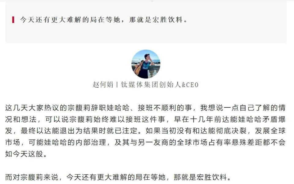 这半个多月来,宗馥莉的辞职信、娃哈哈集团的“宗馥莉复职声明”、网传的关于宗家和宗馥莉转移资产的举报信,轮次刷屏。 对于吃瓜群众来说,看到的是巨细姐“敢爱敢恨”的作风,脑补的是一出权门争产大剧,在官宣“宗馥莉决定继续履行娃哈哈集团相干管理职责”时,似乎又看到了这大女主胜出的华丽收场。 然而现实和想象差距很远,在娃哈哈集团真正的困难眼前,所谓“权门争产”都只能算是小菜。 毕竟上,从宗庆后开始,娃哈哈集团最大的题目就是归属权&控制权归属。宗馥莉辞职变乱闹得沸沸扬扬,全网关注,实在质上掖掖仪这个焦点症结的余波荡漾而已。 娃哈哈副董事长宗馥莉vs宏胜集团董事长宗馥莉 陪同着宗馥莉“继续任职”的消息,网上同时流传开了一封自称是来自娃哈哈集团前员工的举报信,该信言之凿凿,称宏胜集团董事长宗馥莉在业务上通过转移订单、转移利润甚至转移资产的本领,把原属于国有持股的娃哈哈集团权益,转到她本身的宏胜集团,来到达陵犯国有资产的目标。 请留意,这封举报信的举报对象,是宏胜集团董事长宗馥莉,而不是娃哈哈集团副董事长宗馥莉。这是个很故意思的细节。 宏胜集团董事长宗馥莉,固然就是娃哈哈集团副董事长宗馥莉,再多的title加上去,自然人她照旧那个自然人。但是宗馥莉最广为人知的身份,是娃哈哈集团的相干身份,为什么举报信要特意指明“宏胜集团董事长”这个对于公众来说稍有生疏的身份呢? 由于,从宗庆后期间至今,围绕着宏胜集团都有一个撕不掉抹不开的巨大争议——该公司是娃哈哈集团的体外公司。 何谓体外公司?就是依附于某个公司而存在,但是股东层面上没有关联。 娃哈哈的体外公司 在宗庆后和达能集团那场旷日长期的“达娃之争”大战中,导火索就是宏胜集团等一系列娃哈哈的“体外公司”,这件事堪称改开以来中国最着名的商战,最闭幕果是宏胜集团精疲力竭,平沽股权,黯然退场。 “达娃之争”太着名了,在这里就简述一下,节流读者时间,想了解更多细节的网上随便搜一搜有大把。 1996年,娃哈哈和达能建立合资公司,由达能方持有51%股权。 一开始,这看似是一笔非常舒畅的财务投资,宗庆后掌管大权,达能方面只负责坐地分金,以及提供一些股东义务方面上的援助比方疏通关系之类。 但是,统统在2006年剧变,达能发现宗庆后在合资公司之外创建一系列由国有企业和职工持股的非合资公司,这些非合资公司每年都有丰厚的利润。达能方面认为这些非合资公司的存在拿走了本应由合资公司享有的市场和利润。 这些非合资公司,代表就是前面提到的宏胜集团。 在宗庆后的角度来看达能集团:你个老六当初投了个把亿,这么多年来分红都几十个亿了,你还要啥自行车? 在达能集团的角度来看宗庆后:没有我当初大笔资金支持,你能在中国饮用水市场独占鳌头?如今你牛起来了,就用体外公司转移利润?宏胜集团这些公司用着娃哈哈的商标、娃哈哈的渠道、还干着娃哈哈的代工,偏偏产生的利润和我这个第一大股东没有一毛钱关系?咋滴?你当我是卫生纸,用完就丢呗? 趁便一提,实在“达娃之争”并不是一个符合的词,由于当年辩说的两边实在是宗庆后和达能,达能当年是娃哈哈的第一大股东,所以这场著名的公案本应叫做“娃哈哈股东之争”大概“宗达之争”。 但很神奇,多年以来,它一直就被叫做“达娃之争”。这根本不能代表中国笔墨的表意水平。为什么会如许,各人可以自行思考,自行探索,文章里面没法写。 如今说回体外公司这一茬。 体外公司实在也不算是任何不苟言笑的管帐书籍上的正式名词,对于上市公司来说,它每每和转移资产等违法活动联系在一起,你要是说哪个上市公司高管有体外公司,人家肯定跟你急。 体外公司未必黑白法的,任何法律、任何财务规则都有毛病,这么说吧,只要你做的够大,全天下顶级的管帐师和状师会帮你弥合缺陷,利用毛病。 但全天下公认的是,至少体外公司,它是不体面的。 娃哈哈集团这个例子太大了,不方便理解。我们举一个更简朴的例子吧。 隔壁老王有一手点豆腐的好手艺,但是他没钱,于是找到了李财主合资开店,李财主投资10两银子,占股51%。店开起来了,豆腐卖得超等好,很快每个月都能赚不止10两银子。这时隔断壁老王钱也不缺了,他朝思暮想就是把李财主赶走,李财主又不傻,人产业然不走。于是隔壁老王一琢磨,就让店里的店员去隔壁再开一家店,通过质料、加工、代售等各个环节,把利润大头留给这家新店。 达能往事,本日之辙 著名媒体人赵何娟是这么对待“达娃之争”的。 为啥赵何娟侧重提到“举世市场”,由于和达能的这场官司,娃哈哈实质上是即是把本身开辟举世市场的路断了。宗老当年争产是乐成了,但是在举世商界看来,这种把股东赶出去的本领太爆裂了,属于不恭敬普世规则。 固然,失去举世市场对于娃哈哈来说,也可以继承。由于中国已经够大了,容得下一个水企。 然而此事的余波至今未息,体外公司并没有随着达娃之争落幕而消散,而是发展得越来越大。 那么题目来了,娃哈哈集团的股东包括国资、宗庆后和娃哈哈员工持股代表。也就是说,当年达能面对的,很大水平上就是国资股东面对的。 宗老在世时,他对娃哈哈集团的掌控力度毋庸置疑,谁也翻不出个浪花来。所以娃哈哈集团外貌上看起来光阴静好,冷静赢利。