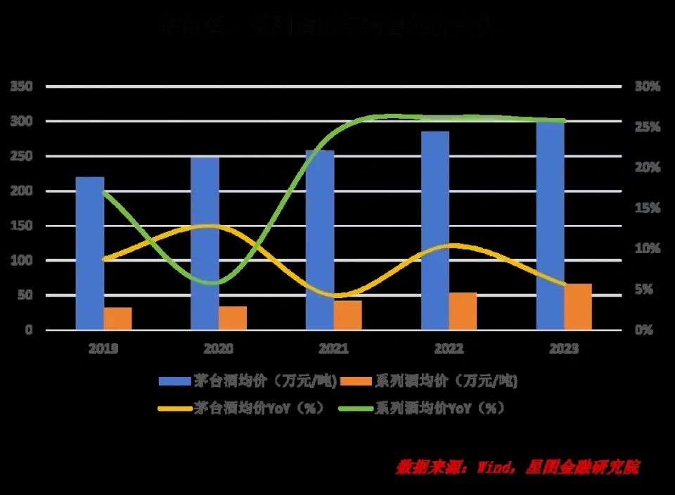 在贵州茅台出手减量保价之后,茅台酒终于稳住了! 据本日酒价数据,截至7月29日,2024年飞天茅台(散)53度/500ml批价已经回升至2375元/瓶,预计随着下半年中秋、国庆等消费旺季到来,代价有望继续上涨。 不外,二级市场对此好像并不太买账,股价小幅反弹之后便一路下行收出6连阴。截至7月29日,贵州茅台股价收在1398.02元/股,创下近18个月以来的新低。 在对贵州茅台举行深入研究之后,我们发现,贵州茅台依然具备极大的增长潜力,股价的偶发颠簸反而会创造不错的买点。 1 在很长一段时间内,贵州茅台都被认为是代价投资的典范,以致一度被称为“A股股王”,段永平、张坤、但斌等,一众投资大佬都对其另眼相待。 贵州茅台确实争气,多年来营利不停出现出高速增长的状态。自2019至2023的5年间,贵州茅台的业务收入自888.54亿元增长至1505.60亿元,年均复合增长率到达了14.09%,净利润自414.07亿元增长至747.53亿元,年均复合增长率到达了15.91%。2024年1季度,贵州茅台业务收入为464.85亿元,同比增长18.04%,净利润为240.51亿元,同比增长15.75%。在复利的巨大威力下,贵州茅台2024年第1季度就已经超过2016年整年经业务绩。 正是由于对贵州茅台未来业绩增长有着良好的预期,二级市场慷慨地给予了贵州茅台较高的估值,恒久以来其市盈率在中高端白酒中不停压倒一切。 假如缩小到高端的“茅五泸”,可以看到,贵州茅台的滚动市盈率快要五粮液和泸州老窖的两倍,并且,从Wind划一预期来看,泸州老窖近2年净利润的年均复合增长率以致还要高于贵州茅台,由此可以窥见市场在中恒久对贵州茅台的信心和青睐。 2 对于一家公司来说,要想实现业务收入的增长,重要有两大办法,一是增“量”,就是增长对外贩卖商品和服务的数目;二是提“价”,就是进步对外贩卖商品和服务的均价。 具体到净利润上,由于净利润本身就是业务收入的一部门,撤除以上两条以外,低沉产物本钱、淘汰期间费用,也可以在营收不变的环境下增重利润。 就贵州茅台近5年的毛利率和净利率来看,根本上维持在稳态水平。其中,毛利率近5年根本上都在90%左右,净利率近5年根本上都在50%左右。我们可以大抵认为毛利润和净利润在业务收入中所占的比重是维持不变的,因此可以将重要篇幅来会合讨论量价因素对贵州茅台业务收入的影响。 拆分一下量价对贵州茅台营收增长的贡献,具体来看,贵州茅台产物重要可以分为茅台酒和系列酒两大系列,前者可以分为飞天茅台和非标茅台,后者重要是相对飞天茅台而言的中低端产物,包罗贵州大曲、赖茅、汉酱、王子、迎宾等。茅台酒在营收中占比约莫为85%,系列酒在营收中占比约莫为15%。 从量上来看,从2019至2023的5年间,茅台酒对外销量自34562.46吨提拔至42109.5吨,涨幅约莫为21.84%,年均复合增长率为5.06%,同期系列酒对外销量自30082.84吨提拔至31164.54吨,涨幅约莫为3.60%,年均复合增长率为0.89%。可以认为,近5年以来,贵州茅台对外贩卖的茅台酒数目快速增长,系列酒放量相对迟缓。 从价上来看,从2019至2023的5年间,茅台酒对外贩卖均价自219.32万元/吨提拔至300.62万元/吨,涨幅为37.07%,年均复合增长率为8.20%;同期系列酒均价自31.72万元/吨提拔至66.20万元/吨,涨幅为108.69%,年均复合增长率为20.19%。可以认为,近5年以来,贵州茅台对外贩卖均价快速上涨,系列酒提价显着更为激进,茅台酒提价幅度也不小。 总得来说,近5年以来,贵州茅台绝大部门业绩增长泉源于茅台酒,茅台酒与系列酒对营收增量贡献比例约莫为8:2,细分到量价层面,处于成熟期的茅台酒增量更为显着,处于成恒久的系列酒提价更为激进。 3 要预测贵州茅台未来的业绩增长,我们要先抓重要抵牾,再看次要抵牾。 由于茅台酒贡献了绝大部门存量和增量,显然,茅台酒未来的提价增量更值得我们研究。 先来说说茅台酒代价,对于茅台酒,厂家要想进步贩卖均价,重要有以下几种方法: 第一是进步产物出厂价。这是一个立竿见影的办法,由于茅台经销商是按月打款的,这意味厂商提价所带来的积极影响很快就可以表现在收入中。不外,这种大招显然并不能常用,以飞天茅台为例,近10年来仅提价2次,迩来的1次是去年10月提价20%。 第二是增长非标茅台投放量。这是一种隐晦的提价方法,非标茅台重要包罗陈年茅台、珍品茅台、佳构茅台、生肖茅台等产物,出厂代价每每远高于飞天茅台,并且,由于其代价变革对品牌直接影响相对较小,因此无论是提价频率照旧涨价幅度,非标茅台相对于飞天茅台都更具有上风,从而成为推动茅台酒吨价提拔的重要气力。 第三是直营渠道占比提拔。茅台经销商不停诉苦贵州茅台将大部门新增份额给了直营渠道,这可以从侧面分析,直营渠道相对于经销渠道对厂商更具吸引力。以小茅(即飞天茅台53度/100ml)为例,其在i茅台贩卖单价为399元/瓶,假如折合为500ml则为1995元/瓶,险些是经销商进货价1169元/瓶的2倍。 再来说说茅台酒数目,对于贵州茅台来说,由于出厂价、引导价和零售价之间的巨大价差,有货肯定不愁卖,对外贩卖数目的关键在于茅台酒当年产量,大概说是4年前基酒产量。这重要是由茅台酒的生产工艺所决定的,由于其制成基酒后必要分型储存3年,老酒勾兑后至少再储存1年,由于储存挥发、保存老酒等原因,茅台酒销量与基酒产量比例大概在75%~85%之间。假如是更为高端的年份酒,以致还必要更长时间的老酒来调制。 从