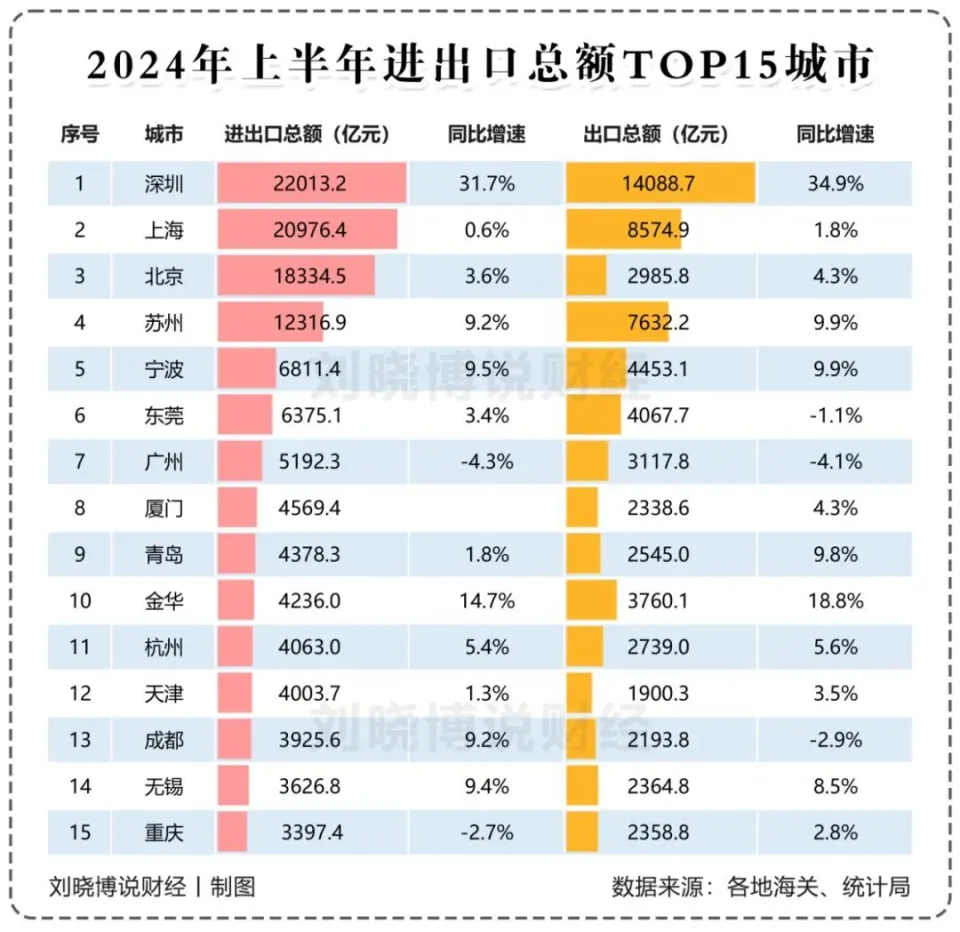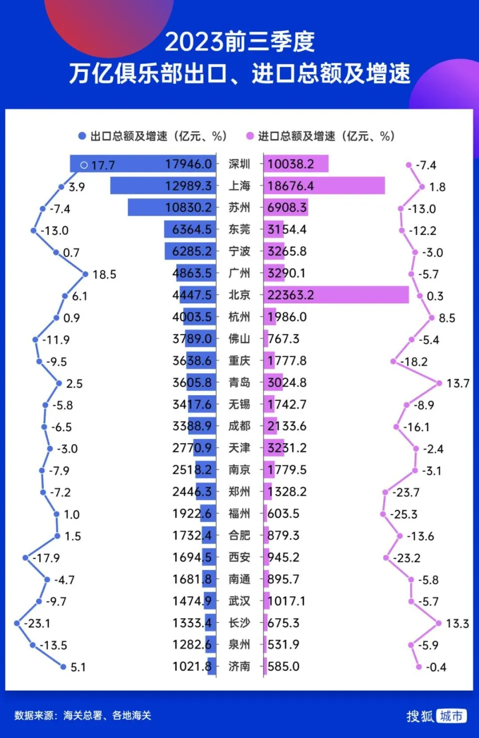 苏州增速第一 客岁履历了短暂低迷后,苏州今年重振雄风。 2023年,苏州GDP为24653.4亿元,增长4.6%。这一增速,在26座万亿GDP都会中,与南京、广州并列倒数第三,仅高于东莞、天津。 进入2024年,苏州一连两个季度GDP增速领跑GDP十强都会。 一季度,苏州GDP增速7.9%,位居十强都会第一位。 上半年,苏州GDP上半年全市实现地区生产总值12059.4亿元,实际增长了6.2%,仍然位居十强都会首位。且跑赢了天下大盘1.2个百分点。 制图:都会财经;数据:各都会统计局 苏州是怎样从客岁的增速倒数,反转为今年一季度的增速领跑? 想了解这个问题,先要清楚客岁苏州的GDP增速为何倒数,缘故原由在出口跳水、外资淘汰,以及工业增速不敷强劲。 苏州是一个外向型都会,外贸依靠度位居天下第四,仅次于金华、东莞、深圳。 而苏州客岁的出口,不停在下跌。 数据显示,客岁前三季度苏州的出口总额10830.2亿元,下跌了7.4%。 客岁整年,苏州出口15081.59亿元,下跌了2.5%。 外资方面,客岁苏州实际使用外资69亿美元,同比降落了6.9%。 制图:都会财经;数据:苏州市统计局 从产业布局来看,苏州是典范的工业都会,其工业气力位居天下第三,仅次于深圳、上海。 然而,客岁苏州的工业增长值增速只有3.6%,虽然也在增长,但在万亿都会中,这一增速显着偏低。