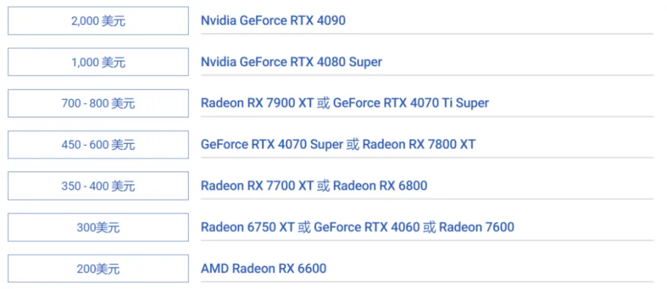 本文由半导体产业纵横(ID:ICVIEWS)编译自techspot 在特定的预算下,您应该购买哪种显卡? 说到 GPU 和显卡,TechSpot 会进行深入研究。年复一年,笔者测试了Nvidia、AMD和Intel的数十款 GPU ,以确定哪些值得购买。 不幸的是,PC 显卡市场如今处于停滞状态,这是已往几十年来不常见的环境。固然当前的 GPU 技能令人印象深刻,但新芯片的发布速率已经放缓,从代价角度来看代价并不高,在已往 6 到 12 个月内险些没有厘革。但是,假如您正在组装一台新的游戏 PC,第一次打仗 PC 游戏,大概您现有的显卡开始感觉有点旧,那么仍然值得讨论如今可用的最佳 GPU 选项。 为了简化选择新显卡的过程,TechSpot 的最佳 GPU 指南旨在回复一个简朴的题目:在特定的预算下,您应该购买哪种显卡? 您如今应该购买 GPU 吗?但在此之前,起首需要回复的题目是,您是否应该思量购买显卡,经典的题目是“您应该购买照旧应该等待?” 当然,这取决于您的环境以及现有 GPU 的性能,大概您是否拥有 GPU 。但一般来说,您思量购买的 GPU 越高端,您就越应该思量等待。 这是由于下一代 GPU 预计将在未来六个月内发布。市场如今正处于当前一代产物周期的末端。Nvidia 的 RTX 50 系列预计将于 2024 年第四序度推出,尽管迩来有传言称这可能会推迟到 2025 年 1 月发布。同样,AMD 的 RDNA 4 代将于 1 月在 CES 2025 上表态,现实供货环境仍不确定,从发布后一周到几个月不等。 与新一代 GPU 的范例环境一样,高端产物将起首上架,随后几个月将推出低端型号。这意味着您将等待更短的时间才气得到新的高端 GPU,而等待更自制的产物则需要更长的时间。由于预计 RDNA 4 的最佳 GPU 将是一款中端产物,因此环境更加复杂。思量到全部这些配景信息,笔者的建议如下。 对于高端买家,请思量等待新的 GPU,由于 RTX 50 系列(从 RTX 5080 和 5090 开始)预计将在未来六个月内上市。中高端买家也应该思量等待,由于 AMD 的 RDNA 4 系列将于 1 月推出。纵然你通常更喜好一个 GPU 品牌,也值得在这些产物领域等待,看看在发布前后竞争和订价会受到怎样的影响。 对于中端的低端产物,新型号可能要等 9 个月以上才气上市,这是一个漫长的等待时间,因此购买这一级别的产物更容易。预算和主流市场也是云云,由于我们不太可能在 2025 年中期看到新的 GPU。我们并不是说你如今就肯定要买一张新的显卡——等待是可以的——但假如你要组装一台新的预算 PC,你可能不会由于新 GPU 而立刻放弃购买。 最后,假如你决定购买,最好的选择是什么?本文从上到下组织了本指南,先容了每个价位的保举 GPU 选择,从最昂贵的到最实惠的选项,然后渐渐低落。 Nvidia GeForce RTX 4090市场上性能最好的显卡仍然是GeForce RTX 4090,如今售价高于其制造商建议零售价1,700 美元。 对于 GPU 来说,这是一笔巨款,但它是最好的。RTX 4090 不用面对AMD 的竞争,由于它的性能比Radeon 7900 XTX高出约 25% ,固然零售价可能高出 100%,但想要得到最佳性能的精选游戏玩家似乎非常乐意支付溢价。它还比 GeForce RTX 4080 Super快约 32% ,这使得 4090 的代价高出 80% 以上。假如你有充足的钱购买高级游戏显卡,这并不是一个大题目,但通常环境下,4080 Super 是一个更明智的选择。 这意味着 RTX 4090 对 Nvidia 来说是一个巨大的乐成,以是不要指望下一代极限 GPU 会更自制。 GeForce RTX 4080 Super这个代价范围内有两个紧张选项:GeForce RTX 4080 Super,起价960 美元,以及Radeon RX 7900 XTX,起价910 美元。对于光栅化,Radeon 型号更值得购买,由于它的速率快了约 10%,而且代价略低。但是,假如您看重光线追踪,那么在我们的测试中,RTX 4080 Super 的均匀速率要快 30% 以上。GeForce GPU 还提供了一套出色的功能,而 DLSS 是最好的升级器。 光线追踪对于高端 GPU 型号比对于预算 GPU 型号更紧张,而且通常,DLSS 和帧天生等功能在更高级别的部件上也运行得更好。思量到这一点,我们以为 RTX 4080 Super 总体上是更好的选择,但假如您不关心光线追踪或 Nvidia 的功能,7900 XTX 确实物有所值。 Radeon RX 7900 XT或GeForce RTX 4070 Ti Super下一个层级是 700 美元的范围,此中包括780 美元的 GeForce RTX 4070 Ti Super、730 美元的 RTX 4070 Ti和690 美元的 Radeon RX 7900 XT。我们可以立刻从竞争中排除此中一款 GPU:4070 Ti 比 Ti Super 慢约 10%,但代价仅自制 6%,12GB 的 VRAM 比 16GB 的 VRAM 更少。因此,思量到当前代价,4070 Ti 是一个糟糕的选择。 别的 GeForce 和 Radeon 型号之间存在公道的代价差距:4070 Ti Super 比 7900 XT 贵 13%,但在 4K 下光栅化速率慢 6%。另一方面,Ti Super 的光线追踪速率要快得多,上风为 30%。然而,按性价比计算,GeForce 型号仅好 15%。 在这个代价区间,选择并不像上一等级那么显着,由于 Nvidia 和 AMD 型号之间的代价差距更大。在很多游戏设置中,Radeon 7900 XT 比 4070 Ti Super 更快,而且自制近 100 美元,因此它是一款物有所值的产物,我们在这里更倾向于它。但是,假如您看重光线追踪或 DLSS 等功能,那么 GeForce 型号显然更好,这在耗费至少 700 美元时是可以明确的。您的偏好和游戏风格将是决定选择哪一种的紧张因素。 GeForce RTX 4070 Super或Radeon RX 7800 XT在约 500 美元至 600 美元之间,有四种型号可供思量:580 美元的 GeForce RTX 4070 Super、540 美元的 RTX 4070、550美元的RadeonRX 7900 GRE和480 美元的 RX 7800 XT。 在这种订价结构下,RTX 4070 的性价比很低。GeForce RTX 4070 Super 仅需多花 40 美元,性能就提升了近 20%。Radeon 型