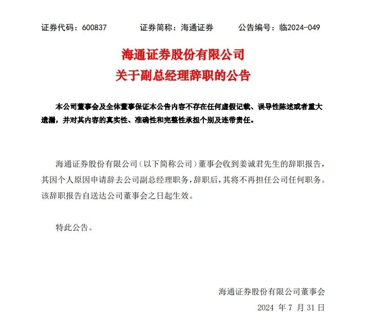 金融界8月1日消息 在“进去了”、“跑路了”等听说笼罩下,千亿券商海通证券遭遇“大地动”。 7月31日薄暮,海通证券忽然公告称,公司董事会收到姜诚君的辞职陈诉,其因个人缘故原由申请辞去公司副总司理职务,辞职后,其将不再继承公司任何职务。该辞职陈诉自送达公司董事会之日起收效。 姜诚君在海通证券内部职位不一样平常。在辞职之前,姜诚君历任海通证券董秘、海通证券副总司理、投资银行委员会党委书记,是海通证券投行业务的魂魄人物。 受消息刺激,海通证券低开0.6%,停止收盘海通证券报9元/股,下跌0.77%。 而在姜诚君失事之前,各种听说满天飞。31日日下午,有听说称海通证券副总进去了,并购和投行的老总也进去了,海通国际的副总从云南方境跑路了。据经观报道,姜诚君早在上周即被纪委监察部分带走观察。至迟在7月30日,海通证券公司发现已无法接洽到姜诚君。除姜诚君外,海通证券公司还有个别部分负责人在共同观察。好像,在肯定程度上印证了听说。 值得注意的是,7月18日,姜诚君以海通证券副总司理、投资银行委员会党委书记的身份露面,其出席了海通证券公司内部的“耿介文化作品展”。姜诚君在致辞中谈到,耿介从业是证券行业中一项至关告急的职业道德要求。增强新时代证券行业耿介文化建立,对于党员、干部正心修身,修养文化,永葆政治本色有着告急代价和现实意义。 别的,海通证券在公告中公告中完全没有对姜诚君的工作表现感谢或肯定,这与公司以往惯例形成了光显对比。在2023年12月,时任董事、董事会发展战略与ESG管理委员会委员的赵永刚辞职时,公告中用了洋洋洒洒的一大段话来歌颂其贡献。2023年9月,同样继承公司副总的李海超老师提交辞职陈诉后,公告中也明白表现了感谢之意。然而,在姜诚君的辞职公告中,却不见任何雷同的感谢或肯定之词。 这种冲破惯例的公告,不知道有何深意。 简历表现,姜诚君自1993年7月至1994年7月继承厦门国贸团体股份有限公司干部;1994年7月至2000年8月先后继承厦门国泰企业股份有限公司金融证券部副司理、投资管理与发展部司理、总司理助理、董事会秘书、副总司理;2000年8月至2023年3月在公司投资银行部、投资银行总部工作,先后继承投资银行部副总司理、投资银行部副总司理(主持工作)、投资银行部总司理、投资银行总部总司理;2017年3月至2023年6月继承公司总司理助理,2017年4月至2023年7月继承公司联席公司秘书、联席授权代表,2017年3月至2023年9月继承公司董事会秘书。 本年年初,姜诚君和其身在投行业务线曾收到羁系罚单。 据上交所1月29日披露,海通证券因其投行执业中的违规举动而收到两份罚单。此中一份罚单表现,海通证券及3位投行相干负责人被予以羁系发言、羁系警示等羁系步伐,此中时任保荐业务负责人姜诚君被上交所予以羁系警示。 该羁系步伐决定书表现,上交所经现场督导发现,海通证券存在首发保荐业务履职尽责明显不到位、投行质控内核部分未辨认项目庞大风险及对尽职观察把关不审慎等缺陷。有关责任人对公司上述举动负有责任,未能审慎勤勉执业。 上交所要求海通证券及有关责任人引以为戒,认真查找和整改题目,创建健全和严酷实行投行业务内控制度、工作流程和操纵规范,老实取信、勤勉尽责,切实提升投行业务质量,并严酷按照公司制度举行内部问责。 本年2月,在科创板排队中的科利德自动申请撤回IPO,在自动撤回上市申请后,海通证券被上交所转达批评。根据转达,科利德涉及研发人员数目存在收支、研发投入金额披露不正确、研发领料与其现实需求不匹配等多个造假题目。 4月30日,海通证券收到证监会《行政处罚决定书》。《行政处罚决定书》表现,海通证券在中核钛白案中,因协助中信中证明现不妥股票收益,这一举动违背了相干羁系规定,海通证券及相干方总计被罚没高出2.34亿元。 而在屡遭处罚的背后,海通证券投行业务的撤否率居高不下。作为保荐机构,海通证券年内共计保荐48家,自动撤回26家,撤回率为54.17%。 作为上海最大的证券公司,海通证券曾多年在国内前三大券商占据一席之地,但近两年,海通证券明显出现掉队迹象。2023年整年,海通证券实现业务收入229.53亿元,同比降落11.54%,净亏损3.11亿元,这也是近二十年来海通证券初次出现亏损状况。与此同时,近来三年以来海通证券投行净收入不断下滑。2021年—2023年海通证券投行净收入分别为49.25亿元、41.79亿元、38.3亿元。 |