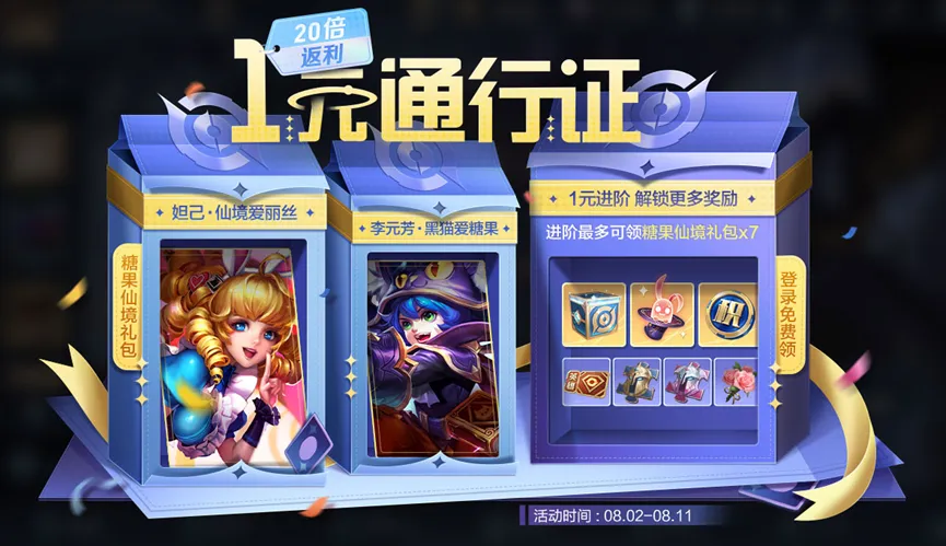8月2日至8月11日,为期10天的时间,玩家可以购买1元通行证,再通过每日登录的方式领取嘉奖。