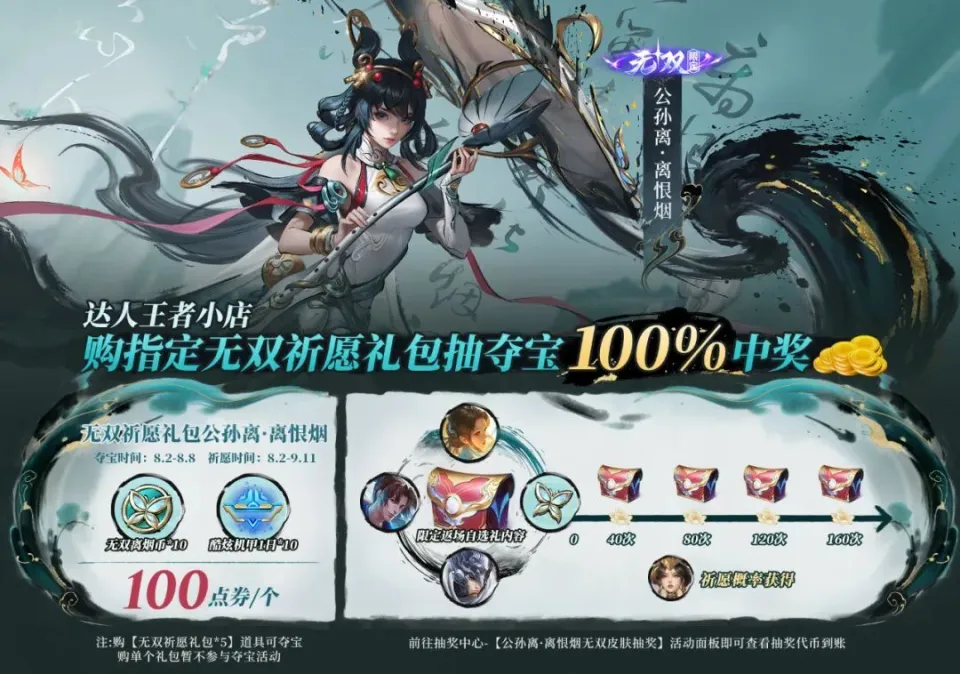 公孙离无双限定的“祈愿币礼包”,会在8月2日中午左右,定时上架到Poker店肆当中,同时,还会举行全面的升级,总共有两重福利。