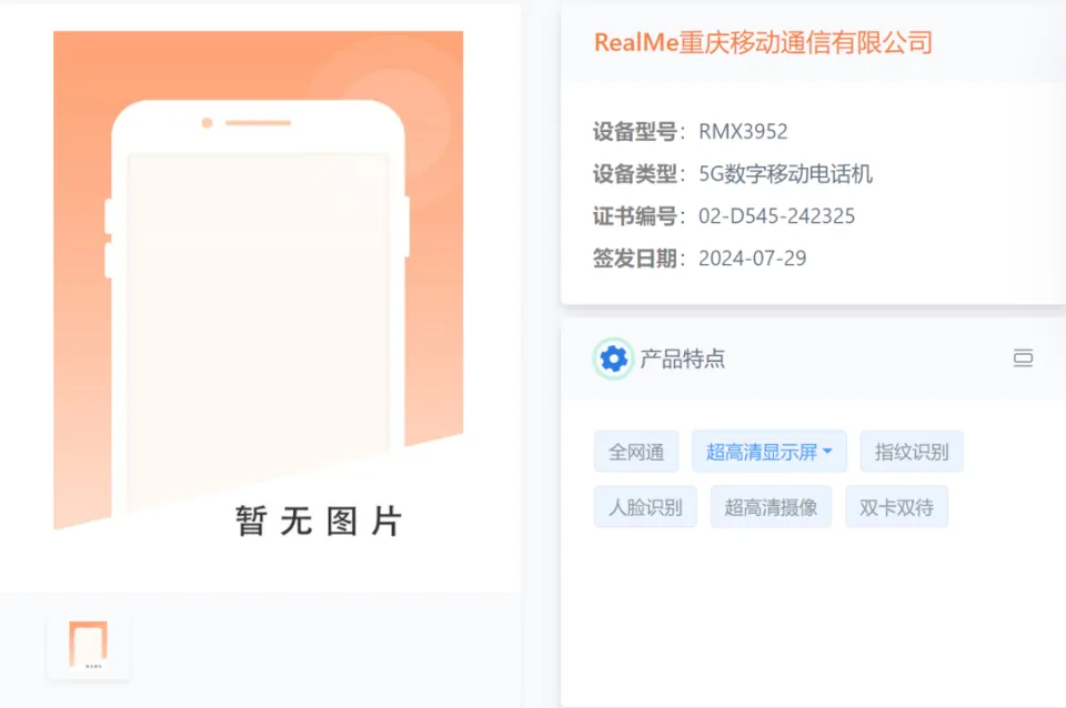 本年2月,realme真我举行了真我12 Pro系列新品发布会,正式发布了真我12 Pro和真我12 Pro+手机。如今,随着时间的推进,关于下一代真我数字系列的消息也一连出现了。日前,一款型号为RMX3952的新机现身电信装备终端