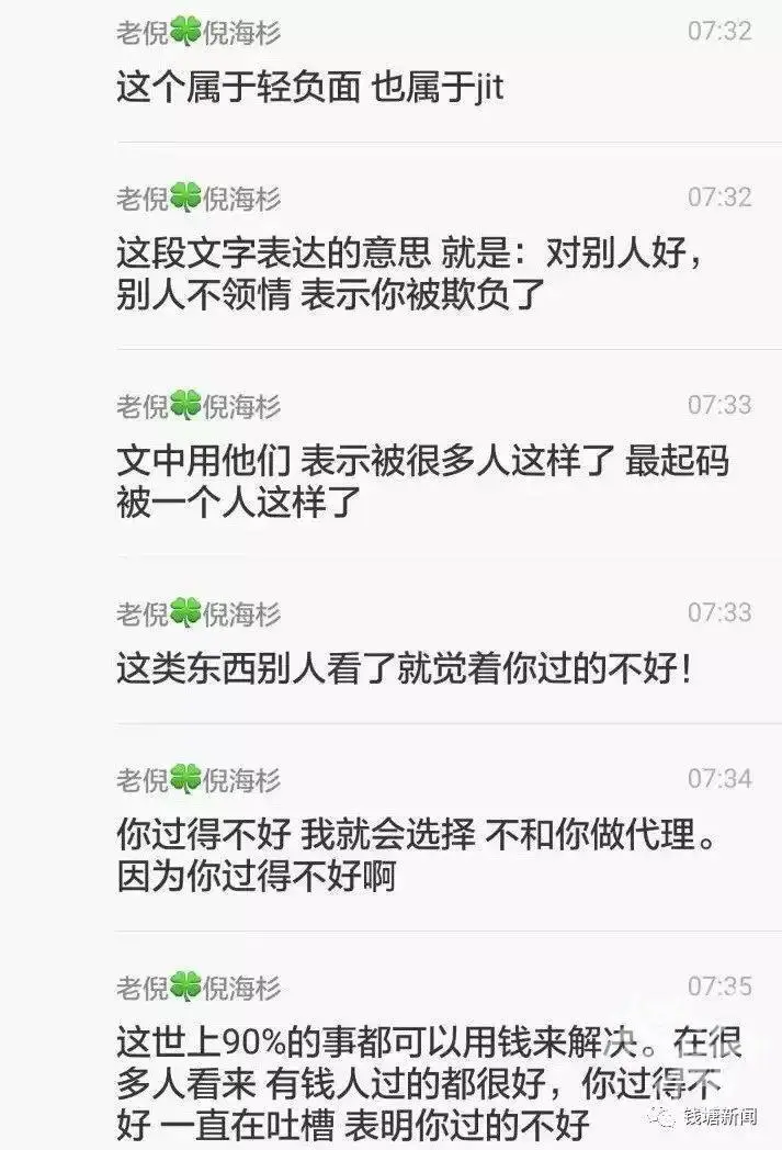 老倪凉凉了。很多媒体、自媒体以此作为标题。 8月5日,在抖音拥有1800多万粉丝的倪海杉账号被平台封禁,500万快手粉丝的账号同样没能幸免。 大概这一次他是真的凉凉了,但是对于他来说,凉凉可能就像他曾在直播中体现,“如果被封号,只能没事干,看着银行账户赚利钱。” 老倪是宁波象山人,85后,是橙柿互动记者的“老相识”。 人们对他的毁誉参半 ,有人视他为模范,底层“逆袭”乐成;有人以为他是个“街溜子”;也有人以为他是个“万万网红”,有知己的企业家、热心公益、豪迈质朴等正能量形象。 橙柿互动记者开始报道他是在2016年,他的公司在贩卖“老倪电极贴片”过程中,涉嫌虚假宣传、贩卖伪劣产物等,且涉案金额较大,案件被依法移送象山县公安局。 2016年,也是老倪走入公众视线的开局之年。象山老板一口吻买11台玛莎拉蒂夸奖员工,法拉利超跑车队进川藏,为良好署理送房100套,当众发厚厚的几捆现钞等等。 那一年,各大微商山头林立,朋侪圈越是高调的微商,通过发豪车现金,展示着他们的气力。 2017年年会,在履历假药风波后,他依然高调空降12辆兰博基尼,在年会上用来夸奖员工。 橙柿互动记者其时曾写了一篇起底微商老倪膏药暴富神话的稿子。 以后之后,老倪似乎沉寂下来,媒体报道上出现的多是一些关于他正能量的新闻。在抖音、快手等平台火爆,微商渐凉,他摇身一变,入主抖音,成为万万粉丝的网红。 很多网友称,是抖音成绩了老倪。究竟上,从他的白手发迹到如今,是互联网成绩了他。 当年微商凉凉,身陷假药风波,他未曾凉。如今他的抖音、快手账号凉凉,他是携势再起,照旧如他所说,看着银行帐户赚利钱呢? 附2018年我写的:起底微商老倪膏药暴富神话。 倪海杉,老倪膏药老板,站在鄞州体育馆正中央的舞台上,给12个业绩贩卖最多的人颁奖,每人一辆兰博基尼。握手的时候,他微微侧着身子,脸上的笑脸自持又蕴藉。 两年半前,他还在本身的微信公众号“老倪膏药”上,扯着嗓子喊:参加老倪团队,卖老倪膏药。 两年前,老倪膏药2015年年会,他豪送员工11辆玛莎拉蒂,一下而成“网红”,随之而来的,是他的产物被投诉,本地市场监视管理部门介入观察,查明“老倪”涉嫌虚假宣传,属于假冒注册商标,开出80万罚单。 老倪本身操刀写了一篇 100000+的原创,1、2、3……共9条声明反驳本地官方认定的老倪膏药是假药一事。 一晃到了2018年1月22日,一条消息又刷了朋侪圈:宁波某土豪公司空降12辆兰博基尼,在年会上用来夸奖员工! 这家公司,照旧老倪,他还在卖膏药吗?卖膏药这么赢利?是不是假药? 高调的年会 亢奋的微商 尤物,香车。 1月22日,隆冬的日子里,路上的行人纷纷裹紧身上的大衣,把脖子缩在毛茸茸的围巾中。在鄞州体育馆北门,却是另一番情形:一群群的男女,形成一个个的小圈子,他们都身着艳服,此中有不少漂亮的女子,只着长裙,露着香肩和玉臂,听凭北风浸入皮肤。 最惹眼的是一旁停泊的三辆极新的兰博基尼,玉人们纷纷摆出最刺眼的姿势与之合影。 这里要召开的是老倪膏药的年末晚会,打出的宣传语是——2018年1月22日,顶峰聚首,荣耀予倪。 门口,一块竖立的巨大广告牌下,流水一样不停盛着装照相的团队和个人。台阶上,数十人以致上百人的团队,浓装艳裹,高举着本身团队名字的横幅,高声欢呼,构成一幅幅被相机定格的照片。 邻近下战书5点,体育馆外的人流才渐渐希罕,这些从五湖四海赶来的微商们出示手中的约请函,纷纷进到体育馆里。此时,可容纳3000人的馆内,早已经人山人海。 老倪,倪海杉坐在舞台下面的第一排,身穿一件白色衬衫,外衣一件洋装,戴着一副眼镜,方字脸,和两年前的微信推广产物的稚嫩和论战媒体的冲动相比,他显得斯文不少。 款项、玉人、职位和履历,这个象山85后小伙子,变得像个“大人物”了。这一点,尤其可以从他将手中象征兰博基尼的车模交给员工时看得出来。 台下的人疯狂喊:老倪,老倪! 台上的人泪光盈盈:贵人,贵人! 他的心情极好,微侧着身子,眼光注视观众席,脸上的笑脸自持又蕴藉。交代兰博基尼后,松手,侧过身子。全部人眼中的豪车,在他眼中,就是一件平凡的物品。 获得豪车的人,曾经也黑白常平凡的人! 周鲜味,聚美团队首创人。她冲动地说,她爸妈去世早,“我如许的草根族,如今可以或许出国观光,拥有天下级跑车。我可以,你们也可以!” 曾文婷,有爱团队首创人,说本身做老倪短短2年,曾经5000元月薪的人,如今到达了月薪50万。 任丹亚,丫丫团队首创人,称本身曾经是一个一无全部的宝妈,说遇到老倪后,实现了太多太多的惊喜。 丁桂明,从当初卖出一盒膏药到万万业绩,他说,本身用了两年,最简单的原理是信任,信任老倪信任团队。 …… 12位劳绩兰博基尼的获奖员工,每一个都向导本身的团队创造了万万业绩。从她们的脸上,只管是风雅的妆容,但仍然可以或许看出草根的陈迹,险些都是冲动地流着泪向场上全部的微商分享本身简单的履历和未来,用极具勾引力的声音大呼,“我可以,你们也可以!” 从下战书5点开始的老倪2018年会连续了近4个小时。中央,没有人离场,会场,也没有供应饮食,但是,不管台上台下,高兴之情溢于每个人的脸上。 功效神奇 包治百病? 究竟上,那次涉假风波后,老倪已经把公司移到了贵州雷山,那里,有他的一个生产公司,雷山老倪青钱柳开发有限公司,但是,法定代表人叫毛美火。 从