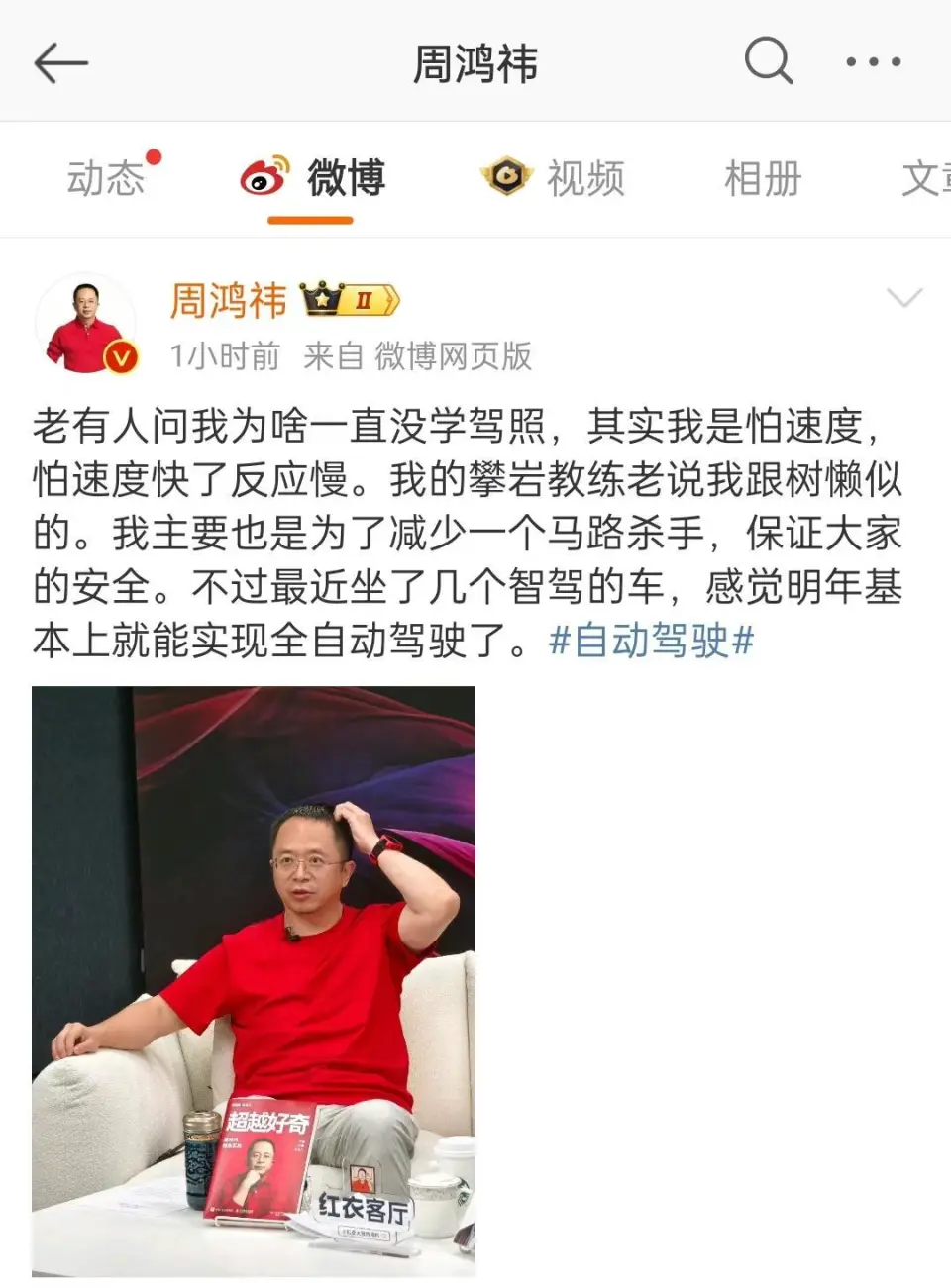 三言科技 8月8日消息,本日晚间,周鸿祎微博发文回应“为什么不绝没学驾照”。周鸿祎表现:“实在我是怕速率,怕速率快了反应慢。我的攀岩锻练老说我跟树懒似的。我重要也是为了淘汰一个马路杀手,包管大家的安全。不外迩来坐了几个智驾的车,感觉来岁根本上就能实现全自动驾驶了。” |