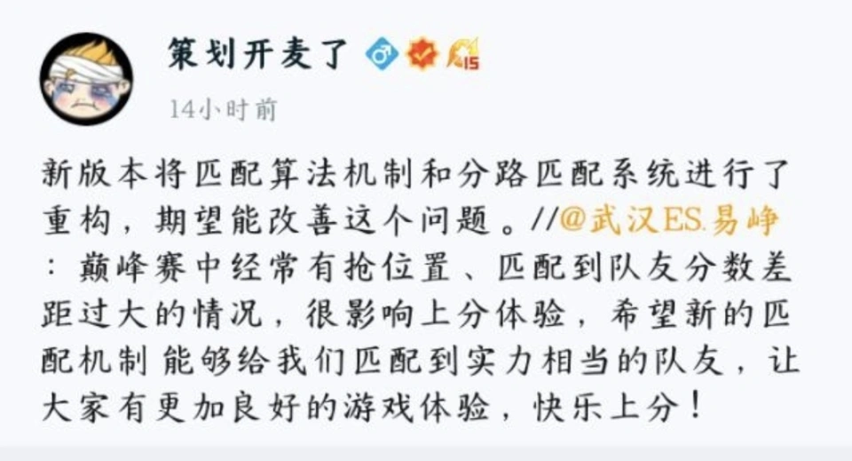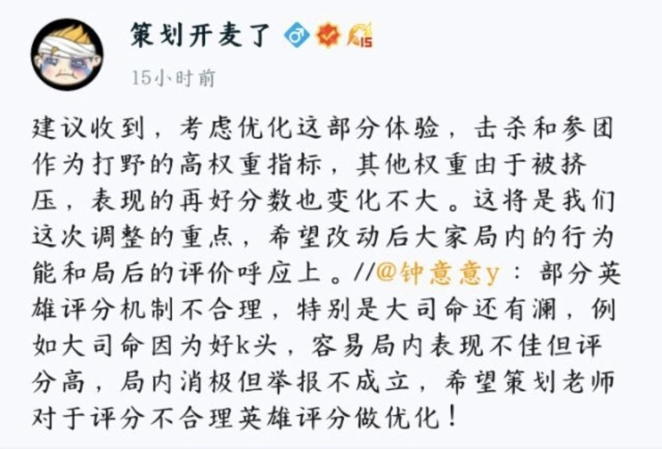 本来以为,匹配机制针对的是平凡玩家,由于平凡玩家的力气并不是很强。但是,没有想到,KPL的职业选手,竟然也是匹配机制的受益者。在迩来的“策划开麦了”中,AG超玩会的钟意,和eStar的易峥,就提出了他们在打游戏中遇到的题目,策划表示,会重点调解! 我们来看看,钟意提出了什么题目!钟意表示:部分好汉评分机制不公道,特别是大司命和澜,比如大司命由于好K头,容易局内表现不佳但评分高,局内悲观但举报不成立,渴望策划对不公道好汉评分做优化! 策划表示:优化这部分体验,击杀和参团作为打野的高权重指标,其他权重由于被挤压,表现得再好粉丝也变革不大。这是策划这次调解的重点,渴望调解后各人局内的举动能和局后的评价呼应上。 易峥的题目,大概是各人寻常排位赛中,都经常遇到过的。易峥表示:顶峰赛中经常有抢位置,匹配到队友分数差距过大的情况,很影响上分体验,渴望新的匹配机制可以大概给我们匹配到力气相当的队友,让各人有更加精良的游戏体验,快乐上分! 策划表示:新版本将匹配算法机制和分路匹配体系举行了重构,渴望能改善这个题目!新版本,策划将会T0玩家匹配到T0玩家,T4匹配的是T4,不会出现T0和T4在一个池子里。因此,这个题目应该可以大概很好办理! 看来,KPL的职业选手,对于如今的匹配机制也是相当不满的,渴望策划可以大概渐渐的完满匹配机制。职业选手的需求和平凡玩家的需求,有一样的,肯定也有不一样的。平凡玩家的需求,尚有在BP上! 有玩家表示,BP过程快一点,每次都要等半天,干脆开局一次性禁完,别一个个禁。策划表示:这个发起引起了他们的器重,也在思量,能不能收缩禁用好汉的流程时间,让整个BP流程总时间有显着下降。 除了时间长的题目,尚有玩家提出,增长ban位,如今东皇张良都能放出来了,很影响游戏的体验。策划表示:正在思量在高段位增长ban位的方式,来满意这类玩家的需求。但同时也须要思量到对不同玩家是否会产生一些料想之外的影响! 从“策划开麦了”中我们可以清楚的看到,策划是想要把匹配机制完满的,让每一个玩家都能感受到游戏的快乐。对于这一次匹配机制的挑衅,各人是否等待呢? |