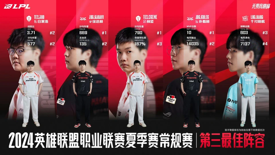 S14夏日赛常规赛的角逐全部竣事后,常规赛最佳阵容也在9号下战书正式公布,一起来看看效果是什么吧! 起首是常规赛MVP给到了TES打野Tian,而根据投票效果,常规赛MVP票数第二名的是BLG上单Bin,第三名是BLG中单Knight。从整个赛季表现来看,Tian拿到比力合理。 其次就是最佳阵容,一阵是上单bin,打野tian,中单Knight,下路Gala加meiko。BLG的上中,以及TES的野辅,再加上LNG的AD。 二阵是上单Zika,打野Tarzan,中单scout,下路JKL加ON。二阵紧张是LNG霸占了2个席位,TES和BLG各入选了一人,WBG这边Tarzan刚刚参加一个赛季就拿到了二阵的打野,是对他气力的最大承认。 三阵是上单369,打野kanavi,中单creme,下路Ruler加Hang。TES上中,加上JDG的双韩援,再加上LNG的辅助。 常规赛最佳新秀给到了FPX的打野milkyway,这个也是实至名归了。一方面是夏日赛milkyway在拿到野核打野时确实打得很好,发挥亮眼,另一方面也是夏日赛其他新人发挥不如人意。 从最佳阵容的人选来看,BLG这边三人入选,打野xun和下路ELK落第,TES这边五人全部入选,LNG则是4人入选,只有打野weiwei落第,然后WBG一人入选,JDG两人入选,一共有五支战队的选手获得了最佳阵容的承认。 不外每年的常规赛最佳阵容都会引发争议,本年也不破例。有网友质疑:BLG作为常规赛第一名,只有3人入选最佳阵容,LNG是常规赛第二名,有4人入选最佳阵容,TES只是常规赛第三,却有5人入选最佳阵容?TES全队都这么强,为什么只是常规赛第三?也有网友表示:常规赛MVP以为会在Bin和scout中选,没想到给了Tian。更有网友表示:为什么TES的辅助是一阵,AD只有二阵?固然也有人以为这次的评选效果很合理,符合大家在赛场上的表现。 那么,对于这次常规赛最佳阵容的效果,你们有什么想说的吗?欢迎在批评区留言探究。 |