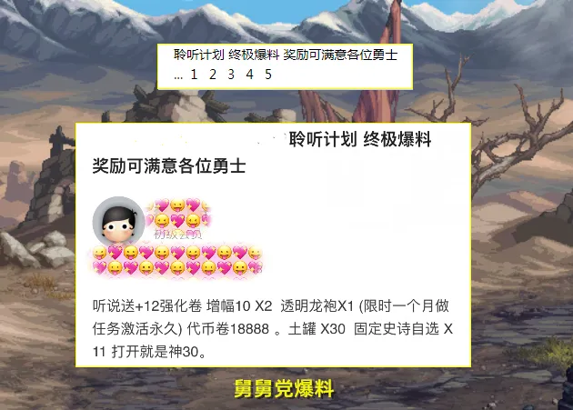 8.24“聆心计划”越来越邻近了,各人都翘首以盼,等待筹谋醒目实事,让“一潭死水”的端游可以再次抖擞第二春! 固然,每一次出“聆心计划”,总会给玩家送夸奖道具,这一次肯定也不破例! 而今出现了“娘舅党”,给各人爆料了“聆心计划”终极夸奖,紧张包含6大方面: 【1】送+12强化券。说句真话,+12装备强化券对各人来说,已经没什么诱惑力了,除非送+13强化券。 【2】2件+10增幅券。据“娘舅党”表示,本次“聆心计划”夸奖,具有2张+10装备增幅券。 +10装备增幅券,在目前的端游,代价也不是很大,属于“烂大街”的打造。 不外对一些玩家来说,可以用+10装备增幅券,来冲刺更高的增幅! 【3】1件透明神器装扮。不外这件透明神器装扮,获取的时间是有限期的,必要各人限时一个月做任务,解锁永久转换券,给变成无穷期! 从前用签到的方式,给各人送【稀有克隆装扮品格加强券】,必要累积肯定天数才气解锁。但这一次差别,直接送1件龙袍,虽说存在限期,不外完成限定任务,就能变成永久。 怎么说呢,两者实在目的划一,都能得到透明龙袍! 【4】送18888代币券。把代币券当夸奖,已经是端游的特点,各人根本会开魔盒,而这一次魔盒中,拥有玲珑徽章自选礼盒、云镜天3稀有装扮。 此中云镜天3可生意业务,要是真送了代币券,到时间代价也会下跌。 别的夏日礼包还没删除,也可以拿送的高兴代币券去买礼包,但必要自己补点才够。 【5】30个土罐魔盒。据“娘舅党”透露,不光送了代币券,还给了30个土罐的魔盒,那么对魔盒内产出的可生意业务道具影响照旧挺大的! 【6】固定史诗自选礼盒。“娘舅党”表示,本次“聆心计划”终极夸奖,还包罗固定史诗自选礼盒,当你打开后,就可以选择11件,且词条时“神30”。 对不必要的玩家,可以选取以后,拿来举行分解,能得到履历值,喂养身上的装备词条品级。 固然,对于这6大“聆心计划”终极夸奖道具,只是“娘舅党”爆料的。 看着实在还行,但实际上,也就那么回事,没什么“惊艳”的地方。 特别是对脸黑的玩家,+12装备强化券、+10增幅券拿得手以后,直接就碎了。而代币券和土罐魔盒,什么值钱的东西都开不出来,终极无事发生! 【竣事语】8.24“聆心计划”,肯定会送夸奖,但目前筹谋没爆料,各人都在分析当中。若正如“娘舅党”所言,会送+12强化券、2张+10增幅券、1件透明龙袍、18888高兴代币券、30土罐的魔盒、11件固定史诗装备,你以为怎么样呢? |