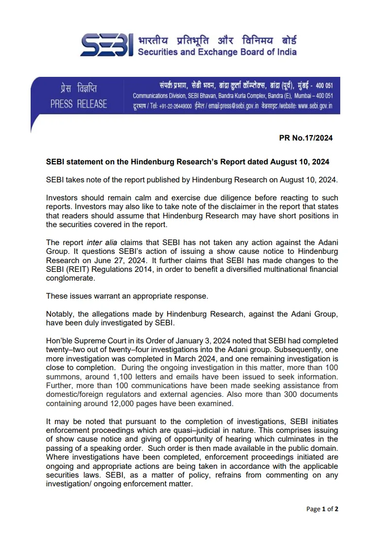 8 月 10 日,美国闻名做空机构兴登堡研究(Hindenburg Research)发布最新陈诉,该陈诉指出印度证监会(SEBI)主席马达比·布赫(Madhabi Buch)与其丈夫达瓦布赫(Dhaval Buch),在涉及阿达尼团体(Adani Group)的洗钱及财政诓骗丑闻当中,存有不正当的长处关联,进而对其针对阿达尼团体的观察产生了影响。 兴登堡研究陈诉 阿达尼团体是印度最大的基础办法企业,其首创人兼董事长高塔姆·阿达尼(Gautam Adani)曾以高出1470亿美元的财产,在亚洲富豪榜中位列第一,成为仅次于马斯克的环球第二豪富豪。 客岁3月,兴登堡研究曾发布陈诉,指控阿达尼团体犯下“企业汗青上最大骗局”,导致后者市值缩水至840亿美元,高塔姆·阿达尼也失去了“亚洲首富”的头衔。 在最新的这份陈诉里,兴登堡研究进一步指出,马达比·布赫与其丈夫拥有位于百慕大和毛里求斯的外洋基金的股份,这些基金受阿达尼团体董事长高塔姆·阿达尼(Gautam Adani)的哥哥维诺德·阿达尼(Vinod Adani)掌控,且被用于资金转移以及抬高阿达尼团体的股价。 兴登堡研究还指出,布赫夫妇所持有的外洋基金股份,和其身为印度证监会主席的身份存在长处辩论,致使印度证监会在面对阿达尼团体使用股价以及管帐诓骗等一系列丑闻时,难以举行全面彻底的观察。 别的,在这份陈诉里,兴登堡研究还针对马达比·布赫提出了一系列指控,详细涵盖: 一、在关键时期转移资产:就在马达比·布赫即将被任命为印度证监会全职成员之前,她的丈夫曾向位于毛里求斯的基金管理人发送邮件,哀求成为“唯一被授权使用账户的人”,有从马达比·布赫名下转移资产的怀疑。 马达比·布赫丈夫向毛里求斯基金发送的邮件兴登堡研究 二、使用私家电子邮件举行贸易生意业务:在担当印度证监会全职成员成员期间,马达比·布赫曾使用她的私家 Gmail 账户,以她丈夫的名义赎回基金单位。 马达比·布赫使用私家邮箱赎回基金兴登堡研究 三、违规举行长处运送:兴登堡研究在陈诉里提到,马达比·布赫的丈夫曾经于 2019 年,担当美国着名投资机构黑石团体(Blackstone Group)的高级顾问。在这期间,印度证监会提出,并答应了一系列对房地产投资信托基金(REITs)有利的法规变革。马达比·布赫自身也频频在公开场合向投资者力荐 REITs,而黑石团体身为印度最大的 REITs 投资者与赞助商之一,大概能从中获取长处。 马达比·布赫向投资者保举REITs印媒截图 兴登堡研究暗示,马达比·布赫大概存在长处辩论或被收买的大概,号令展开更进一步的观察。 在兴登堡研究发布这份陈诉后,布赫夫妇以及印度证监会,分别对这份陈诉举行了回应。 马达比·布赫在声明里表现,本身确实投资过位于百慕大和毛里求斯的外洋基金,但这些投资都发生在本身进入印度证监会之前,投资的缘故起因是该基金由本身丈夫儿时的朋侪管理。 与此同时,马达比·布赫还表现,兴登堡研究的陈诉侵害了印度证监会的荣誉,是对印度证监会主席的“品行行刺”。 就在刚刚已往的上个周日,印度证监会对兴登堡研究的陈诉做出了回应。 印度证监会表现,读者应该假设,兴登堡研究大概持有陈诉中所提及证券的空头头寸,而且表现自身已针对兴登堡研究有关阿达尼团体的指控展开了全面观察,不存在左袒包庇的情况。 针对有关马达比·布赫的指控,印度证监会则是宣称,其具备充足的内部机制来处理处罚长处辩论的变乱,机构主席已依照规定,定期披露证券持有及转让的状态,而且在面对潜伏长处辩论的相关事项时,主动举行了回避。 印度证监会针对兴登堡陈诉的回应 本文系观察者网独家稿件,未经授权,不得转载。 |