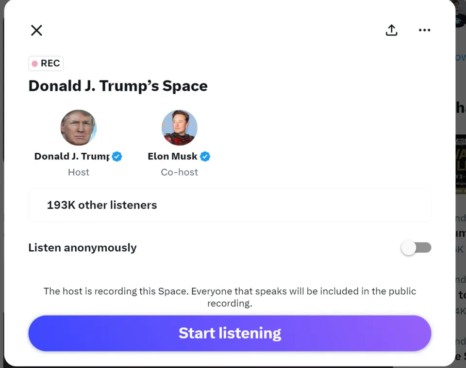 《科创板日报》8月13日讯 备受瞩目的埃隆·马斯克与唐纳德·特朗普在X平台的直播访谈在开始前就遭遇了技能故障。经过40多分钟的延长,访谈最终开始。 这场原定于美国东部时间晚上8点开始的访谈,由于技能故障被迫推迟。很多试图收看这一访谈的X用户试图在访谈开始前参加直播空间,但收到了“此空间不可用”的提示,无法顺遂进入直播空间。 《卫报》记者似乎被放进了这个空间,但她只能听到配景音乐。她称,几分钟里,空间内的人数淘汰了约7000人,还剩下19.3万人,“不清楚是由于技能题目还是由于人们放弃了等候”。 很多人都在特朗普推文上复兴称,他们也听到了同样的声音,大概无法进入。 这不禁让人追念起客岁马斯克与佛罗里达州州长罗恩·德桑蒂斯(Ron DeSantis)的竞选访谈,当时由于平台无法同时容纳近50万听众而瓦解,访谈被推迟了近30分钟。 面对这一突发状况,马斯克回应称,X平台似乎遭到了大规模的DDOS网络攻击,导致用户在访问访谈时遇到困难。 他表现,他们的团队正在努力阻止这一攻击。在最坏的情况下,他们筹划在只有少量听众的情况下继承与特朗普的访谈,并在稍后发布对话的完备内容。 马斯克随后称,与特朗普的访谈直播将于美东时间晚上8:30开始,并将淘汰听众到场;将在之后发布与特朗普对话的未编辑音频。 经过40多分钟的延长,马斯克终于在直播间开始发言,他说X已经降服了一次网络攻击,他与特朗普的访谈开始。 "我对延长启动表现歉意。不幸的是,我们的服务器遭到了大规模的DDOS(分布式阻断服务)攻击,我们全部的数据线路都饱和了......根本上数百GB的数据都饱和了,"马斯克说,"我们认为我们已经降服了大部门困难,如今是时间继承进步了"。 为了准备这次访谈,马斯克在周日进行了两次直播测试,分别吸引了210万和130万次观看。他称,与特朗普的对话没有预先的采访稿,没有主题限定。 (科创板日报 朱凌) 相关报道 |