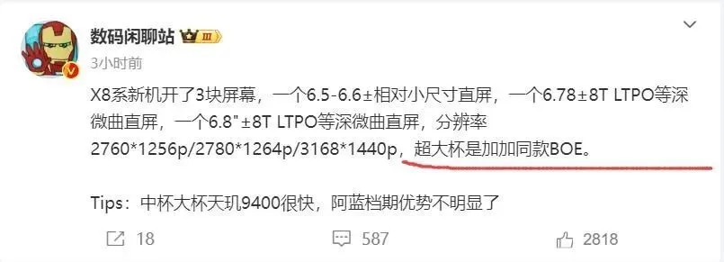 博主@数码闲聊站 爆料,OPPO 开案了 3 块屏幕,分别是 1.5K 小直屏、1.5K 等深微曲屏和 2K 等深微曲屏。 其中 2K 等深微曲屏将应用到 OPPO Find X8 Ultra 以及一加 13 上,由京东方提供。这块屏幕尺寸为 6.8 英寸,分辨率为 3168×1440,这是一加首款等深微曲屏机型。(泉源:快科技)