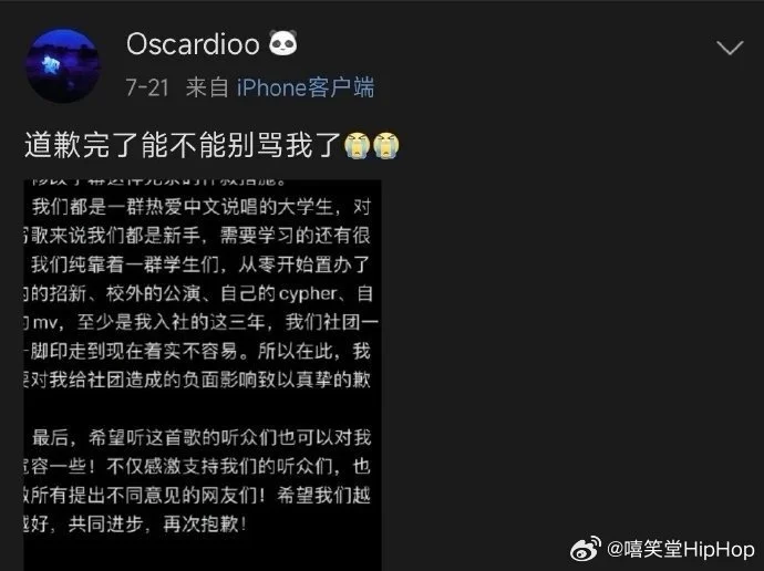 克日,上海大学说唱社团的Cypher歌词在网络上掀起了轩然大波,被指“暗讽农夫工”引发争议。据媒体报道,如今,当事Rapper体现致歉:只是为了更酷更帅更押韵。 变乱因由:一句歌词激起千层浪 cypher,指一个麦克风一群人接力用,一人一段每次一人的一种说唱形式。 齐备始于上海大学说唱社团的一段Cypher,此中一句“你们抢先恐后像农夫工讨要工资”,这句歌词,不仅在交际平台上敏捷发酵,在广大网民气中激起了强烈反响。 网友以为,农夫工群体,作为都会建立的主力军,他们辛劳付出,岑寂奉献,却被这段Cypher带有贬低意味的方式提及,一时间,责怪与声讨之声四起,社会各界纷纷呼吁恭敬农夫工权益,抵抗任何形式的鄙视。 上海大学cypher遭浩繁说唱歌手DISS反击 面对这场突如其来的风波,各大说唱歌手DISS反击,说唱应该歌颂底层,而不是搞阶层对立。 红中Redok发布了一首名为《本该为底层发声的说唱,却成了鄙视的武器》的DISS歌曲,在歌曲中痛斥:“说唱本应是为底层哗闹的气力,如今却沦为鄙视的工具,这是我们共同的羞耻。” 李百万也发布了自己的DISS作品,矛头直指上海大学Cypher作者。以一首《岂非你买的股票可以大概不绝涨,所以没“跌吗”》诘责对方,“每个人都有大概履历人生的升沉,农夫工的费力并非你想象中的低谷,他们的价值无需你以款子权衡。” 说唱圈内浩繁艺人纷纷表态,他们通过交际媒体、直播访谈等方式,对上海大学Cypher的不当言论予以谴责,夸大说唱艺术应当负担社会责任,通报正能量。 上海大学说唱社发布声明:涉事同砚开除说唱社 8月10日,上海大学说唱社官方账号发布了声明:已对涉事同砚举行了严肃处置处罚,对该名同砚所显现价值观的扭曲举行了强烈的谴责和批评。同时,社团内部也告竣共识,对该王谢生予以开除。将不再与该王谢生产生任何接洽或合作,对此类变乱接纳零容忍的态度。 社团对于本次变乱深表遗憾,也对于稽核疏忽及占用公共资源深表歉意,将罗致教导,加强稽核力度,严酷贯彻焦点价值观,同时更积极地投身于正能歌曲的创作! 当事Rapper体现致歉 网友:应该给农夫工致歉 如今,当事Rapper也体现致歉,该同砚称:只是为了更酷更帅更押韵。 但是对于该致歉,浩繁网友并不买账,不少网友称如许的致歉完全没有诚意,应该给农夫工致歉。 你怎么看上海大学说唱社团的Cypher一事? 综合大河报、洛视频、嘻笑堂HipHop等 相关报道 |