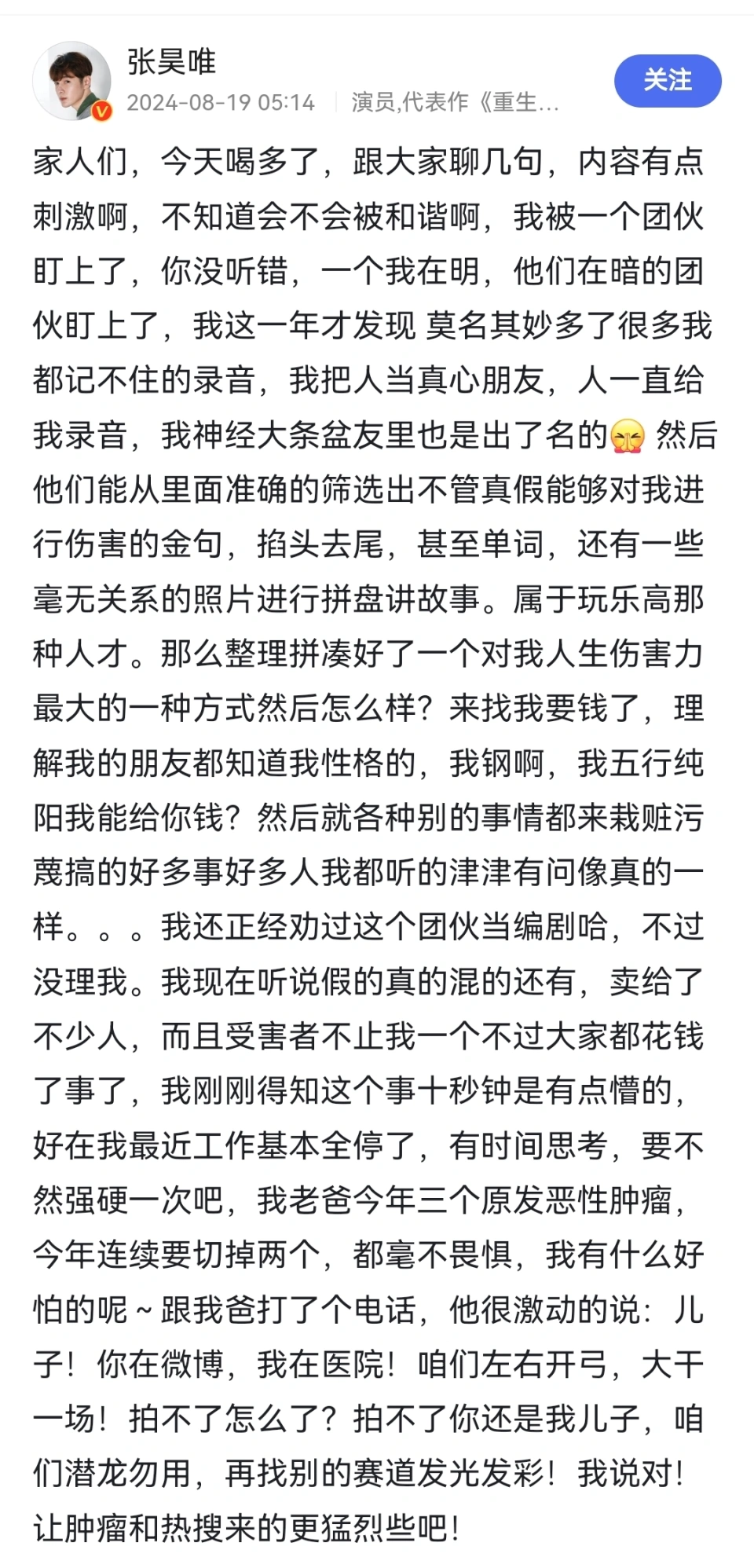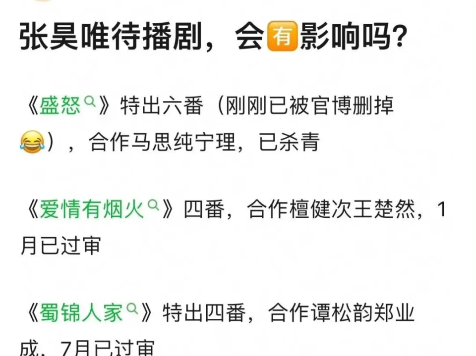 沉寂多时,内娱终于曝出塌房大瓜!此次变乱的主角正是热播剧《庆余年》的太子扮演者张昊唯,瓜料一出,网友火速开帖议论:认为他不但得罪了人,还连累了剧! 根据媒体的“第一视角”爆料,张昊唯不仅涉嫌税务题目,还大概参与欢场“猎艳”,先容老板跟自己的发小熟悉,还想做“妈咪”构造“天南地北的小姐”,这些黑料再度革新大众对于内娱208们的认知。 而在爆瓜之前,张昊唯曾在同日破晓曾发文回应过一些变乱,大概意思是他现在被一个团伙盯上了,谁人团伙不绝给他录音,然后断章取义掐头去尾地进行抹黑,还有一些毫无关系的照片进行拼盘讲故事,诓骗问他要钱。 自己倔强拒绝了,还称反正根本工作全停了。 还在文中提到,受害者不止他一个人,但是各人都费钱了事了。可见在娱乐圈涉及这种变乱的人还真是不少。 还有网友扒出张昊唯和宋轶是同一家经纪公司的,老板恰好也姓钱,网名叫钱多多,跟张昊唯谈天的话也对应上,现在钱老板已经注销了微博,好像是怕连累自己。 除此之外,张昊唯和白敬亭的关系也不错,白敬亭等人都曾和他一起打过篮球。而宋轶是白敬亭女友,这千丝万缕的关系。 就在曝瓜之后,张昊唯参演的剧集《盛放》方面立即做出办法,这部剧由马思纯主演,现在仍在拍摄阶段,尚未告竣。 早在该剧开机官宣时,张昊唯就作为特别出演参与。比及张昊唯登上热搜之后,本人还没任何回应,剧方就已经将其除名,现在再看,在特别出演的行列中,已经没有张昊唯的名字,就连张昊唯为该剧宣传的笔墨也被剧方删除干净。看来剧方站稳了冲浪第一线啊,脱手非常灵敏! 至于剩余的两部待播剧《爱情有烟火》和《蜀锦人家》,同样前程难料。其中,《爱情有烟火》是由檀健次和王楚然主演的都市爱情剧,张昊唯在剧中处于四番的位置,而且该剧早在去年7月就已告竣。 迟迟未上,现在恐怕更难上线了。网友表示这部脚本来定于10月上线,但现在来看估计遥遥无期。也有网友建议可以通过AI换脸来保命,但有人指出刘亦菲和井柏然主演的《一曲三笙》(《南烟斋笔录》)就是其中一位主演言论不当,导致该剧成为了积存剧。这也分析AI换脸并非万能,许多时间这些剧集只能是听天由命了。 克制现在来看,这两部待播剧也是纹丝不动,没有删帖,也没有把张昊唯从主演中踢出。不仅如此,《蜀锦人家》官方账号仍然保留着庆贺张昊唯生日的内容。 这也引发了剧粉的恐慌,担心剧方的不作为会导致剧集上线无望,于是,剧粉们纷纷气愤留言,求全谴责剧方毫无反应,要求剧方赶紧给张昊唯除名,或是进行AI换脸。 克制现在,内娱中两大阵营还在不停增长“新星”,虽有前车之鉴,但这些208们却不能引以为戒,轻松捞金百万,仍然想尽办法偷税漏税,或是沉湎于违背法律和公序良俗的举动,令人不齿!塌房的明星们用自己的实际办法敲响警钟,只要伸手,必被捉!还是不要心存侥幸,踏实为人,认真从艺吧! 本文未经授权严禁转载违者必究! |