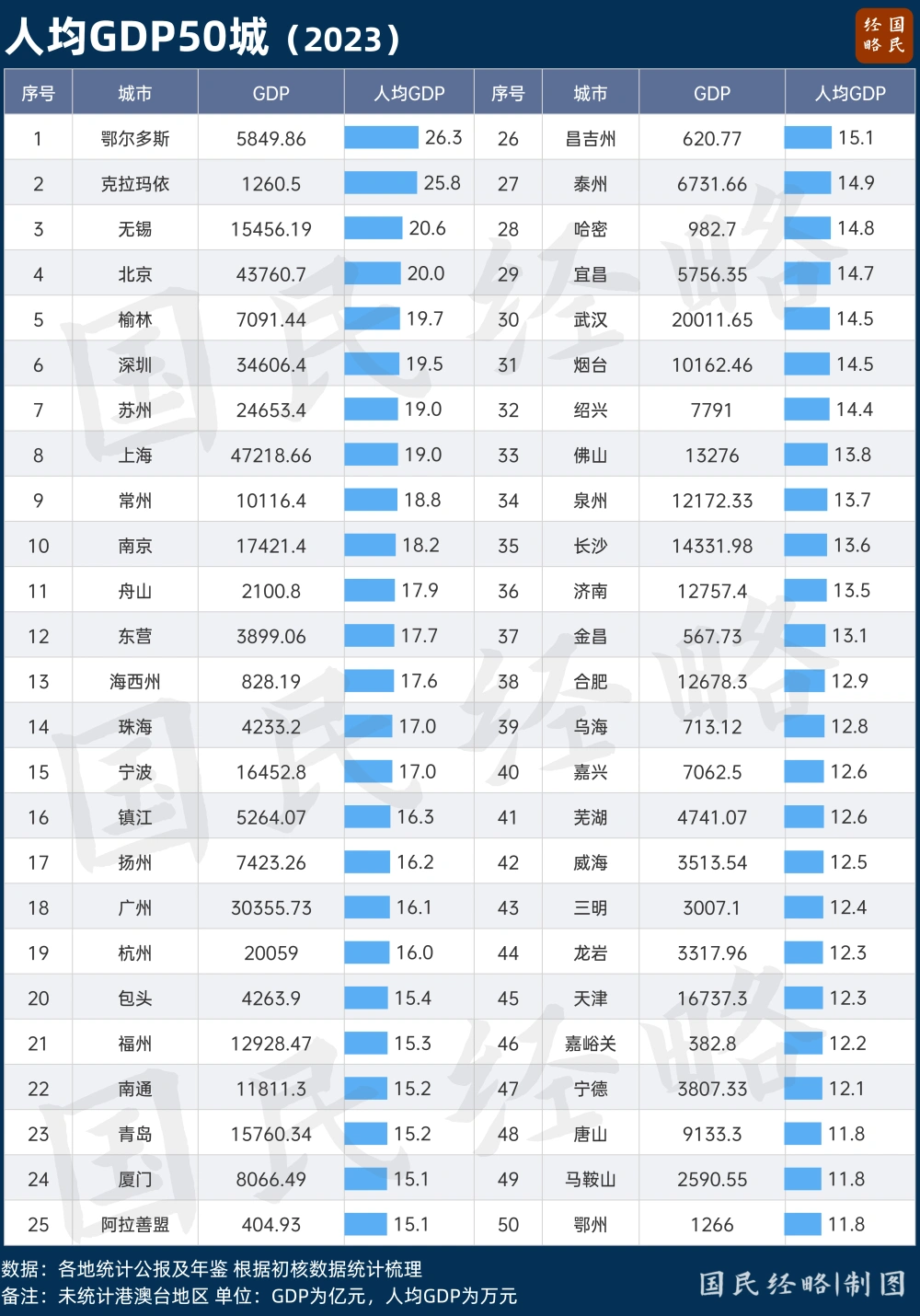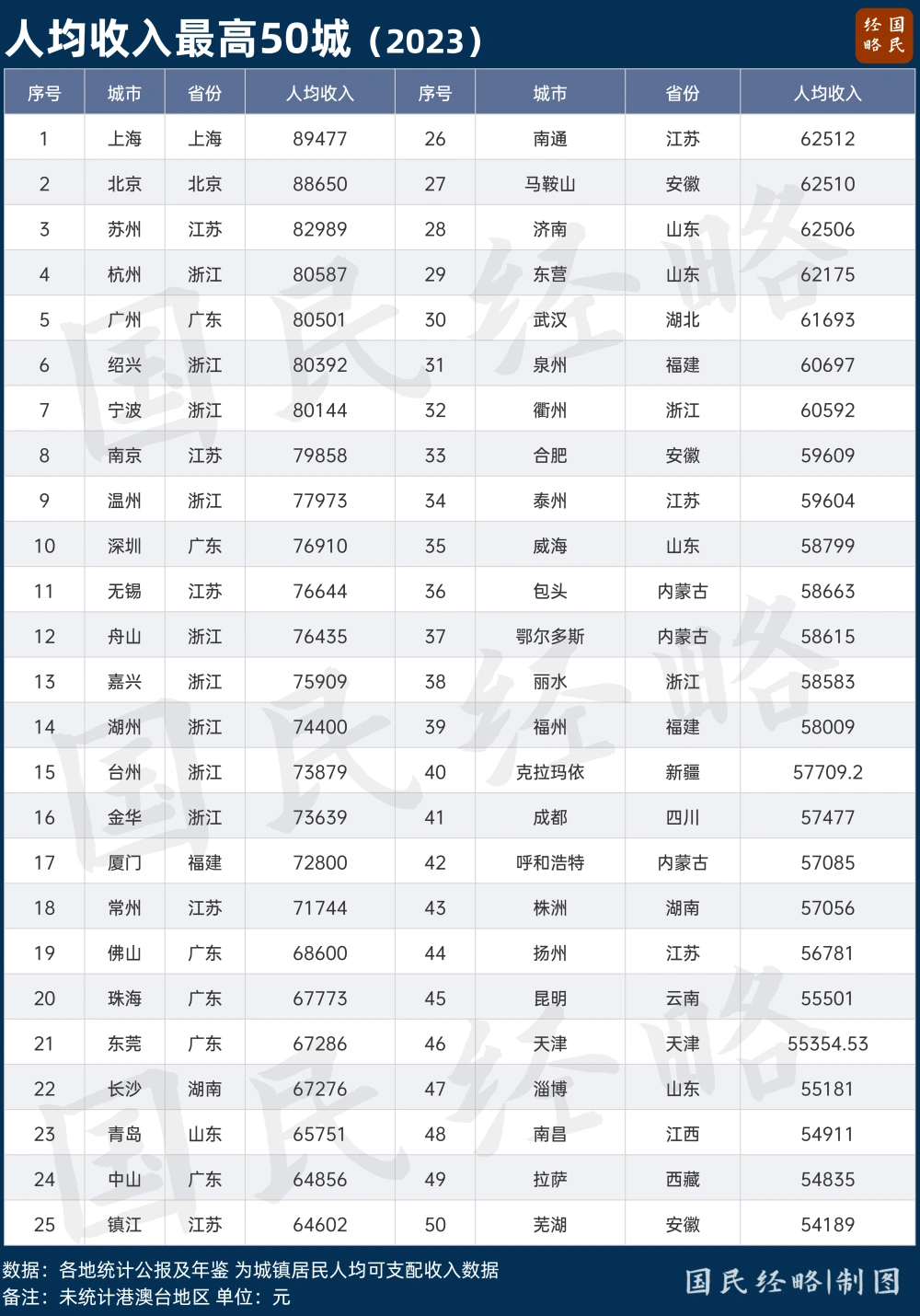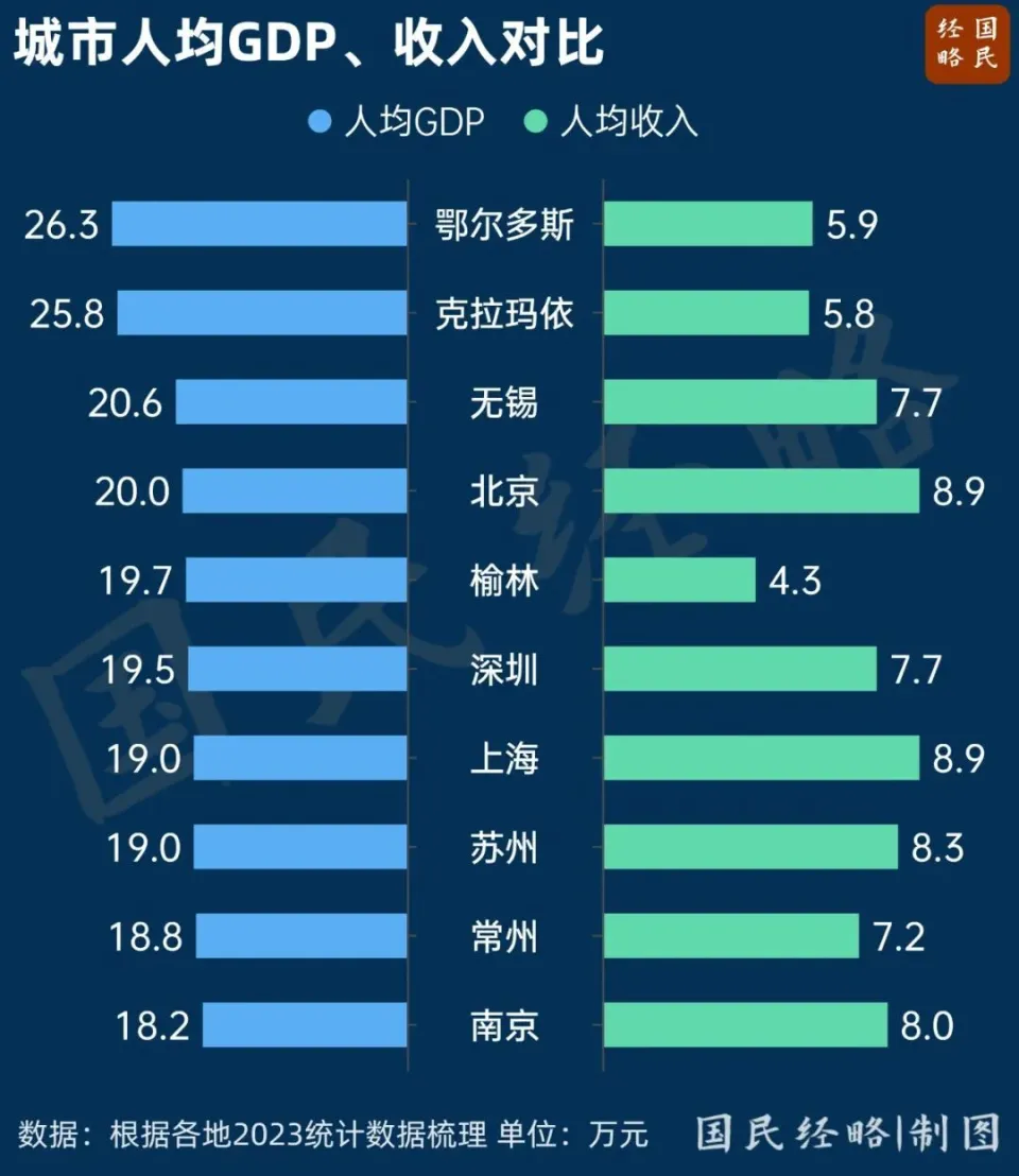 文|凯风 不以GDP论英雄,正在成为共识。 在GDP总量之外,人均GDP、人均收入的重要性愈发凸显,成为衡量都会综合竞争力的重要指标。 人均GDP,代表一座都会的经济产出服从,受到经济总量和生齿规模的双重影响;人均收入,则是一座都会每个住民的平均收入程度。 假如说人均GDP是“做蛋糕”,人均收入则是“分蛋糕”,而“分蛋糕”的不光是住民,另有当局和企业。 因此,GDP总量高的都会,人均GDP不愿定高;而人均GDP高的都会,人均收入不愿定高。 只有人均GDP、人均收入“双高”的都会,才是真正的“民富”之城。 01 谁是人均GDP最高的都会? 随着各地连续披露统计公报及常住生齿数据,内地都会人均GDP终于揭榜。 内地人均GDP十强都会分别是: 鄂尔多斯、克拉玛依、无锡、北京、榆林、深圳、苏州、上海、常州、南京。 从团体榜单来看,人均GDP最高的都会重要会合在东部沿海地域,而万亿级的中西部强省会排名相对靠后,与其GDP总量位次不相当。 但最令人不测的是,人均GDP最高的都会,不是北上广深,而是内蒙古的鄂尔多斯和新疆的克拉玛依,而十强都会里另有榆林的身影。 其一,三四线小城,人均GDP何以力压北上广深? 不光是鄂尔多斯、克拉玛依、榆林,人均GDP最高的30座都会里,还能看到山东东营、青海海西州、内蒙古包头、内蒙古阿拉善盟、新疆哈密等普通地市的身影。 这些地市,都有一个共同特点:家里有矿,生齿不多,资源生意业务量极为巨大,且坐享大宗商品代价暴涨的狂欢。 鄂尔多斯、榆林、阿拉善、哈密,都是当之无愧的“煤都”;克拉玛依和东营,则是石油都会,将“富得流油”解释得淋漓尽致,而包头是稀土之都、钢铁基地。 不过,资源型都会的经济,容易受到环球商品周期颠簸的影响,而资源更存在“坐吃山空”的风险。 东北的鹤岗、双鸭山、阜新等资源枯竭型都会,都是前车可鉴。 其二,成都、重庆、郑州、西安的人均GDP,为何不及沿海的普通地级市? 成都、重庆都是GDP十强都会,重庆经济总量与广州中分秋色,但人均GDP却只有广州的6成,乃至不及浙江舟山、江苏泰州等普通地级市。 单看人均GDP,郑州、成都均已高出10万元,排在70名左右;而重庆、西安高出9万元,排在90名左右。 究其缘故原由,中国的都会,更多是行政区划的概念,既有城区,也有大量县域、乡村,一些都会面积动辄数万平方公里、生齿两三万万人。 比年来,一众省会不停归并周边地市,都会面积越来越大,生齿越来越多,GDP总量自然就容易水涨船高。(参阅《这些省会的扩容归并梦,彻底没戏了》) 然而,人均GDP的提升却非一日之功,在以人均论英雄的时代,一些强省会的经济含金量有待提升。 可见,只要不停吞并归并,或诉诸于大投资,做大经济总量不难,但要做大人均GDP,要么拼资源,要么只能拼创新本事。 02 谁是人均收入最高的都会? 与人均GDP相比,城镇住民人均可支配收入更适互助为衡量“民富”的指标。 GDP总量由当局税收、企业盈余和劳动者报酬构成,属于住民收入的只是劳动者报酬及转移性付出这一部门。 所谓人均可支配收入,指的是可以或许自由支配的收入,即扣除五险一金、个税之后的得手收入,既包括工资性收入,也包括财产性收入,以及养老金、扶助资金等转移性收入。 一样平常而言,人均GDP明显高于人均收入,我国住民人均可支配收入与人均GDP之比为43.8%。 这是我国城镇住民人均可支配收入最高的都会: 可以看到,中国内地城镇住民人均可支配收入最高的10座都会: 上海、北京、苏州、杭州、广州、绍兴、宁波、南京、温州、深圳。 而从前20都会来看,所有入围者都来自于东部地域,以江苏、浙江、广东为最,不光资源型都会不见了身影,一些人均GDP居前的中小都会,也失去了存在感。 其一,鄂尔多斯、克拉玛依等资源型都会,人均收入排在30名开外,远低于人均GDP排名。 一些资源型都会靠着采矿业迅速做大税收和GDP,但矿产创造的收入,更多表如今当局税收和企业利润层面,能惠及普通劳动者的部门相对有限。 这就导致资源型都会人均收入与人均GDP出现大幅背离,人均收入仅占人均GDP的20%左右,而东部大多数都会都在40%左右。 固然,家里有矿,财政充盈,并非不能让天下市民共同受益。地处榆林的神木市,成了全民免费医疗的先行者,依仗的正是煤炭创造的巨大财税。 有钱好服务。充沛的财力完全可以转化为招商引资的动力,当无数都会为地方债务困扰之际,资源型都会反而有了异军突起的大概。 其二,GDP总量领先的中西部强省会,人均收入再次不及沿海普通地级市。 从城镇住民人均可支配收入来看,成都排在40名左右,重庆、西安、郑州则位列50名之外。 与之对比,沿海地域的浙江绍兴跻身前十,广东珠海跻身前20,而GDP总量乃至排在百强之外的浙江舟山也跻身20强之列。 以是,东部一些普通地级市,固然GDP总量大概不及强省会,但在人均收入上却遥遥领先,这或是民富的表现。 03 谁是真正的民富之城? 人均GDP、人均收入双高的都会,才气称得上“民富”之城。 综合两大人均榜单来看,人均GDP、人均收入双双跻身20强的都会只有10个: 北京、上海、广州、深圳、苏州、杭州、南京、宁波、常州、珠海。 这些都会全部位居东部地域,除了京沪两大直辖市外,会合在广东、江苏、浙江三省,资源型都会都不在其列。 第一个结论,苏浙地域发展相对平衡,无论是省会照旧普通地级市,人均GDP、人