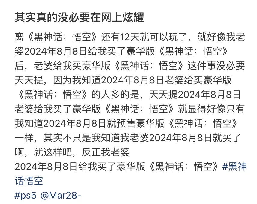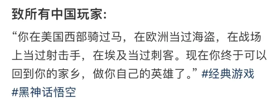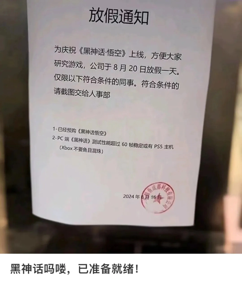 文/章鱼 凯斯 编辑/闫如意 已往两天最大的热门,大概就是《黑神话:悟空》。 不管你是不是游戏玩家,只要打开互联网,就会发现: 我被《黑神话》困绕了。 “糟糕,我被黑神话困绕了”在黑神话出现之前,谁都没想到:围绕一款游戏,也可以延伸出这么多条藐视链。 开始出圈的就是打工藐视链。 8月20号上午10点整,《黑神话:悟空》正式开服。 开服前一天,放假梗就在全网爆火。 谁的公司没通知越日放假,谁的老板没给员工买《黑神话:悟空》,谁就在游戏开始前输了士气。 固然网传的每张放假通知上的公章,都糊到无法核实它是否真实存在。但很显然,拥有一个支持全司员工居家或在岗玩黑神话的公司,是全网的心愿。 公司不宴客玩游戏也没事,答应员工告假就行。 黑神话玩家饰演的脚色,被称为“天命人”。 在假条事由一栏里,写下“直面天命”的暗号,趁便诈出稽核的主管是同好。 大概这就是吗喽在初秋碰到最动人的时候。 固然,不是所有的吗喽都能在第一时间成为天命人。 有些打工人在递交告假申请之后,收到的公司极富情面味的复兴:要求查察个人steam购买记录,内无《黑神话:悟空》则可准假。 请不到假也无妨,想要彰显天命人的高贵另有别的方式。 刚刚已往的七夕,有伴侣的男性大概率都收到了同一款礼品。 而他们的夸耀话术无比统一。 把“老婆给买了黑神话,豪华版”,变着法重复10086次,气力演绎《娇夫的爱》。 售价328的豪华版黑神话,不愧是“男子的LV”。 《黑神话:悟空》刚公布售价的时候,围绕它贵不贵的讨论就曾上过热搜。 268可以拿下标准版,328就能买到豪华版。限量2万份的实体铁盒820起步,限量1万份的收藏版售价1998。 开售后,3万套黑神话实体收藏版1分钟售罄。仅仅几个小时《黑神话:悟空》就登顶Steam国区销量排行榜。 但《黑神话:悟空》的售价,实在不敷以构成一条藐视链。真正昂贵的地方在于: 黑神话是个单机游戏,对设备的配置要求极高。 光是PC版的游戏包就有118G,PS5版的体量也高达104G。 假如不提前下载,就想在开服当天上午开玩,那险些是不大概的。 光是下载时长,都得大于500年。 早早决定周二“突发恶疾”,直面天命的同事凯斯,就碰到了自己的第一难: 硬盘空间不敷用。 在履历相识压难、下载慢、游戏掉帧后,最终决定转战PS5。 这跟此前在网络上广为传播的黑神话设备藐视链显然差别。 唯一可以肯定的是,假如你计划送伴侣黑神话讨他欢心,那肯定不要忘记检查对方的设备。 否则,这300多块的游戏购置费用,极有大概成为对方申请更新设备大额付出的绝佳来由。 不玩游戏的朋侪,同样可以到场到这场狂欢中。 文化区的博主们,早就基于《黑神话:悟空》对西游天下举行重新解读。 这些解读充满了浓浓的班味儿。简朴来讲: 西天取经是个项目。观音菩萨是项目司理,八十一难全靠提前筹谋。孙悟空的发展史,就是一个技能骨干“篡位”团队向导、争取团队实际控制权的进步史。 你在公司见过的,在西游里也能见到;你在公司没见过的,在西游宇宙也能见到。 博主们对西游的重新解读复杂又酸楚。 他们刀刀见血地指出了西游宇宙和黑神话玩家的共同之处,那就是: 猛然回顾,天命人全在打工。 《黑神话:悟空》,到底有多出圈?早在本年4月份,外洋网友就开始恶补西游知识。 来由很简朴,想要玩转黑神话。 《西游记》电视剧的外洋播放量,已经靠近400万次。 可由于游戏中含有大量文言文诗词,很难被完全英译。 当外国玩家看到yaoguai king和shigandang时,还是免不了一头雾水。 不外,这丝毫没有打击到外国玩家成为天命人的热情。 8月16日晚,《黑神话:悟空》媒体评测解禁,52家环球媒体打出了82分的均分。 昨晚,Steam平台的黑神话同时在线玩家突破220万,登顶Steam热玩榜。 与此同时,《黑神话:悟空》在Steam美区销量,也稳居第一。 作为中国首部3A游戏,黑神话在环球都红得发紫。 所谓3A游戏,就是指投入a lot of money(大量的金钱)、a lot of resources(大量的资源)、a lot of time(大量的时间)制作的游戏。 黑神话之前,中国拥有天下第一大游戏市场和最有钱的游戏公司,却没有真正在环球被称之为3A游戏大作的产物。 黑神话的横空出世弥补了这一空缺,同时带来一种极致的浪漫主义叙事。 一封名为《致所有中国玩家》的信中如许写道: “你在美国西部骑过马,在欧洲当过海盗,在战场被骗过射击手,在埃及当过刺客。” “现在你终于可以回到你的故乡,做你自己的好汉了。” 高成本、大制作、好口碑、好时机,给黑神话带来的收益也很可观。 截止昨晚8点,上线仅10个小时,《黑神话》在全网总销量已经凌驾450万份,贩卖额超15亿。 《黑神话:悟空》乃至影响了A股。 早在6月《黑神话:悟空》开启预售时,出书方浙版传媒就已盘中触及涨停。8月19日,华谊兄弟触及20%涨停,浙版传媒、富春股份一度涨超5%。 到了昨天,事变愈发开始抽象。 昨天午后,山西高速涨停,西藏天路、东土科技、云里物里纷纷大涨。 对此,网友们的表明是:《黑神话》取景地在山西,山西景点过于分散必要自驾,利好山西高速;西藏天路是《黑神话》的取经门路;东土科技是取经的出发地;而云里物里,大概是跟筋斗云搭上了边…… 乃至在黑神话正式开服之前,瑞幸的黑神话联名咖啡就已天下断货。 网传瑞幸CGO在朋侪圈称瑞幸差点系统瓦解。 1个黑神话比10个父亲节的购买力还要