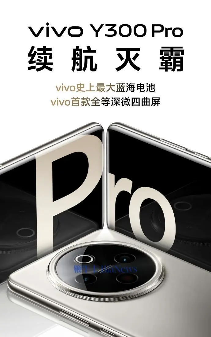 鞭牛士 8月28日消息,vivo官方本日公布vivo Y300 Pro手机将于9月5日晚七点发布,官方称其为“续航灭霸”,搭载vivo史上最大蓝海电池,是vivo首款全等深微四曲屏。 续航方面,新机接纳最新的vivo蓝海电池技能,首发6500mAh超级电池,号称满电游戏时间达12.1小时,电池耐用5年,快充达80W,可反向充电。 屏幕方面,新机首发vivo的6.77英寸全等深微四曲屏,最高屏幕亮度为5000nit。 影像方面,新机后置相机搭载5000万像素镜头,前置3200万像素美颜人像镜头。后置镜头模组接纳玉环计划,360度太阳纹理。 |