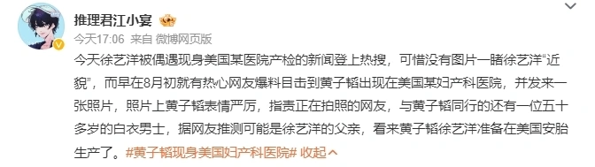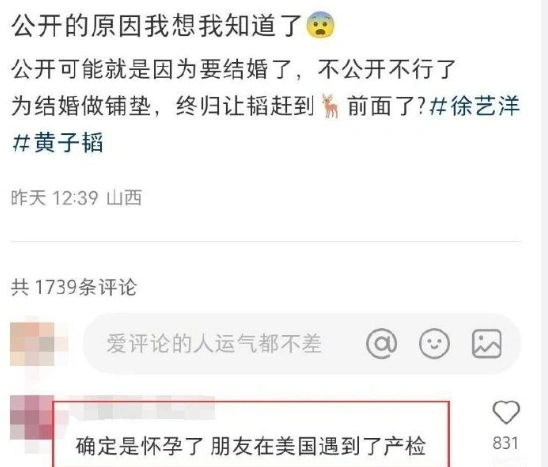近来,集结了黄子韬、徐艺洋、徐志胜以及那英等明星的真人秀《跟我走吧》正式收官,虽然号称“旅行类综艺”,但是活脱脱是黄子韬和徐艺洋的爱情综艺。两人在节目中完全不避嫌密切互动,更是借着节目高调官宣恋情,而且在收官中策划了盛大的求婚仪式,相称炸裂。 要知道,黄子韬和徐艺洋此前多次被拍到单独约会,但是两人就是不肯认可恋情,黄子韬更是多次直播辟谣,导致大量相信他的粉丝极力维护,谁知最后小丑成了粉丝本身。而在《跟我走吧》播出前期,黄子韬还在没有官宣的情况下,和徐艺洋不可一世秀恩爱,可谓是完全掉臂粉丝的死活。 都说“米已成炊”,随着黄子韬求婚徐艺洋的视频正式曝光,两人情侣的身份已经坐实。而且黄子韬在节目中说漏嘴,直言本身已经瞒了两年了,显然他和徐艺洋爱情至少已经两年。也就是说之前被拍到后,黄子韬的辟谣都是谎言,此前流出的求婚照也都是真实的。 本以为到了这里,黄子韬和徐艺洋这场众所周知的爱情闹剧终于要告一段落了,谁知忽然徐艺洋被曝怀孕,刹时黄子韬奉子完婚的浮名四起。对比早早官宣恋情的关晓彤,7年已往还未与关晓彤领证,但是黄子韬只用了一年就从官宣恋情、求婚到喜当爹,这速率简直不要太快。 按照网友的爆料,他自称在美国妇产科医院偶遇了徐艺洋,而且明白表现本身和徐艺洋很大概是同一个产检大夫,肯定徐艺洋也怀孕了。说真话,黄子韬已经30多岁,和徐艺洋已经爱情两年,现在才官宣恋情,紧接着就是求婚,很多人以为他至少会在婚礼后才会要孩子。 但是现在两人还未举行婚礼,徐艺洋就传出了怀孕的消息,不由得让人以为黄子韬直接从爱情快进到求婚,是不是由于怀孕才云云快速的奉子完婚?对于徐艺洋被曝怀孕产检,黄子韬和徐艺洋并没有回应,再加上日前两人以及其两边父母被拍到全员现身美国,网友爆料的可信度照旧有的。 继网友爆料后,某着名狗仔也发文称“着实早在8月初,就有热心网友透露在美国某妇产科医院偶遇了黄子韬,疑似在帮徐艺洋找产检医院,偕行的还有一位中年夫君,好像是徐艺洋的父亲”,而且发去了一张照片,内里清楚拍到了一身玄色穿搭的黄子韬。 通过照片可以看到,当天黄子韬身穿玄色短袖搭配玄色短裤,戴着墨镜和帽子,整个人妆扮低调,被拍时正用手指着镜头,疑似在制止照相。而且身边确实有一个中年夫君,相比黄子韬,该夫君笑脸满面,看上去心情不错。遗憾的是全面没有拍到徐艺洋,不知道是不是为了保护她。 最后,感情、婚姻都是明星的私事,黄子韬和徐艺洋爱情、完婚,不管是路人照旧粉丝都没资格加入,但是他们作为公众人物,至少应该对粉丝负责,为了圆一个谎而撒另一个谎的做法并不可取。你们对此怎么看?#黄子韬现身美国妇产科医院# |