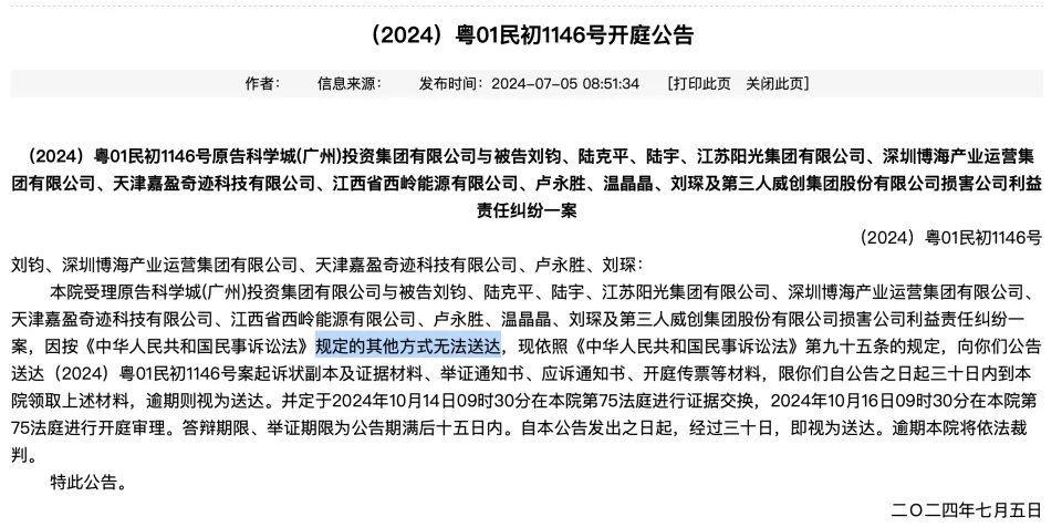 一起匪夷所思的“13亿消散变乱”,终于将威创股份“憋”至退市。厚交所近期下发的一纸退市事先告知书,宣告“公司股票将被停止上市生意业务且不进入退市整理期。” 谢幕前的挽歌,是密如撒豆的33个跌停板、不加喘息的复读机般风险提示、高管走马灯般轮番辞职以及股价8个月超90%的惨烈跌幅….这样的局面,纵观A股汗青都堪称“经典”。 钛媒体APP连续关注下发现,从公告“13亿消散变乱”当天就举行的经济犯罪报案,在历经8个月的“无果”之后克日或将出现破局。 一旦进入刑事立案后的侦办,某种程度上意味着破解空中楼阁走上正路,同时,与一样寻常情况下退市就意味着尘埃落定有所差异的是,威创股份即便退市仍难“盖牌”。 两把“key”都在他手里,“无法明白”很难想象,一个三季报还在红利、账上趴着十多亿现金的上市公司,会在仅仅8个月时间里就“耗尽全部”直奔退市。 引发这齐备的驱动力着实只有一个待解疑问,用威创股份三位独立董事提交的干系事项督促函中所称:“如果被江西省西岭能源有限公司现实控制人刘钧非法占用的(13.3亿)资金无法归还……” 变乱发生的重要时间线如下: 1、2020年江苏阳光团体通过下属子公司受让股权间接成为威创股份控股大股东,但公司股权仍显分散因而不绝声称处于“无实控人”状态; 2、三年之后,阳光团体实控人、股市玩家、处罚黑名单常客——陆克平的儿子陆宇,成为威创股份董事长。约莫三个月后的2023年9月20日,江苏阳光方面与刘钧实控的江西西岭能源签订框架协议转让股权; 3、框架协议签订仅一周之后,按过后公司公告表述“刘钧于2023年9月28日至10月27日期间,通过共管银行账户将公司13.3亿元资金划拨到其控制的银行账户,于10月31日全额归还公司,但自11月1日起又分次分批划出公司,至今资金尚未归还公司。” 对于发生这样的变乱,威创股份公司上上下下都体现“无法明白”。 “电子划账一样寻常也不须要印鉴等,重要是依靠共管账户的电子U盾管理,理论上应该是双方一人一把,但谁知道两把'key(U盾)'竟然全在他(刘钧)手里,他还根本算不上公司的人,这种事大家都以为无法明白。”威创股份干系人士追念称。 公开资料显示,刘钧一度被称为“80后资本玩家”,其在股市首露武艺是2015年底至2017年初操作上市公司东北电气的案例:刘钧先斥资8亿元推动旗下苏州青创商业团体成为东北电气的二股东,继而上位大股东,一年多之后以13亿元高价转让给北京海鸿源投资。其收益颇丰而归,东北电气却很快因策划恶化无奈退市。 以后,刘钧试图将善于的“先入主壳公司,再高位脱身”技法相继在策划困顿的ST步森(002569.SZ)、*ST吉艾上重演,结果都被“套住”。 2021至2022年期间,刘钧掌控的大量族系公司均陷入逆境,一个个连续遭遇法院强执,其本人在西安、上海的两套房产亦遭查封。 最窘迫时,一起万余元的劳动纠纷执行都无力负担,裁判文书中反复出现“经穷尽产业观察步调,未发现被执行人名下有可供执行的产业。” 一个处在这般境况下的“80后”,年约80的“股坛老兵”依然信赖其能拿出十几亿接盘威创公司股权,在仅仅框架签约后就让其独掌两把"key”,结果十几亿没进来反而被移出去了13亿,今后不见踪迹。 这个过程,即便普通知识下也会心识到经济犯罪的大概。然而,接下来发生的却继续“逾越知识”。 民、刑之辨,艰巨的刑事立案“自查公告发布的当天,公司就去(广州市公安局)黄埔分局经侦报案,一起去的尚有证监方面的人,但对方根本连质料都不收。”威创公司干系人士追念称,“对方的大抵来由就是‘不属于管辖范围啦’、‘质料不够’等等,总之就只好返来。” 经侦立案未果,证监部分行政立案却很快落地,只是面对云云匪夷所思的13亿消散“剧情”,证监方面的“信披违规”立案观察立即被烘托得惨白无力。 “十几亿呐,我们当然继续要努力推动报案,但厥后就只能寄盼望信披违规赶紧查完后,通过证监部分移交的方式看能不能立案。”前述人士追念称。 面对数月的沉闷期待与摧枯拉朽式的股价等各方面塌房,威创股份股东们成为最受伤的一群。他们中心,既有数万散户股民,也有曾经一掷千金接盘入局的地方国企,而起首不由得的是二股东。 2019年6月下旬,广州经济技能开辟区下属科学城(广州)投资团体有限公司正式从威创股份原大股东手中接过10%股份,为此耗资4.8亿元人民币,换来一个二股东地位。 彼时,科学城的入股具有范例“国企战投”色彩:不光投资,而且战略缔盟,双方签订了为期三年的战略协议,操持在辅导、都会更新、超高清视频等范畴协同相助。然而,仅5年之后,科学城的近5亿投入就濒临险境。 无法坐视昔日巨额投资“打水漂”的科学城遂将干系各方一股脑告状,欲以“代位求偿”。这告状讼共计十个被告、一个第三人,本年5月,广州市中院正式立案。 以后,法院对合计十一个被告加第三人连续两次实施“公告送达”。按照法律规定,这是在受送达人着落不明或者穷尽其他送达方式无法送达的情况下才气采取的末了本事,此举意味,案件干系各方大多已经着落未知。 本年7月,期待中的经侦立案出现变革。 “科学城是5月来法院告状,公安方面是在7月份,法院第一份公告发出之后,过来举行观察取证过。厥后我们扣问公安进展,得知大概是在8月22号左右吧应该已经立案,应该