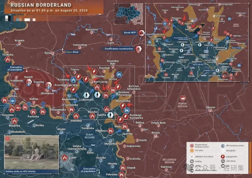 根据俄罗斯国防部的报道,“‘西部’团体军各单元的行动调和良好,卢甘斯克人民共和国的斯泰利马希夫卡村和哈尔科夫州的辛科夫卡村已被解放。 同时,乌军在库尔斯克方向精锐队伍伤亡巨大,战斗发生以来,乌军丧失了7800多人、75辆坦克,精锐险些伤亡殆尽。 俄国防部称:“乌军一天丧失了380多名武士、22辆装甲车,包括1辆坦克、21辆装甲战车,以及1门火炮、2门迫击炮、1座电子战站和8辆汽车。” 库皮扬斯克 地理定位录像表现,库皮扬斯克方向俄罗斯部队进入辛科夫卡,占领了该村的大部门地域。 昨天发布的一段视频表现,一名俄罗斯士兵将俄罗斯国旗挂在辛科夫卡中心的学校上,表明乌克兰部队已被赶出该村的大部门地域。 然而,一小时后,地面报告称,整理行动仍在举行中,乌克兰部队只是脱离了墟落严要部门的阵地,然后在火力掩护下退却。 到了30日下战书,俄军基本已经完全控制辛科夫卡村,并继续向南推进! 这次推进为未来向彼得罗巴甫利夫卡推进提供了时机,而彼得罗巴甫利夫卡则通向关键都会库皮扬斯克。 南顿涅茨克 8月30日,俄军在马林卡以南发动攻势,扩大了控制区。 俄军趁着乌军全线士气低迷的情况下,在格奥尔基耶夫卡-波贝达一线上摩托化步兵突击小组发动了一次攻击。俄军突击队成功突入乌军阵地,并将乌军击退,控制区扩大至 600 米。 乌军炮击波贝达以西俄军新占领的阵地。 与此同时,俄罗斯国防部证实,俄南方团体军在彻底整理后解放了南顿涅茨克方向的一个墟落,乌格勒达尔侧翼的康斯坦丁诺夫。 来自莫斯科地域的俄第 57 摩托化步兵团的鞑靼营和巴什基尔营在其他队伍的支援下解放了该定居点。 在乌格勒达尔,俄罗斯部队已经占领了沃迪亚诺耶北部的乌克兰战壕线,这使得俄罗斯部队突入该战略要地的郊区。 在巴甫洛夫卡地域,从沃尔奇亚梁(Volchiy Yar)地域的初始阵地开始的发起打击,俄军将控制区扩大到普雷奇斯托夫卡。俄军占领了T-05-09高速公路沿线的几处林带,让新马约尔斯基和巴甫洛夫卡之间的局面也变得更加清晰。 库尔斯克 库尔斯克前线在代价高昂、毫无希望的战斗还在持续。 8月30日,俄罗斯伞兵在库尔斯克州斯纳戈斯特村北部地域打扫了乌克兰部队的一个侦探小组,该小组共有 22 人,从属于乌克兰武装队伍第 22 独立机器化旅。 据悉,库尔斯克地域,俄军开始收紧困绕圈。 格卢什科夫斯基区的局面依然复杂。昨天出现的关于通过摧毁桥梁切断泰特基诺的信息尚未得到证实,而且显然是假的。乌军对俄军阵地和过境点睁开侦探性攻击。 科列涅夫附近的奥尔戈夫卡村(以及相近的马特维耶夫卡村)现在处于俄罗斯武装队伍的控制之下。 在科热涅夫斯基区行政中心附近,战斗仍在继续,乌军并继续实行以步兵和装甲队伍推进。 南部的科雷内沃-克拉斯努克蒂亚布斯科耶-斯纳戈斯特三角地域发生了战斗。 苏贾地域的战斗仍在继续。 在卡梅舍夫卡-基列耶夫卡地域,俄罗斯部队击退了乌戎衣甲队伍的打击。另一小股步兵小组在从内恰沃方向进步时被俄军炮火击散;乌军退守,在该村西南的丛林中创建了据点。该墟落此前已被俄军解放。 在南部,在博尔基、普列霍沃和切尔卡斯卡亚科诺佩尔卡定居点地域,俄军正在征采并打扫乌军排泄队伍,现在还没有关于解放住民区的报道。 随着俄军在顿巴斯的突破,乌克兰部队将具有战斗力的队伍开始撤出库尔斯克。他们被轮换,取而代之的是训练不敷、履历不敷、装备较差的国土防御队伍。 越来越多的乌军俘虏视频证实了这一判断! 这实上意味着乌克兰的库尔斯克攻势行动竣事了,作为决斗的第二战场,乌军很快就会由于军力不敷而瓦解。 现在还不清晰这些精锐的乌军将被转移到哪里。 |