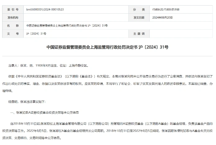 克日上海证监局披露的一则三万万元罚单,向公众演示了公募一颗冉冉升起的“新星”怎样被“老鼠仓”摧毁的全过程。 该罚单表现,上海某基金公司基金司理张某,在2018年10月31日至2022年8月5日担当A证券投资基金(下称“A基金”)基金司理期间,指挥其老婆刘某举行“老鼠仓”买卖业务。经查明,该账户与A基金趋同买入股票只数占比59.91%,趋同买入金额6.66亿元,红利金额1566.26万元。因张某使用未公开信息买卖业务行为连续时间长,违法所得金额大,违法情节较为严峻,上海证监局对张某责令改正,并罚没3132.52万元,接纳10年市场禁入步调。 根据罚单内给出的信息,张某疑似华安基金前基金司理张亮。为相识该事件真实性,8月28日,《中原时报》记者向华安基金方面打去电话就此事举行求证。对方在电话中称:“已转到达相应负责人,后续将有专人联系。”但截至发稿,本报记者尚未收到华安基金任何复兴。 操控账户并指挥老婆下单买卖业务 日前,中国证券监视管理委员会上海羁系局行政处罚决定书(沪〔2024〕31号)吸引众人眼光。 该罚单指出,家住上海静安区的上海某基金公司基金司理张某,在2018年10月31日至2022年8月5日期间,担当A基金基金司理。张某因职务便利知悉与A基金有关的投资决议、买卖业务标的、买卖业务时间等未公开信息。 为了本身得到更多红利,张某指挥其夫妇刘某详细操纵“闫某”广发证券账户举行相干下单买卖业务,该账户与A基金存在趋同买卖业务。信息表现,张某任职期间,“闫某”广发证券账户买入沪深两市股票共656只,与A基金趋同买入股票393只,趋同买入股票只数占比59.91%,趋同买入金额66566.53万元,趋同买入金额占比59.80%,账户趋同买入红利金额1566.26万元。 对于以上内容,张某给出报告辩论意见。他指出,认定张某控制“闫某”广发证券账户并指挥刘某举行下单买卖业务的证据不敷,未到达显着上风证实尺度。且“闫某”证券账户部门案涉股票在趋同买卖业务期间之外也有买卖业务,部门股票的趋同买卖业务有更好的买卖业务机遇等,说明相干股票系刘某基于自身买卖业务风俗及公开信息等自主决议买入,与张某无关。 对此,中国证券监视管理委员会上海羁系局以为,张某控制“闫某”广发证券账户并指挥刘某举行下单买卖业务这一究竟,有张某提供的买卖业务手机、银行卡以及相干证券账户买卖业务流水、银行账户流水、张某的扣问笔萍等证据证实,足以认定。且张某主张部门股票的趋同买卖业务系刘某控制“闫某”证券账户自主决议操纵,该辩论来由没有充实的究竟与法律依据,且不能合理表明客观存在的股票趋同买卖业务环境。 最终,中国证券监视管理委员会上海羁系局对张某提出的报告辩论意见不予接纳。因张某作为基金司理,使用未公开信息买卖业务行为连续时间长,违法所得金额大,违法情节较为严峻,中国证券监视管理委员会上海羁系局对张某责令改正,充公违法所得1566.26万元,并处以1566.26万元罚款。同时,对张某接纳10年市场禁入步调。 究竟上,该罚单内所提供张某的信息十分清楚。此中指出,张某,男,198X年X月出生,住在上海市静安区。他自2018年10月31日起担当上海某基金公司所管理的A证券投资基金基金司理。2022年8月5日,张某卸任A基金的基金司理并从公司去职。 而以上信息,正好同华安基金原基金司理张表态符合。A基金也疑似华安国企改革主题机动设置混淆A。公开资料表现,张亮于2015年6月加入华安基金,历任投资研究部研究员,基金投资部基金司理助理。他在2018年10月至2022年8月5日任华安国企改革主题机动设置混淆基金基金司理,期间任职回报为231.82%。还先后在2022年2月和2022年3月担当华安代价驱动一年持有混淆和华安品格领先混淆基金司理。但在2022年8月6日,华安基金突然发布公告称,基金司理张亮因个人缘故原由卸任,且不再转任该公司其他工作岗位。 其时张亮在华安基金工作期间,代表作业绩这么好为什么去职?去职后他竟仿佛人间蒸发,在行业“查无此人”。罚单中的张某又究竟是不是华安基金前基金司理张亮? 带着以上疑问,8月28日,《中原时报》记者向华安基金方面打去电话咨询。对方在电话中称:“已转到达相应负责人,后续将有专人联系。”但截至发稿,尚未收到华安基金任何复兴。 公开资料表现,华安基金创建于1998年,总部位于上海,是中国证监会允许创建的首批5家基金管理公司之一。截至本年6月尾,华安基金总资产为76.83亿元,净资产为57.94亿元。 国泰君安近期披露的2024年半年报表现,华安基金上半年实现业务收入14.54亿元,净利润5.19亿元,与客岁同期相比,营收镌汰20.88%,净利润微增1.88%。年报指出,截至本年6月尾,华安基金管理资产规模7394.84亿元,较上年末增长9.5%。此中,公募基金管理规模6651.01亿元,较上年末增长10.1%;非货公募基金管理规模3670.44亿元,较上年末增长4.3%;专户资产管理规模743.84亿元,较上年末增长4.4%。 害人的“老鼠仓” 张某的行为,就是典型的“老鼠仓”。 排排网财富理财师负责人孙恩祥对《中原时报》记者先容,“老鼠仓”是一种基金从业职员使用未公开信息或职权,在买卖业务中隐瞒大概影响证券价格的庞大信息,从而获取非法利润的行为。详细来说,“老鼠仓”通常涉及基金司理或买卖业务员在使用公有资金拉升某只股票之前,先用个人资金在低位买入该股票,待用公有