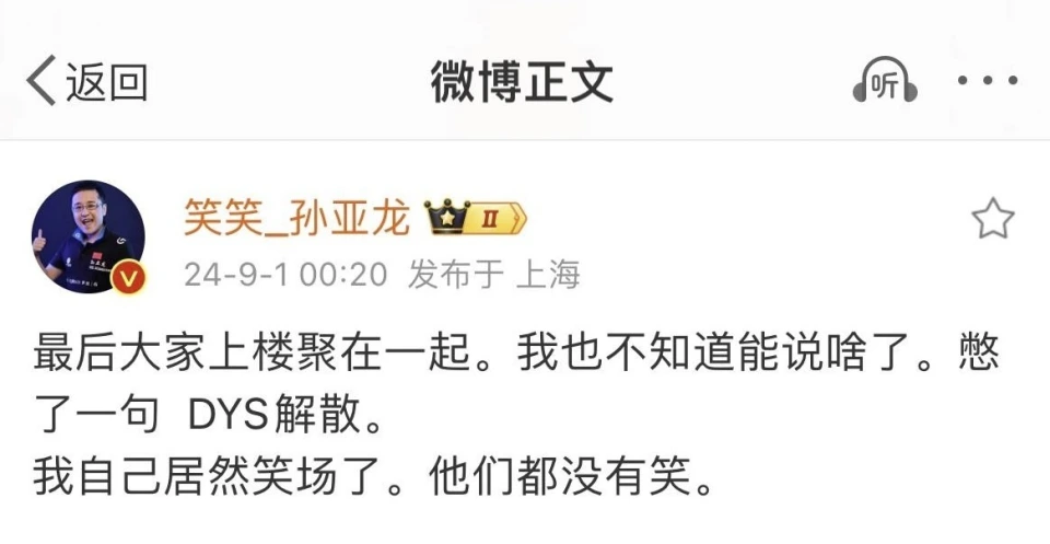 LPL夏季赛季后赛的角逐正在举行中,而每年LPL的角逐,在二路中做得效果最好的主播肯定有德云色,固然他们这么多年的直播生活布满了争议,但是仍旧吸引了大量的粉丝关注,人气不绝都很高。而就在1号凌晨,德云色正式宣布驱逐,孙亚龙笑笑发微博宣布告别直播圈,引发了大量的热议。 笑笑最开始发的微博如下,表现和德云色的其他主播们聚在一起后,本身来了一句DYS驱逐,然后本身笑场了,但是其他人都没笑。 不外不知道是什么缘故原由,这条微博被笑笑删除了,之后他重新发布了一条,改为了“直播间末了一句再见耽误没出来,再见啦各位”,而且配上了各人一起做末了一次直播的九宫格合照。而在品评区笑笑复兴了很多粉丝,感谢他们的陪伴。 而西亚这边就更加直接了,直接晒出了Q版的德云色合影,配上了简单的“end”单词,意思也更加明白了,就是笑笑说的,德云色到此竣事了。 实在前几天笑笑就发文表现31号直播合同就竣事了,但是反面会讲授S赛,本身的身材题目太多,须要时间调解,DYS会有重归的一天。 固然驱逐,但是德云色也有反面的安排,这么多直播员分成2部门,一部门跟kid去成都做直播,主要是做LOL相干的,kid本身也发文表现计划明年做大孩庄园,计划给LPL造就青训选手,另一部门则是去黑莓的故乡养牛做户外。只是笑笑和西卡两人不做了。 而根据德云色粉丝们的透露,笑笑之前由于中风,身材须要长时间的休养和调解,无法再顺应高强度的直播,再加上他原来也计划本年做完就不做了,想要去其他范畴试一试,以是这次是下定刻意告别直播圈了。 而西卡这边前段时间查出眼睛有题目,也要先去治疗眼睛,但是治疗之后,是否回归直播间还不确定,原来说的是西卡带着其他人再播一年,但是现在西卡也出现康健题目,估计要先看治疗的情况,感觉西卡照旧有可能再次回归的。 而德云色也会播完反面几天LPL的冒泡赛二路讲授,以及本年S赛的讲授也会正常直播,以是盼望看他们二路讲授的观众们不须要担心了。随着LOL热度的下滑,很多主播也确实渐渐消散了,现在连德云色也宣布驱逐,只能说祝福各人未来统统都安好吧! 那么,对于这件变乱,你们有什么想说的吗?欢迎在品评区留言探究。 |