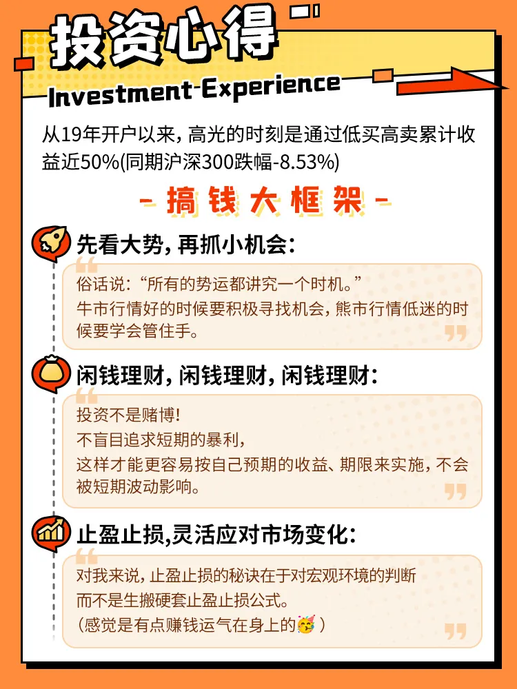今天,我们采访到了一位在每天基金投资3年赚了近50%、善于趋势投资的大咖@AmazingGor ,一起看看他是怎么利用的。 总结来看,他的以下心得值得我们参考: 1、要做大择时,不做小择时。 坚信把握大趋势才是王道,如许的择时才值得脱手。 2、运气和气力并存,关键在于确认买入机遇。 对于大情况的判断,确实有一点运气的身分在内里。但更重要的是确认买入机遇后,再去探求市场里的机遇,如许才是更智慧的择时计谋。 3、行业投资,底层逻辑是关键。 在行业投资上,每一个决定背后都要有清晰的底层逻辑支持。如许,我们的投资才能更加妥当,更加有底气。 能在对的时间做对的事变,你就可能轻松打败90%的人。 |