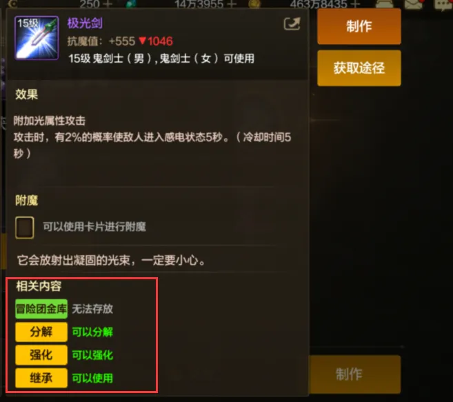 DNF手游这游戏的装备道具种类照旧非常多的,而这么多的装备当中也总是会有一些非常特殊的存在。固然这些装备的伤害属性远远比不上那些顶级装备,但这些装备却是有着这些顶级装备也都没有的属性,而这些属性也是独一无二的。而在地下城手游中就存在着一把最无解的武器,没人可以毁掉它,却能完成这个隐藏成绩。 对于这把武器我想很少有玩家会注意到吧,毕竟这把武器的等级只有10级,而且照旧一把紫装。没错,这把武器就是转职送的意会武器,每一名玩家都拥有的。而这个意会武器的属性固然一般,但细致看这武器的属性。这把武器竟然是无法出售的,要知道这游戏中无法出售的装备道具但是非常少的,大多数的装备道具都是可以出售给市肆换金币的,而这把武器却是个特例。 那么既然这武器不能出售给市肆,那么直接分解掉换白色魂魄总行了吧。但惋惜的是这武器也是不能进行分解的,就连冒险团金库都是无法存放的。而这把武器只能强化和继承,而武器强化固然会失败,但失败却并不会碎掉,所以这武器也是根本没办法毁掉啊,简直是无解般的存在。很多玩家可能也是注意到了这把无解的武器,只能任由这把武器占了一个背包大概堆栈格子了。 不外固然以常规的方法不能毁掉这把武器,但各人却是可以利用迂回战术。要知道这把武器但是能看成制作质料的,而用这把武器可以直接制作出极光剑,不必要其他的质料,而且制作费用照旧免费的。 而通过斲丧意会武器制作得到的武器但是能分解和丢市肆的了啊,各人只要把这件武器丢市肆大概分解掉,这也算是彻底摆脱了意会武器了。这也算是一种间接的办理方法了吧,而直接办理掉这意会武器的方法如今还没有。 而当各人通过意会武器制作出了这把15级的武器之后,可以直接解锁两个成绩,一个是亲手制作,别的一个则是制作初体验。而这个制作初体验的成绩很多玩家大概也照旧第一次见到吧,这个成绩堪称是隐藏成绩了。要想完成这个成绩得制作出一件15级稀有装备了,而要想制作出15级紫色武器那么就必要者意会武器了。 而制作出的15级武器可以继续进行升级制作,而制作出20级,25级紫装武器也都能解锁新的成绩。 这一波利用下来,各人可以直接解锁4个成绩了,而且还能办理掉这把无解的武器了,解放了一个背包格子啊。对于新脚色来说,这个脚色成绩的等级照旧很紧张的。各人要尽快的解锁更多的成绩,得到更多的成绩经验,如许就能得到额外的属性加成了,所以各人不要放过任何一个可以完成的成绩。 |