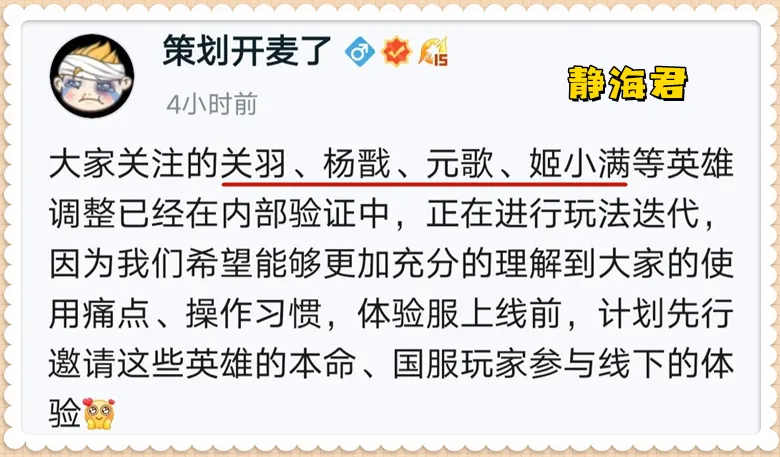 文/静海君 通过「策划开麦了栏目」,策划向玩家透露了许多接下来的调整方向,这此中就包罗肉装刺客调整,雅典娜复活机制以及关羽、杨戬、元歌等英雄的重做。 策划开麦了实话实讲,策划开麦了这个栏目确实给关心王者光彩的小伙伴提供了一个非常方便的渠道。 ⑴肉装刺客gg