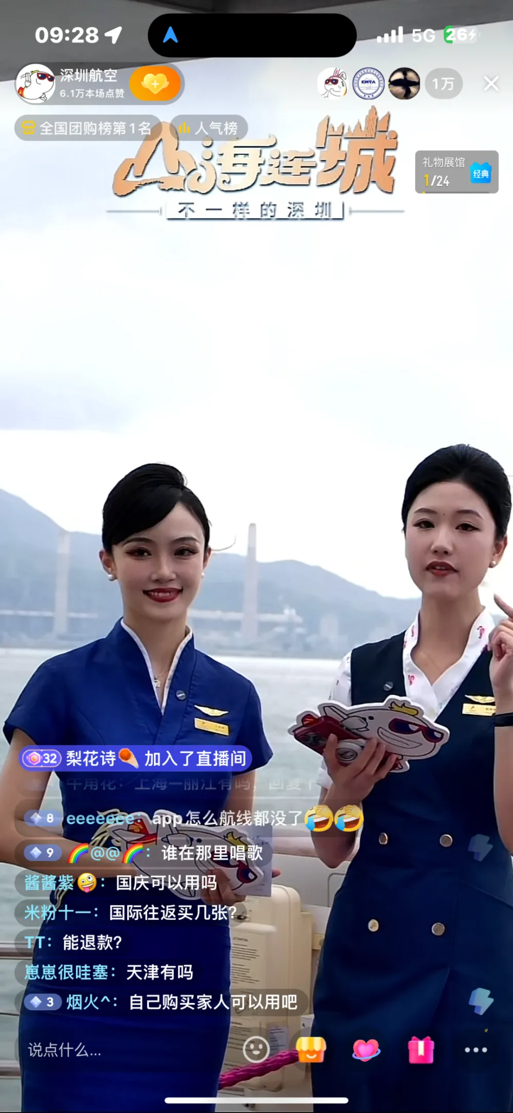 别的,整场直播画面也不一样平常。用户进入直播间,入眼的是广阔的海景和港珠澳大桥,海风和波浪的声音成了“配景音乐”。旁边的空姐空少担任起主播,一边介绍风景一边安利机票。