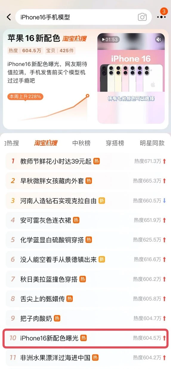 9月10日,备受关注的2024苹果秋季新品发布会即将开始,iPhone 16相干曝料也频上热搜,“摄像头变竖排”、“新增照相按钮”、“古铜色新配色”等功能、价格、颜色的各种“剧透”层出不穷。 对于浩繁果粉来说,第一时间拿到新iPhone是头等大事。天猫旗舰店作为苹果唯一电商平台官方旗舰店,和苹果官网同步,领先其他平台7天开启预售,而且货量管够,已成为果粉购买新iPhone的重要渠道。 记者发现,发布会前一周,iPhone16相干搜索在淘宝天猫热度飙升228%,冲进淘宝热搜前十。不少果粉已经急不可耐,涌入天猫Apple Store官方旗舰店,试图从天猫苹果官方客服那里打探一些“小道消息”。据网友截图体现,咨询苹果客服的队伍一度排到了99位以上,这可忙坏了客服。 不少人在扣问iPhone新品上市时间、设置、价格等题目,让客服忙得焦头烂额。不外,苹果客服不停守口如瓶,仅透露“10号会有特别活动”。 克制现在,天猫AppleStore官方旗舰店,粉丝量已达2593万,成为斲丧者与苹果互动、相识苹果新品信息的核心窗口之一。 |